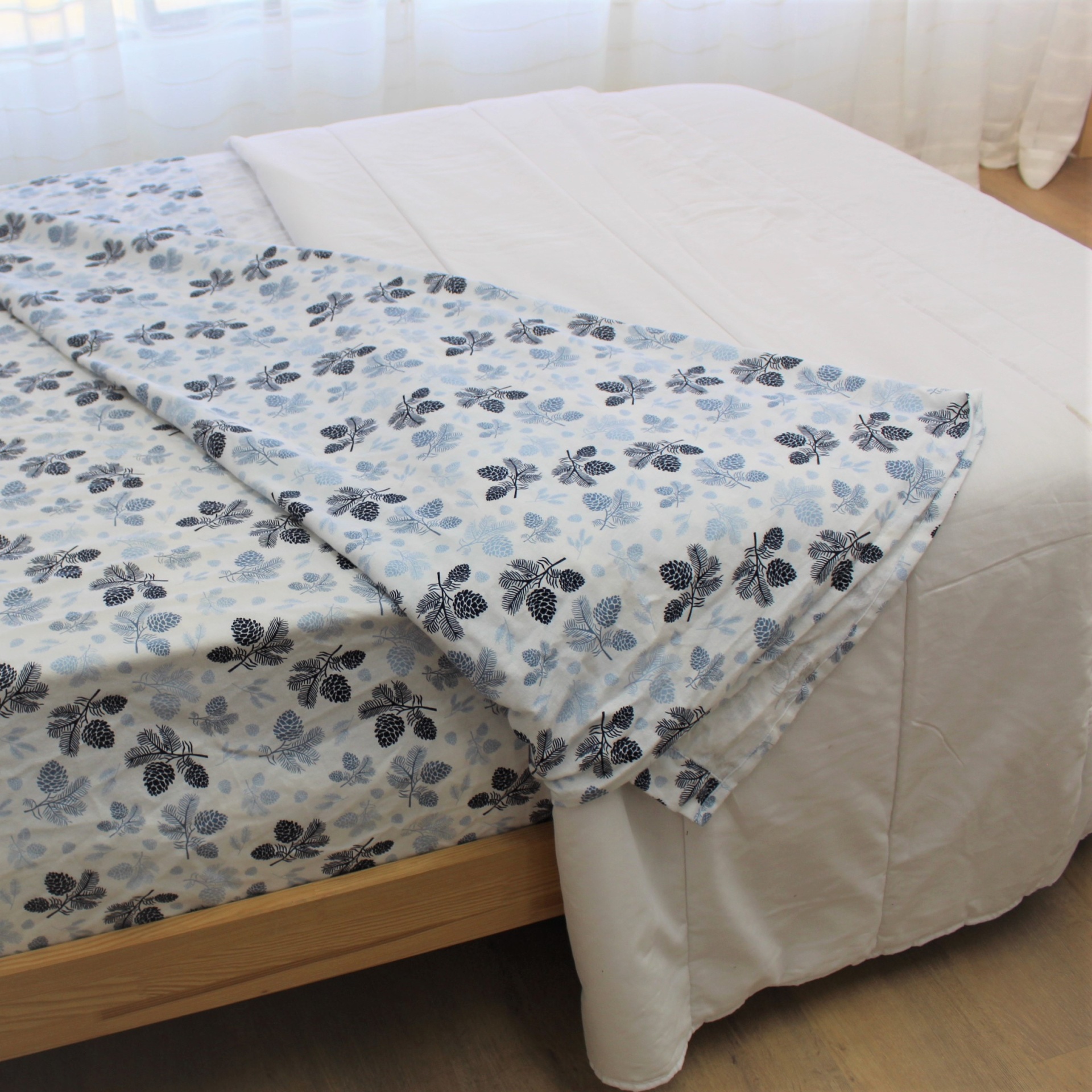Jogo de Cama Flanela, nos tons de azul e branco.