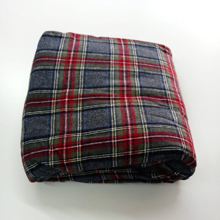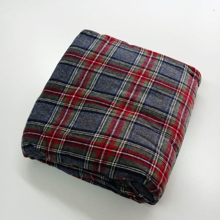 Lençol de baixo ajustável em flanela, com padrão xadrez azul, vermelho, verde e cinza.