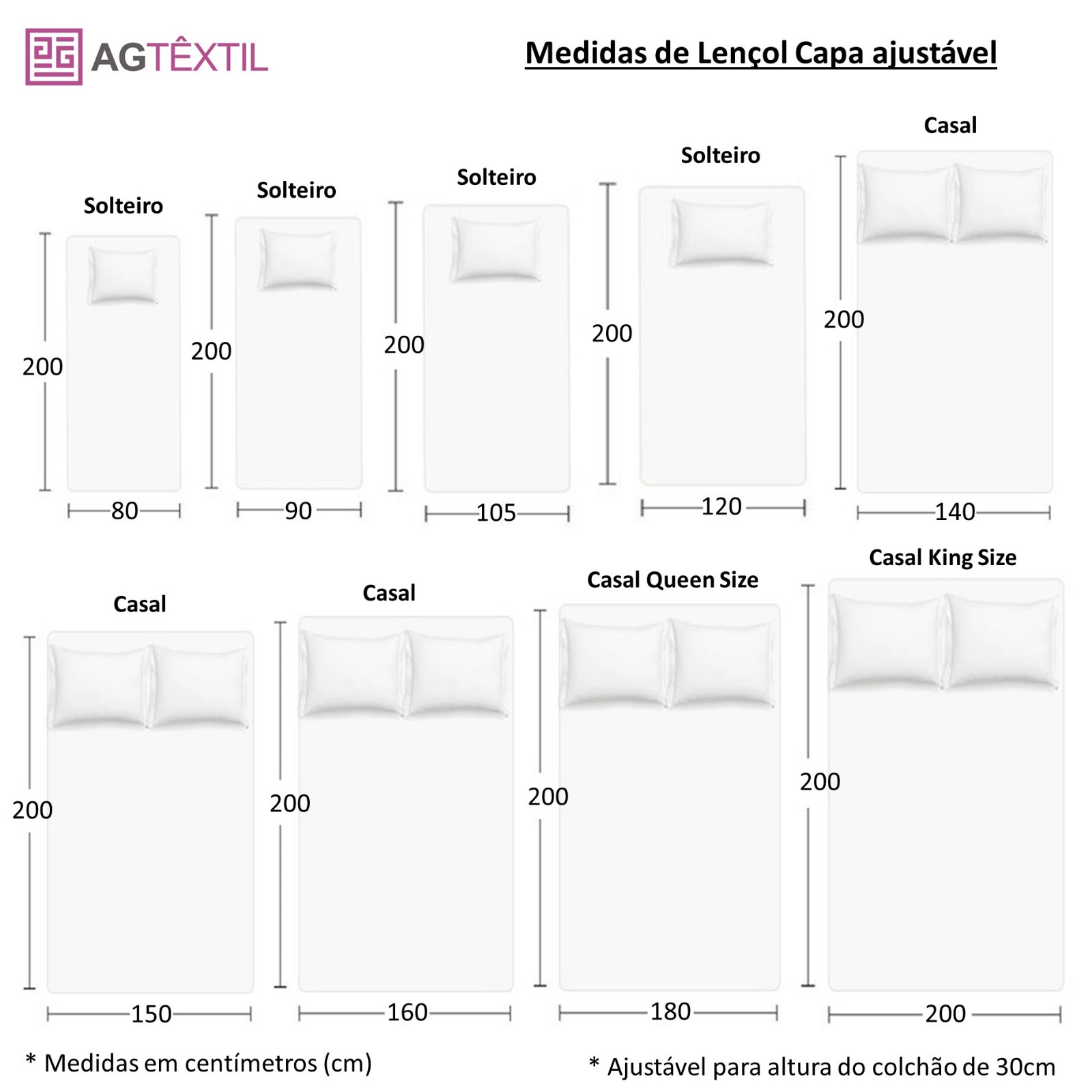 Ajustável para colchão com até 30 cm de altura, com elástico nos quatro cantos para melhor adaptação e suporte.