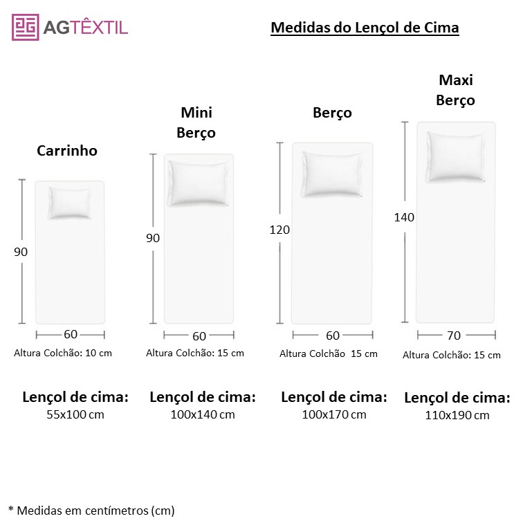Berço (60x120cm) - lençol de cima (100x170cm)