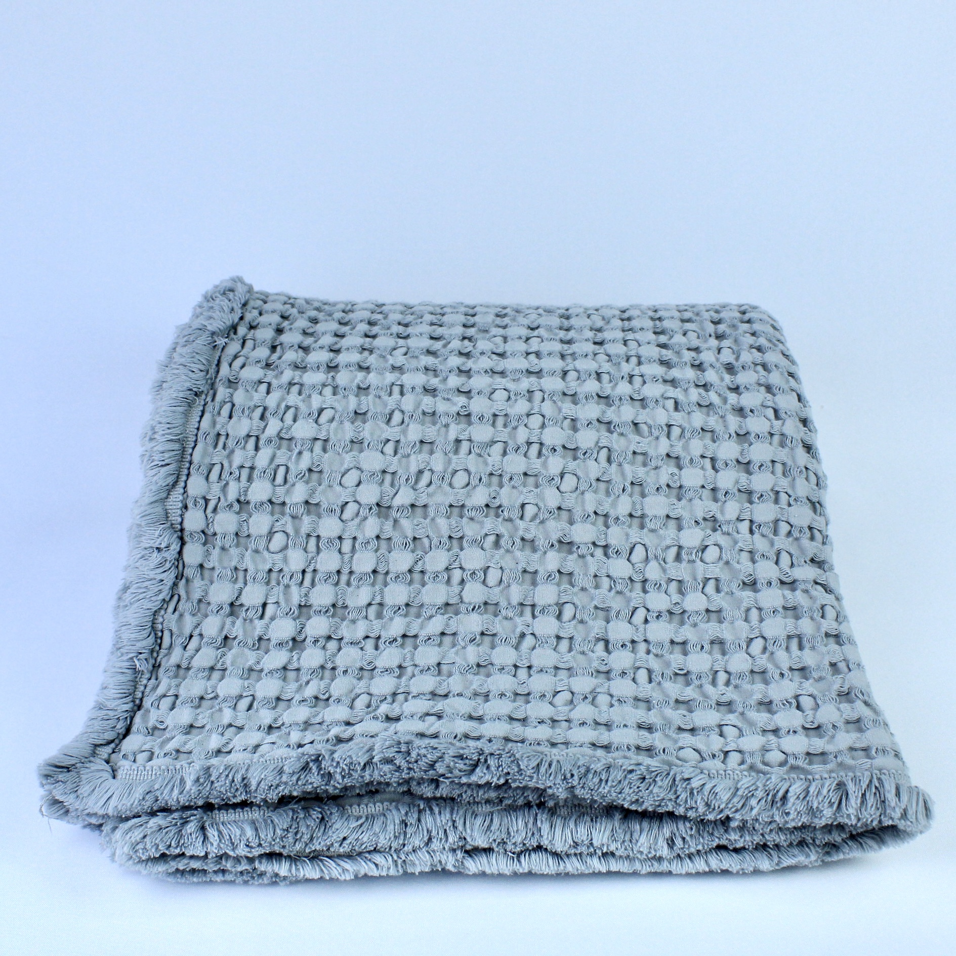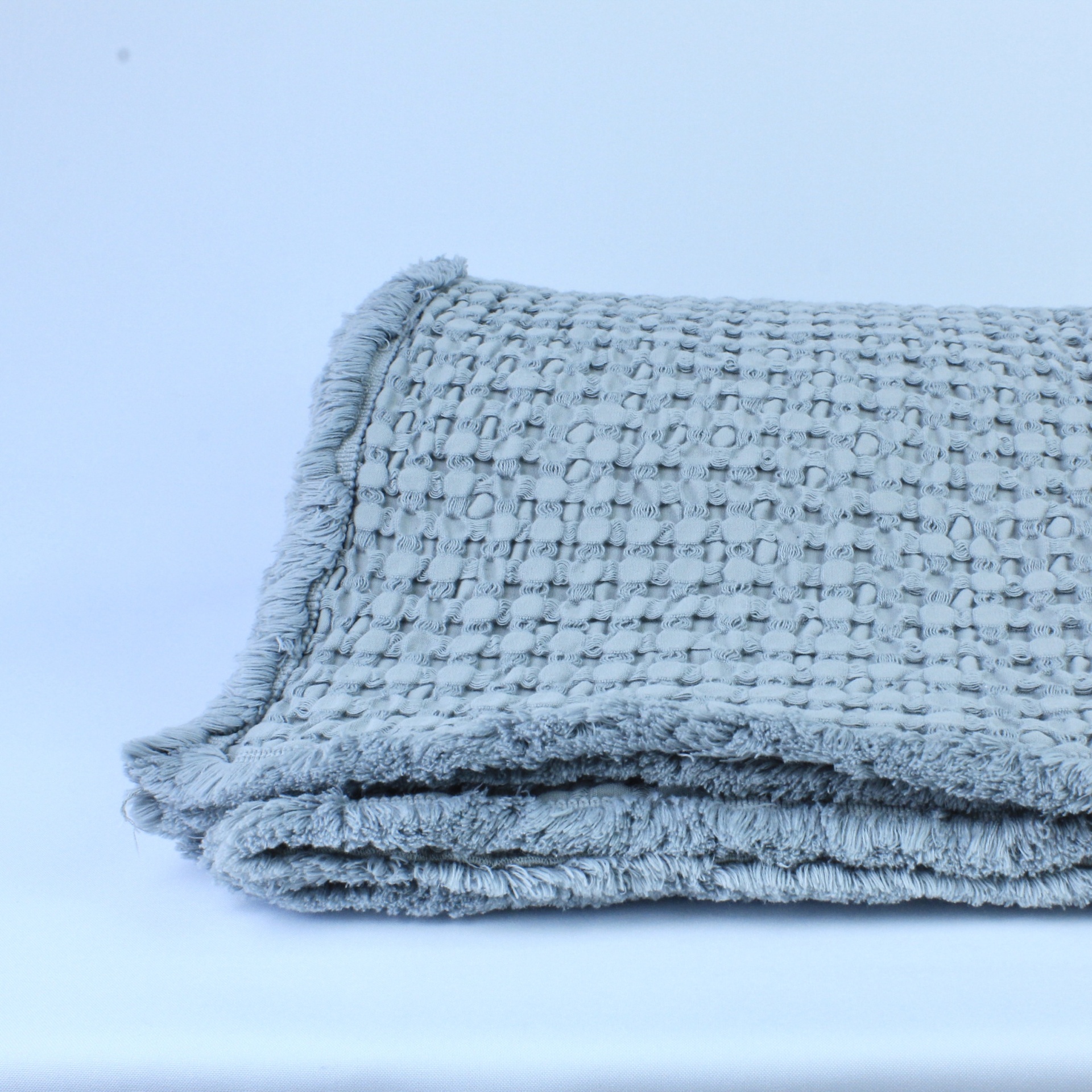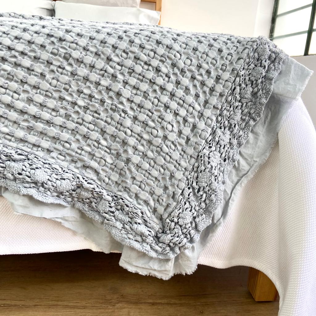 Manta Geométrica, com padrão, é suave e versátil. Pode usá-la no quarto, na sala ou, até mesmo, na piscina.  Acabamento com Renda.