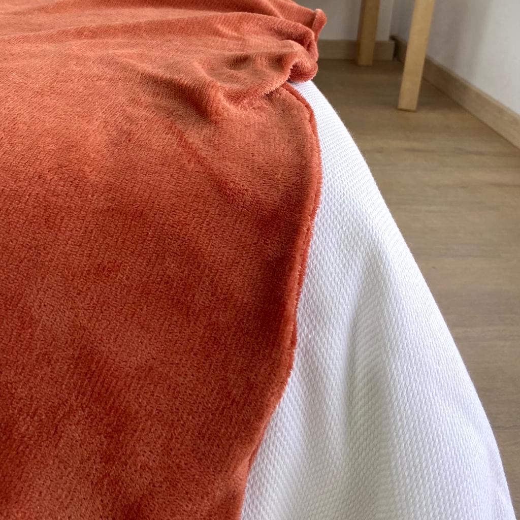 Manta aveludada, muito quentinha. Super macia, disponivel nas cores de cereja, verde escuro e ferrugem.