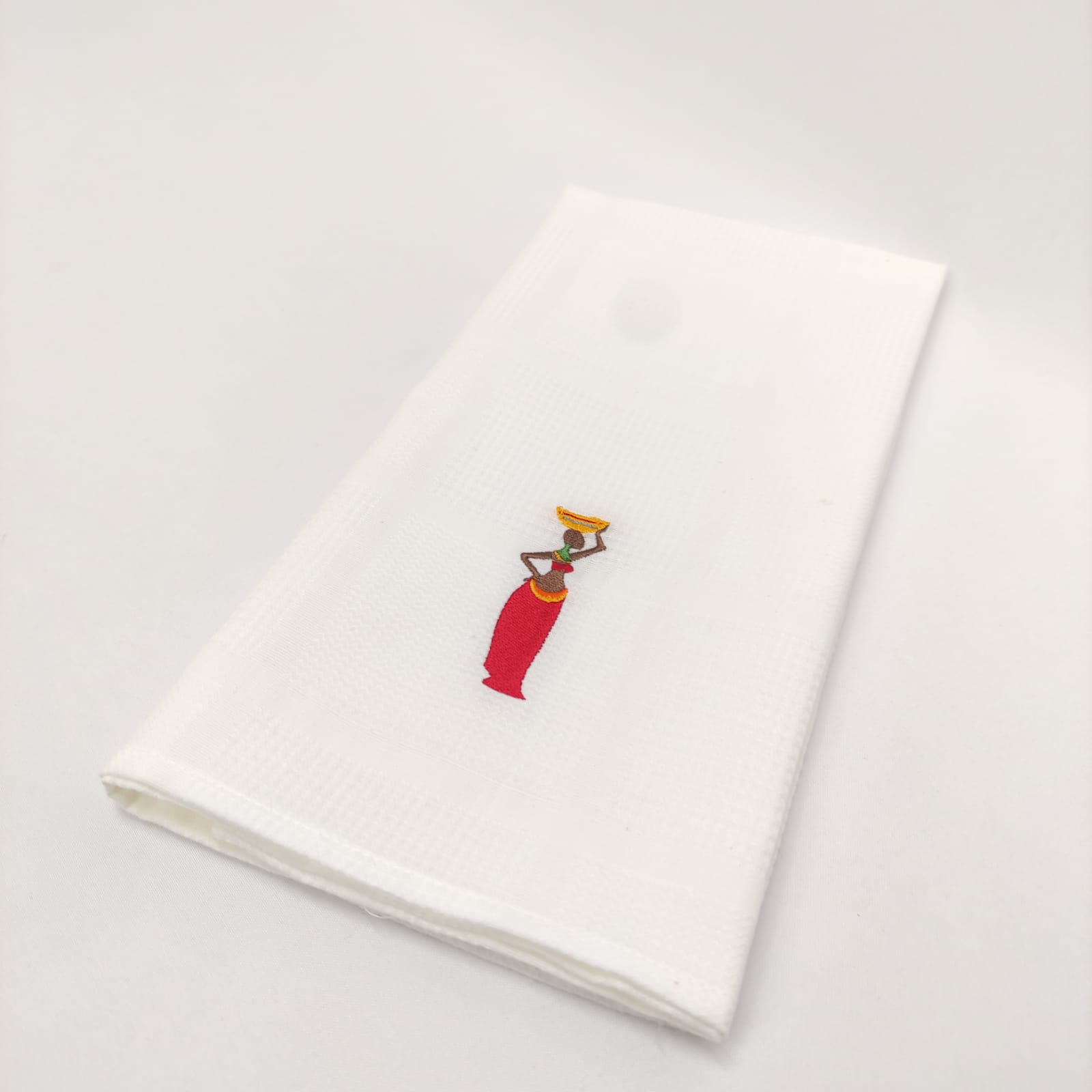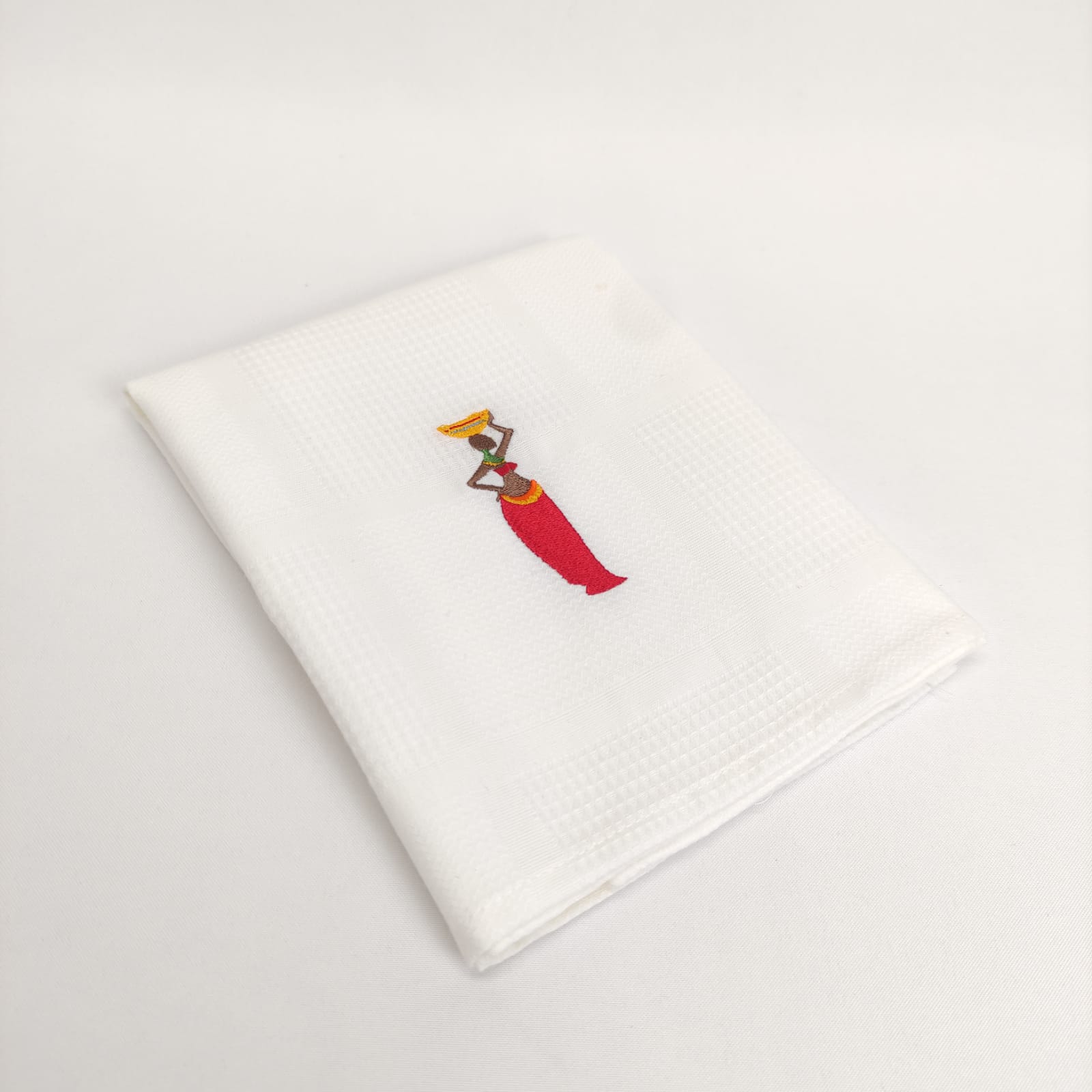 Pano de cozinha favo de algodão com bordado.