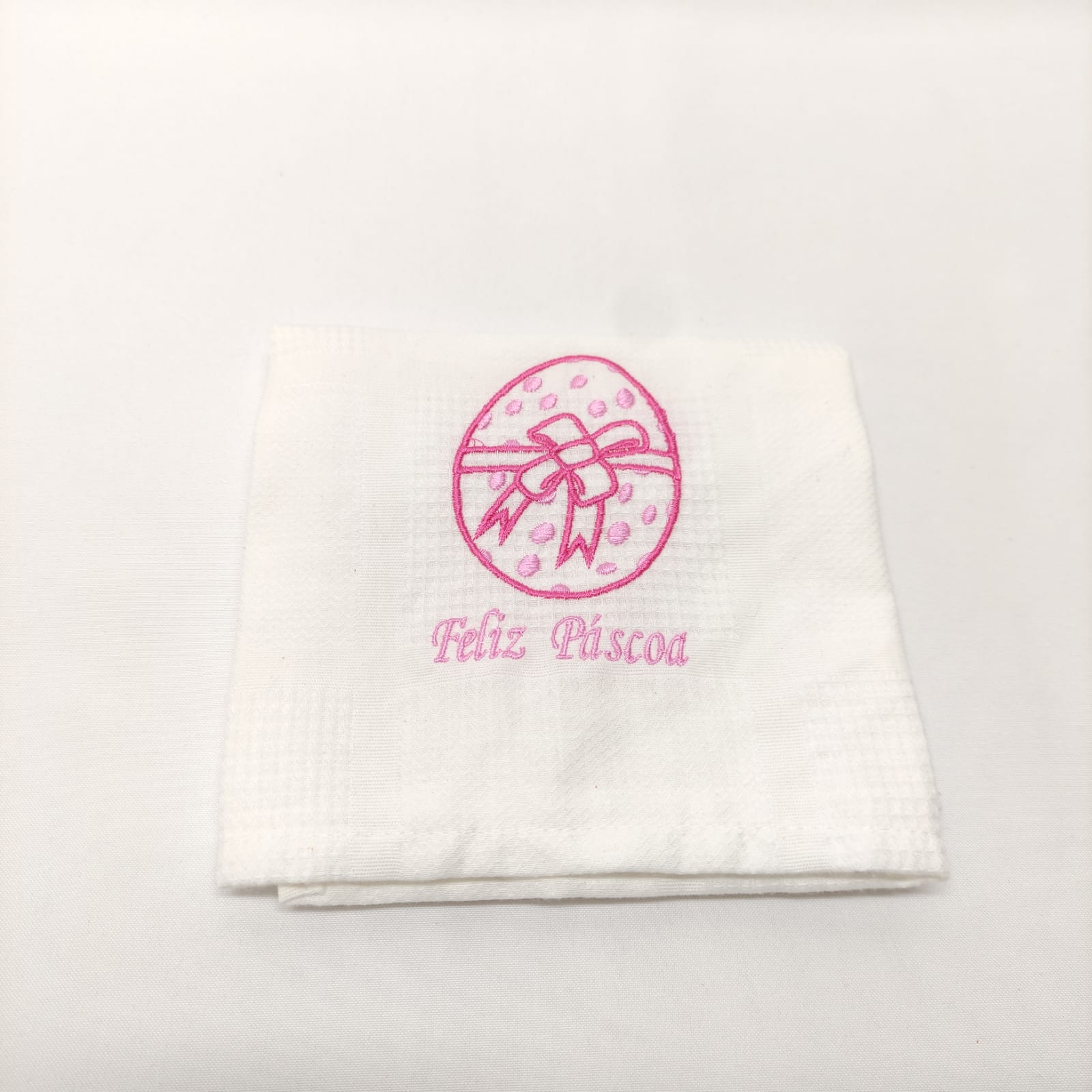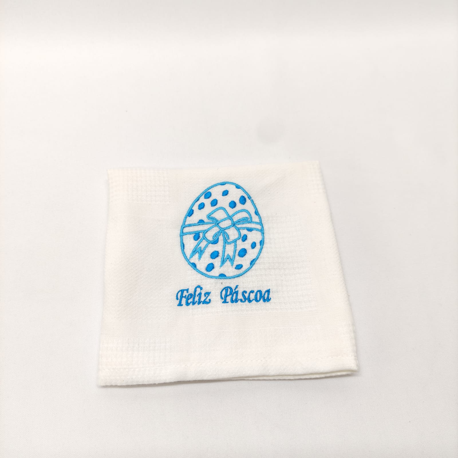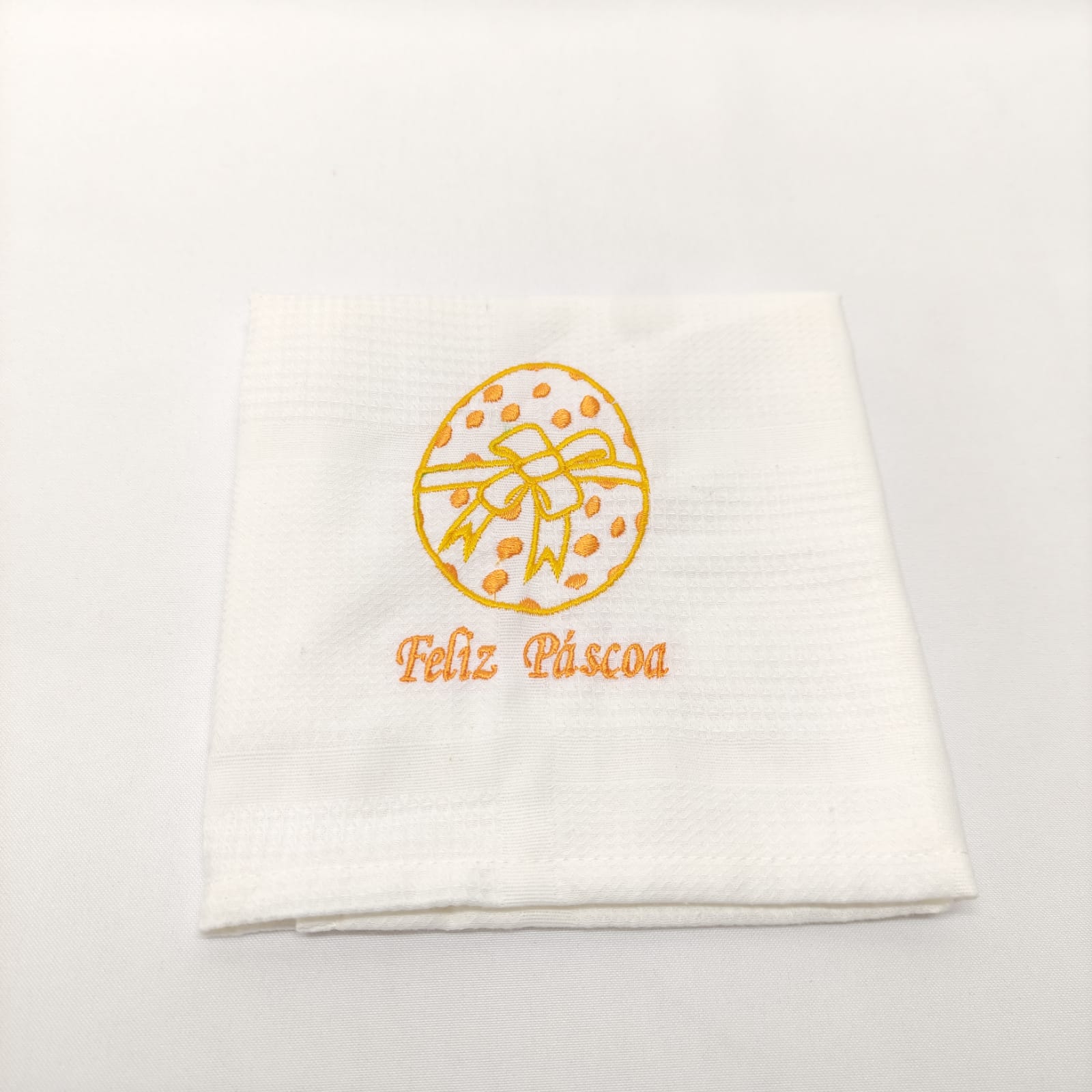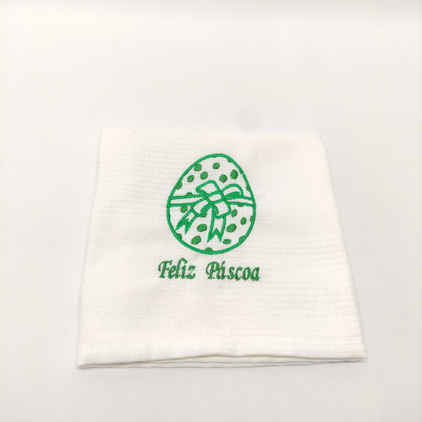 Pano de cozinha favo de algodão com bordado de Ovo da Páscoa.