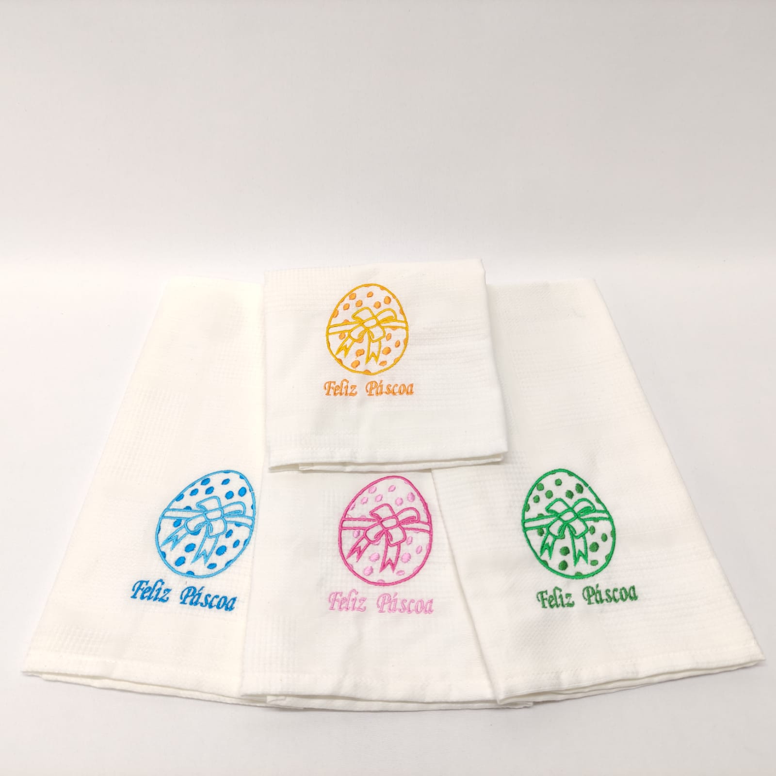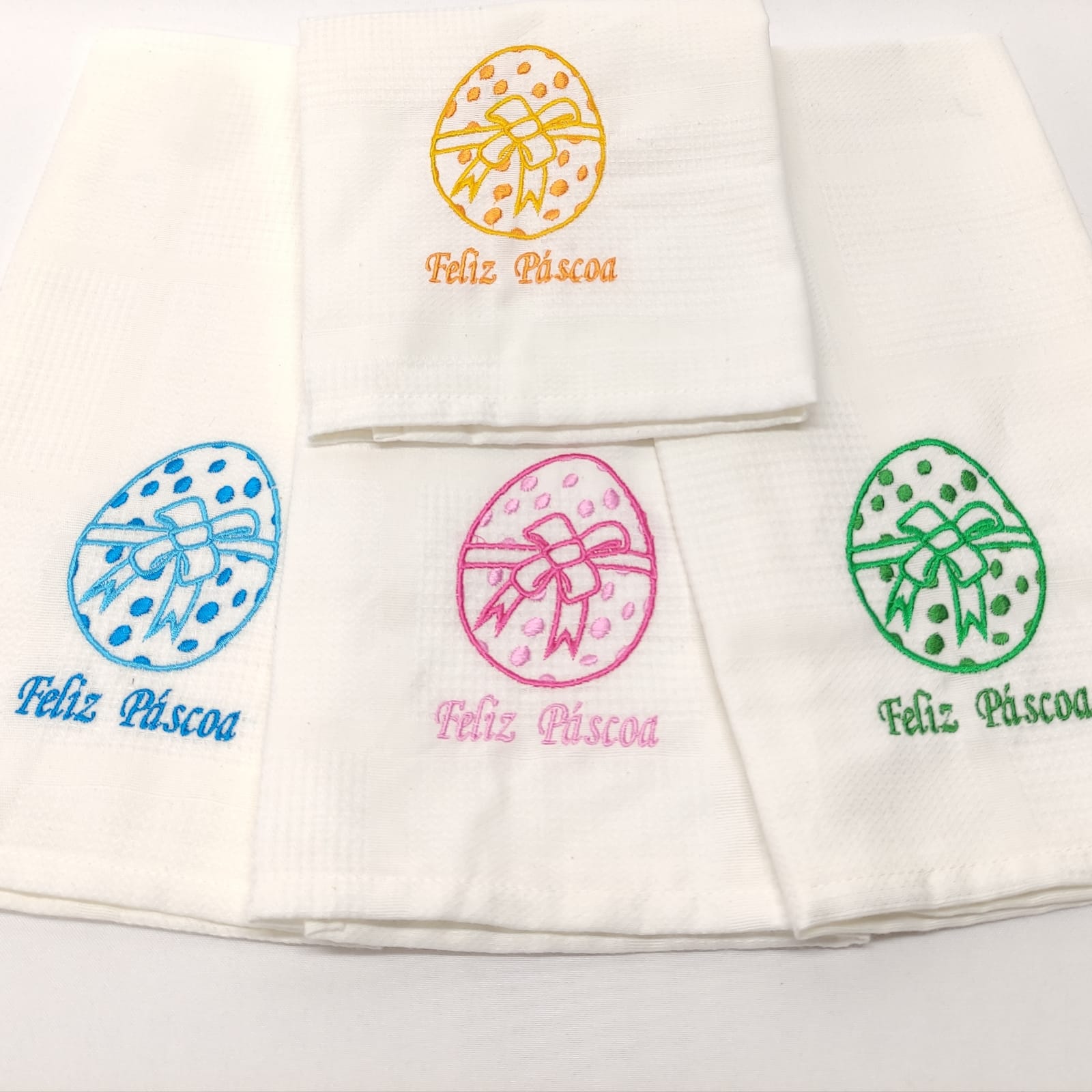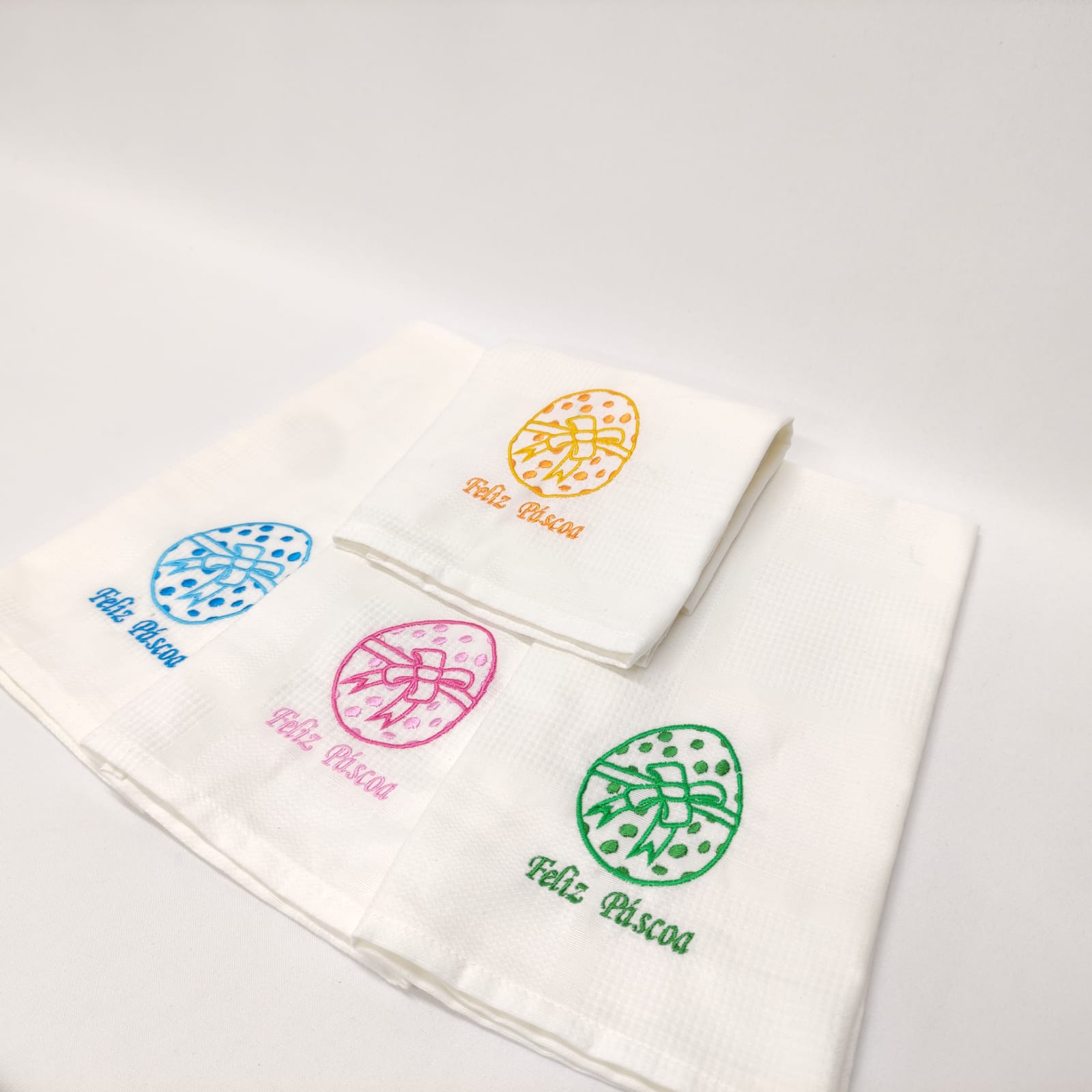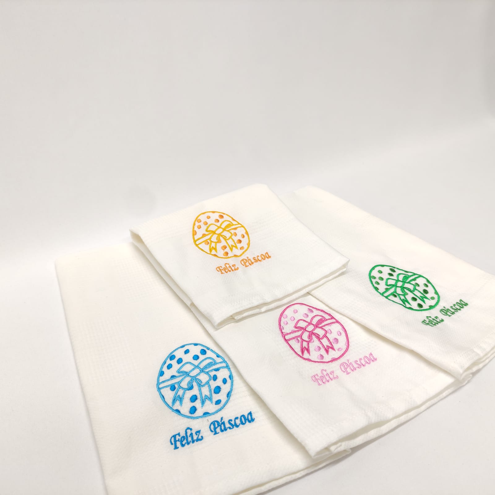 Pano de cozinha favo de algodão com bordado de Ovo da Páscoa.