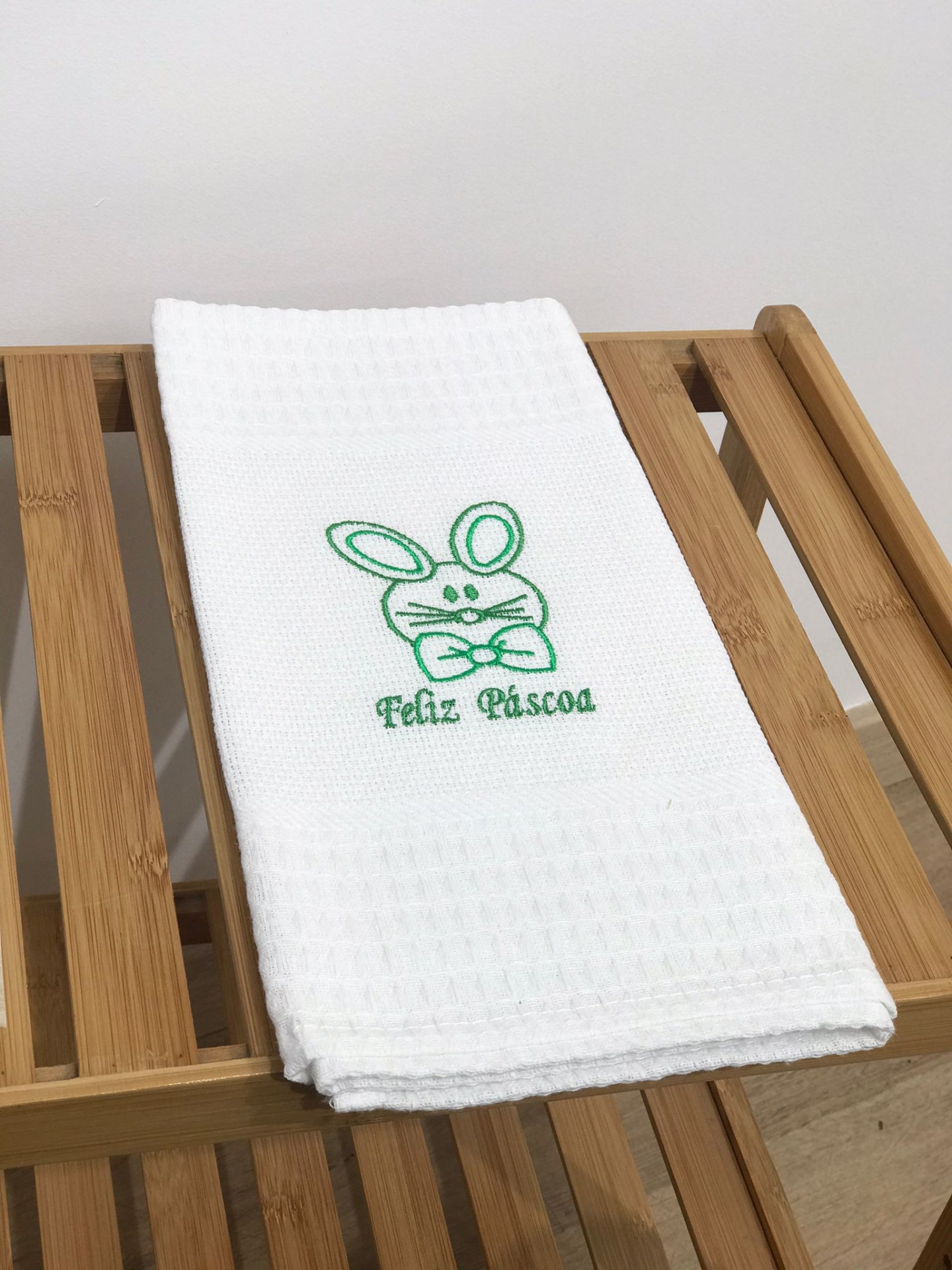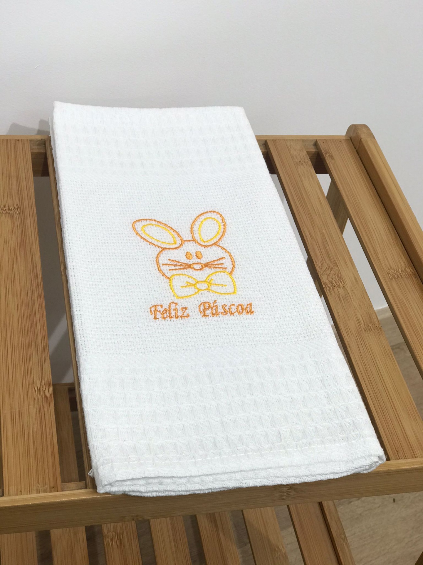 Pano de Cozinha Algodão Coelho Feliz Páscoa