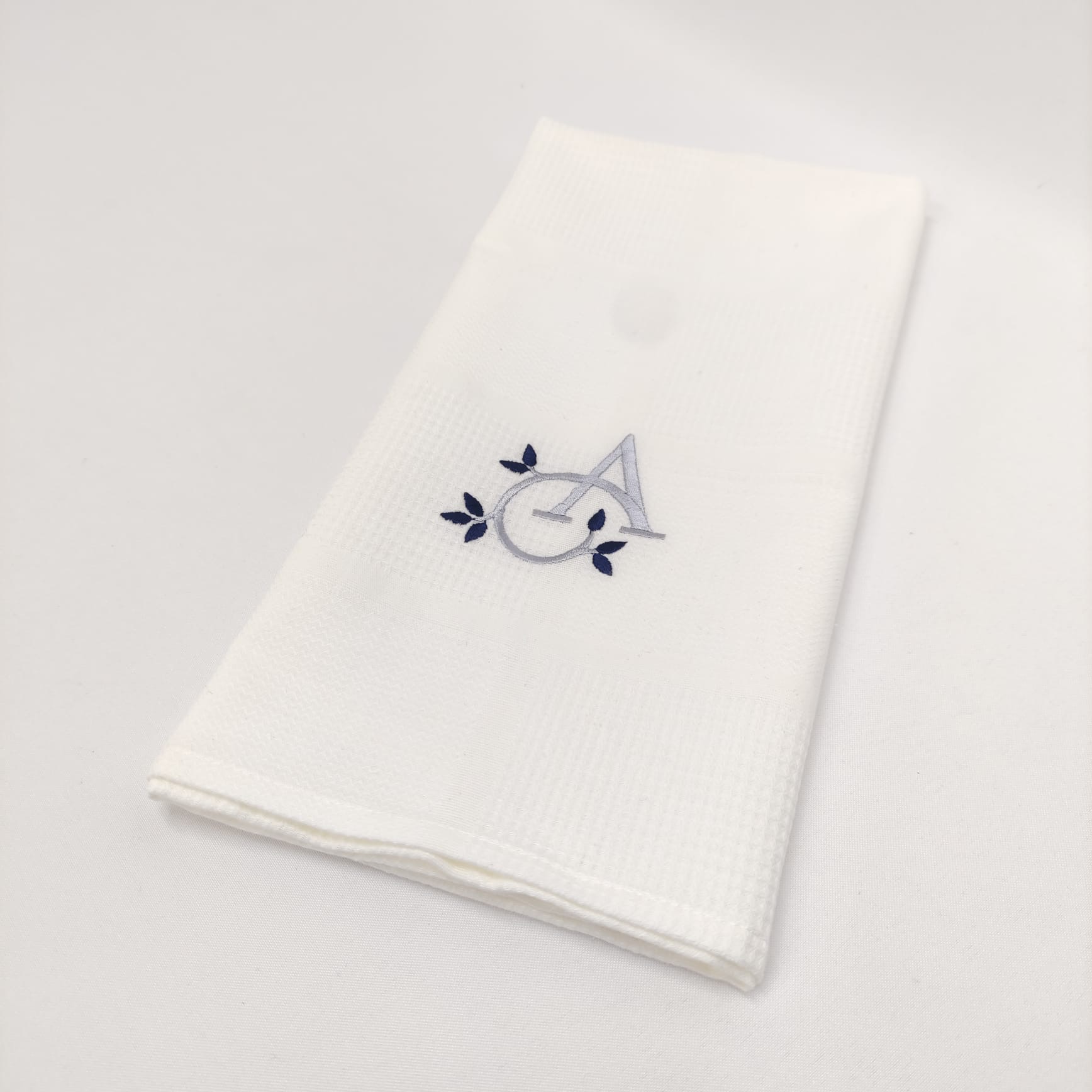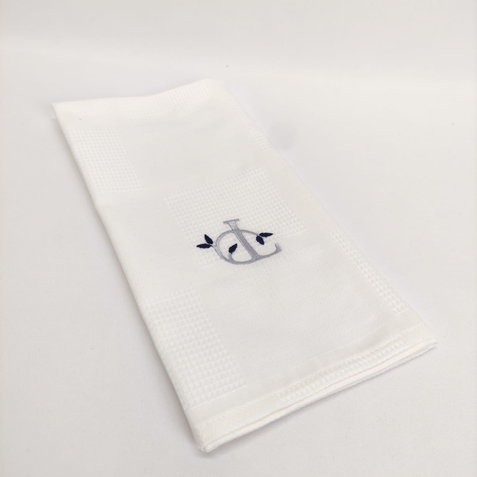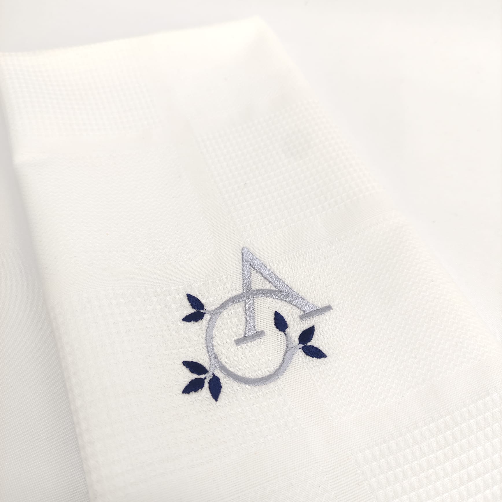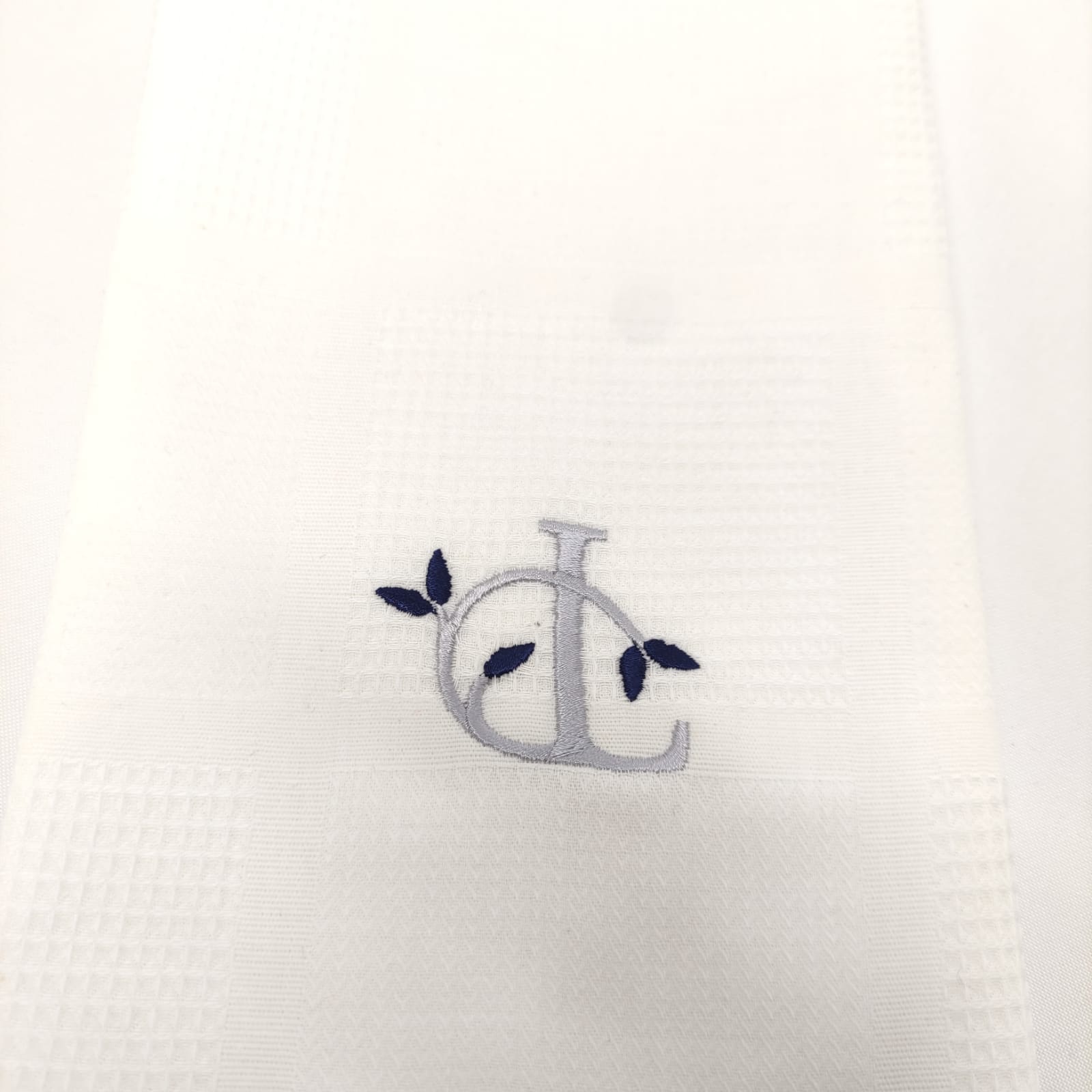 Pano de cozinha favo de algodão com bordado.