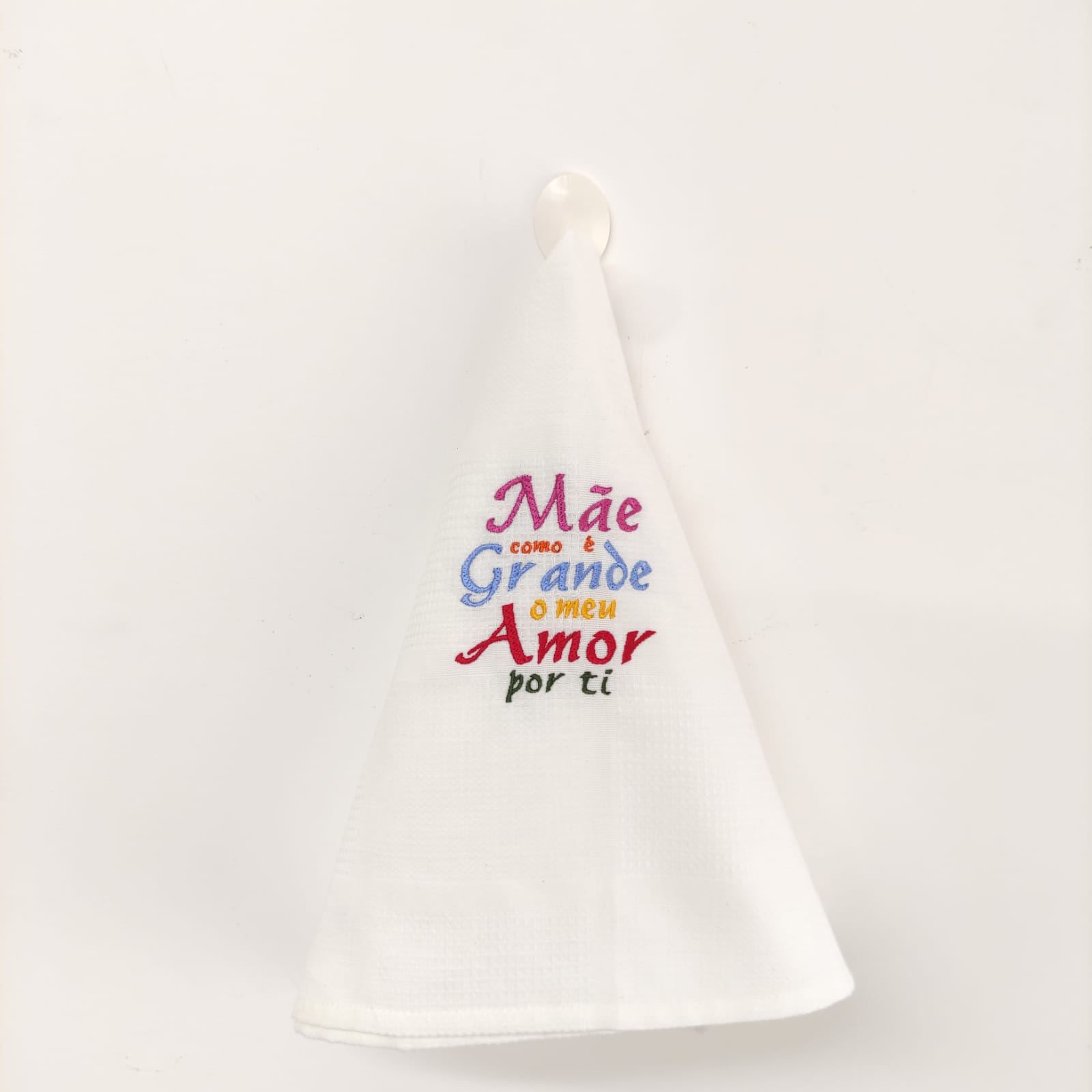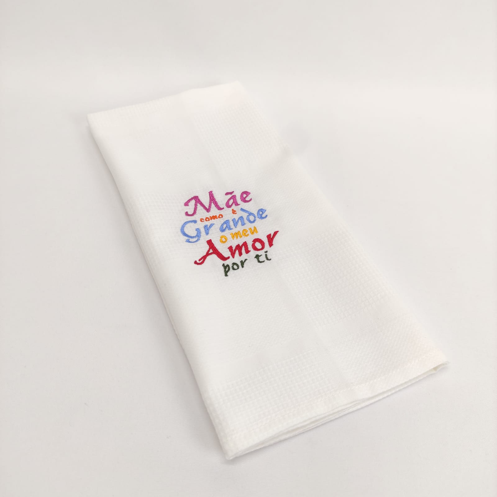 Pano de cozinha favo de algodão com bordado.