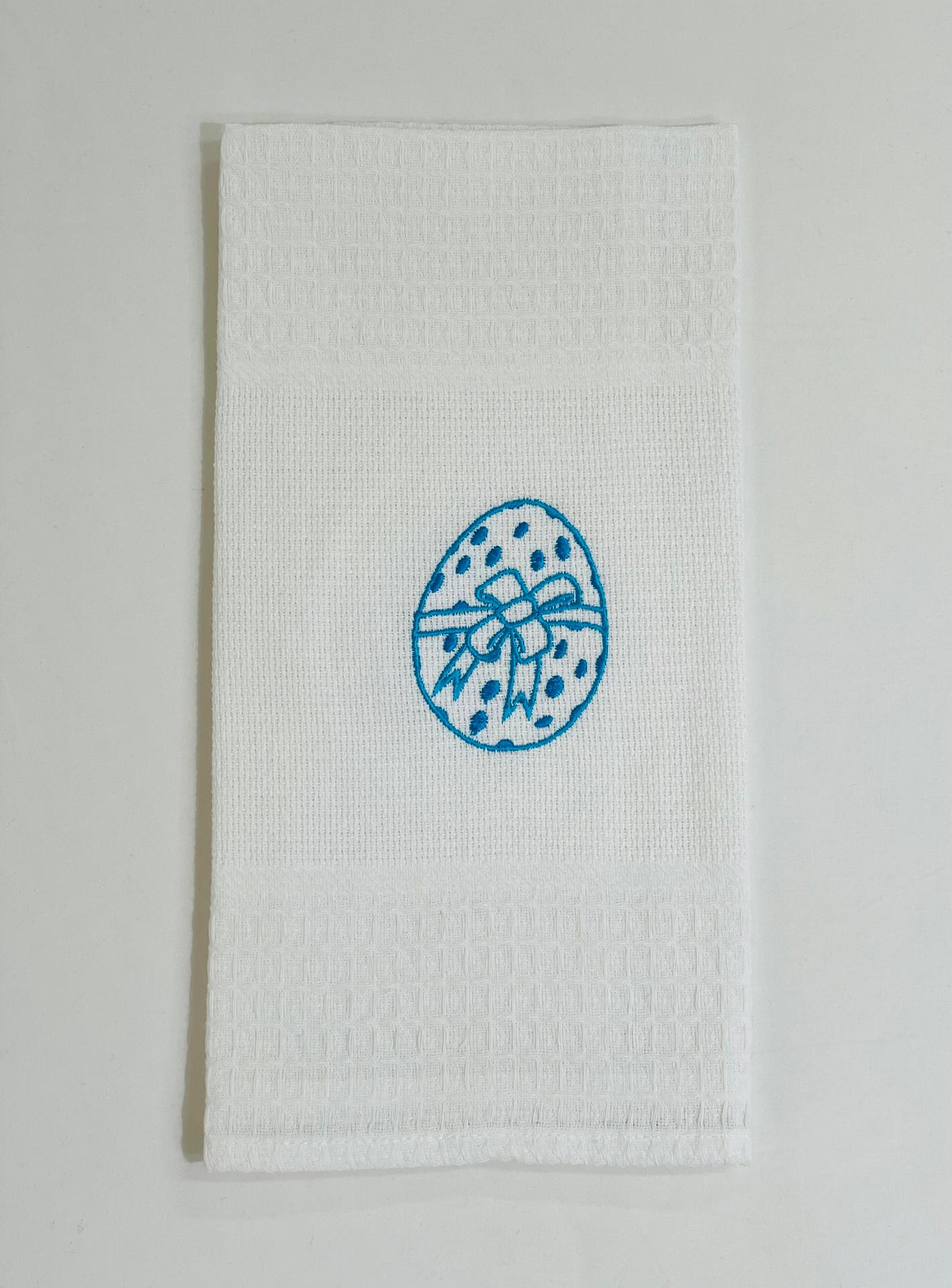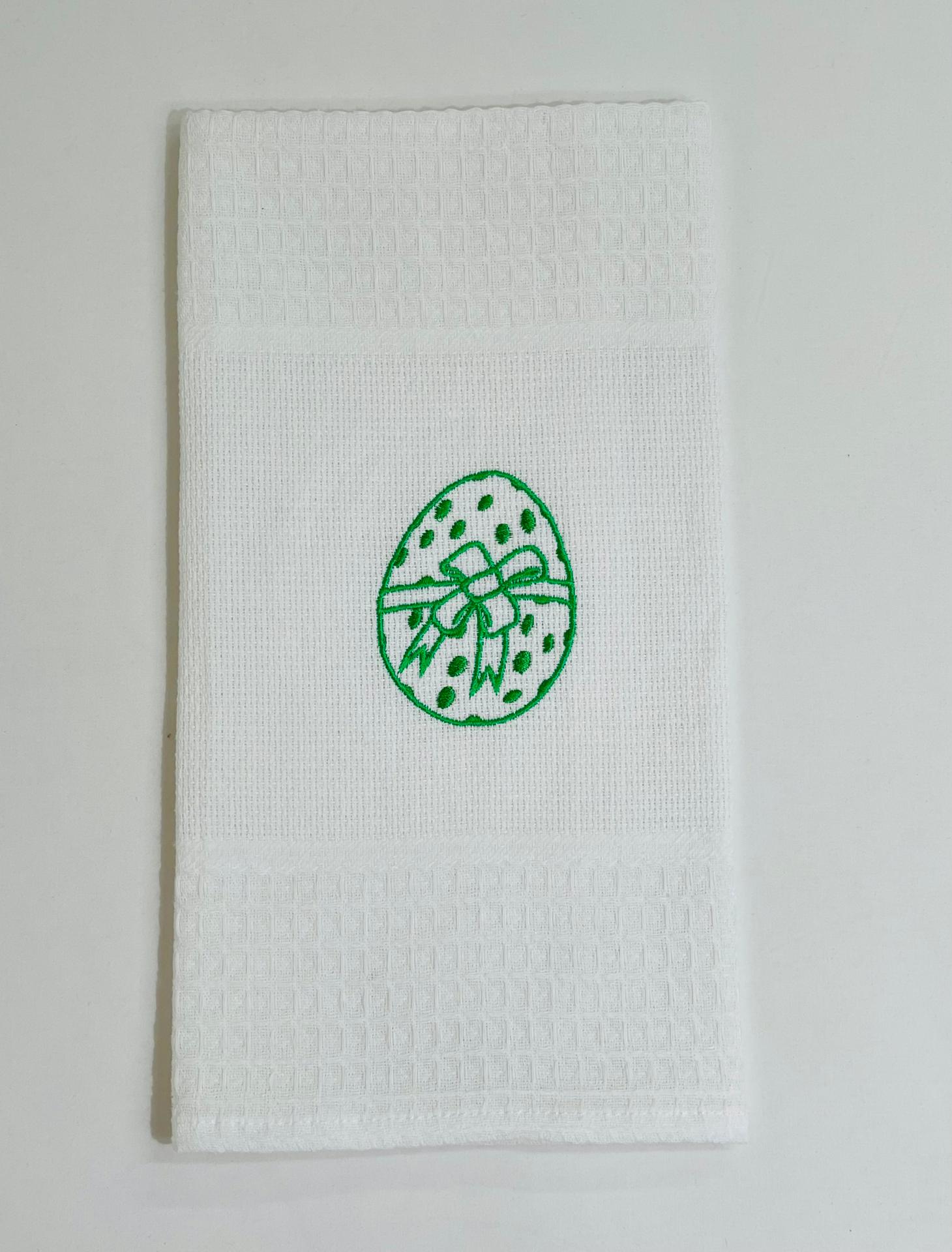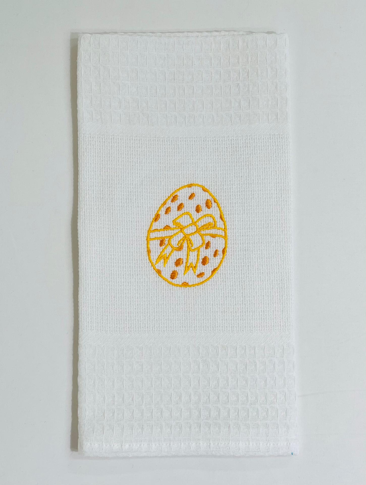 Pano de cozinha favo de algodão com bordado de Ovo.