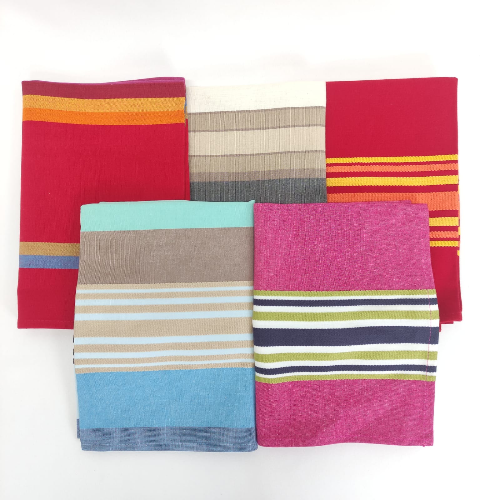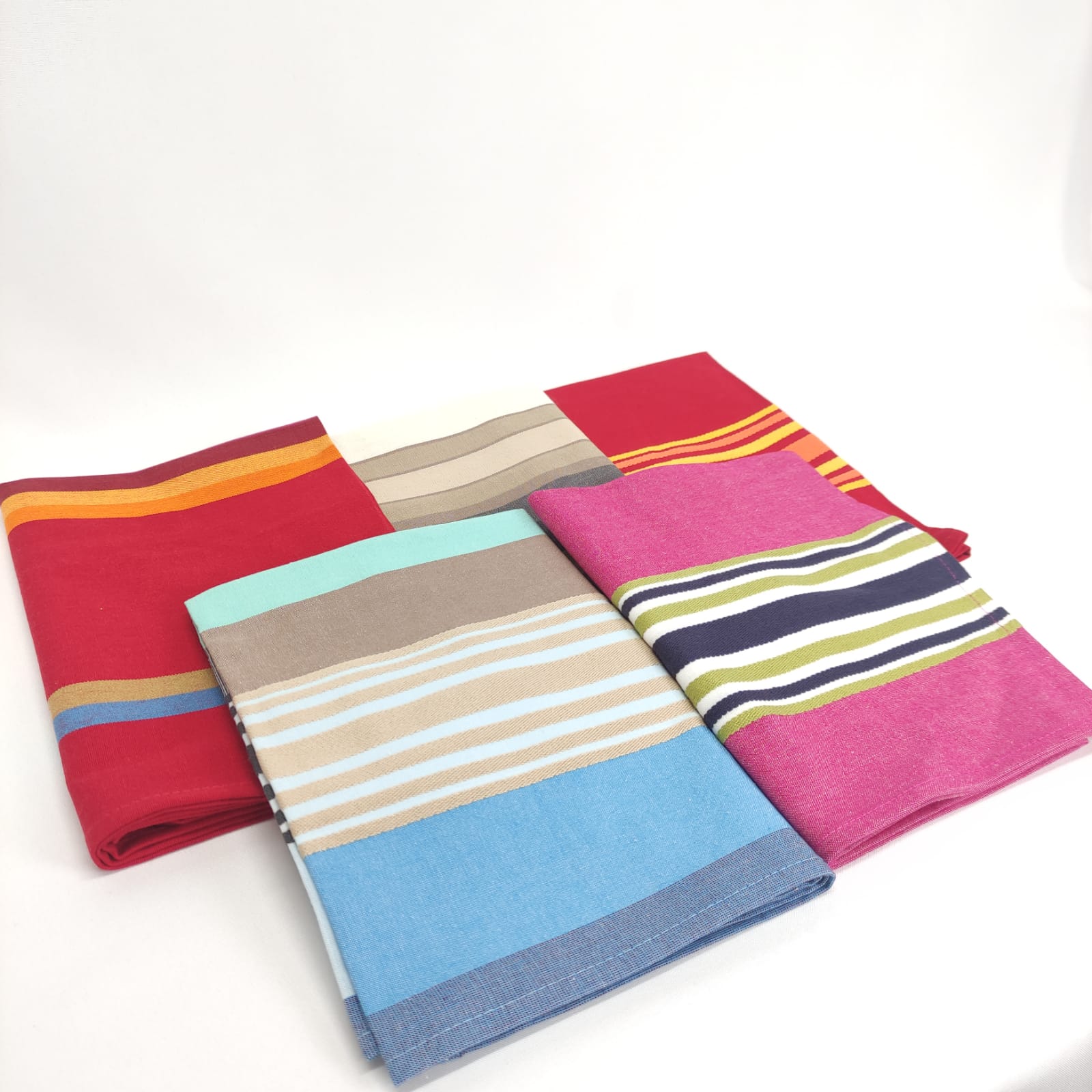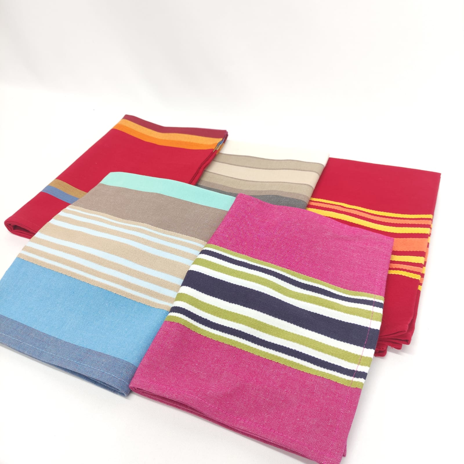 Pano de Cozinha algodão, com remix de riscas. Disponível em diversos modelos.