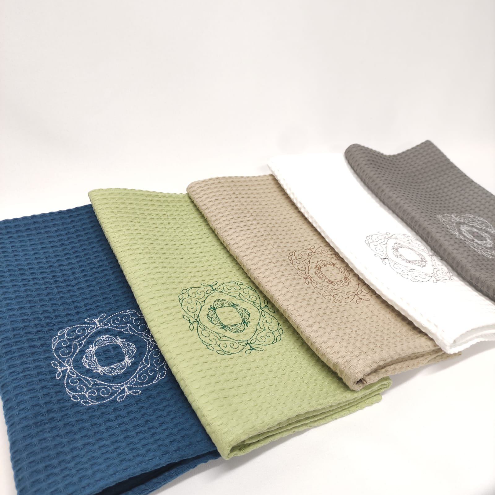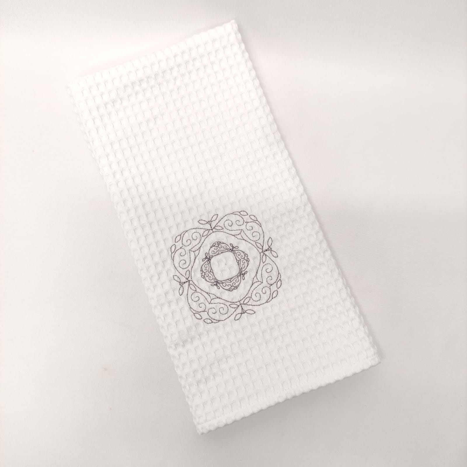 O Pano de Cozinha em algodão com efeito waffle e bordado, possui um grande poder de aborsorção e de secagem rápida, ideal para utilizar no dia a dia.