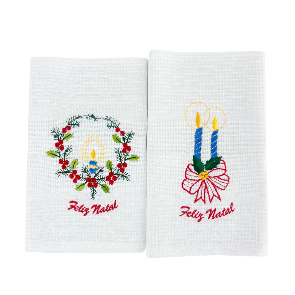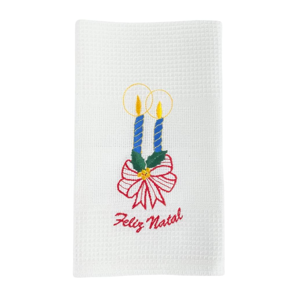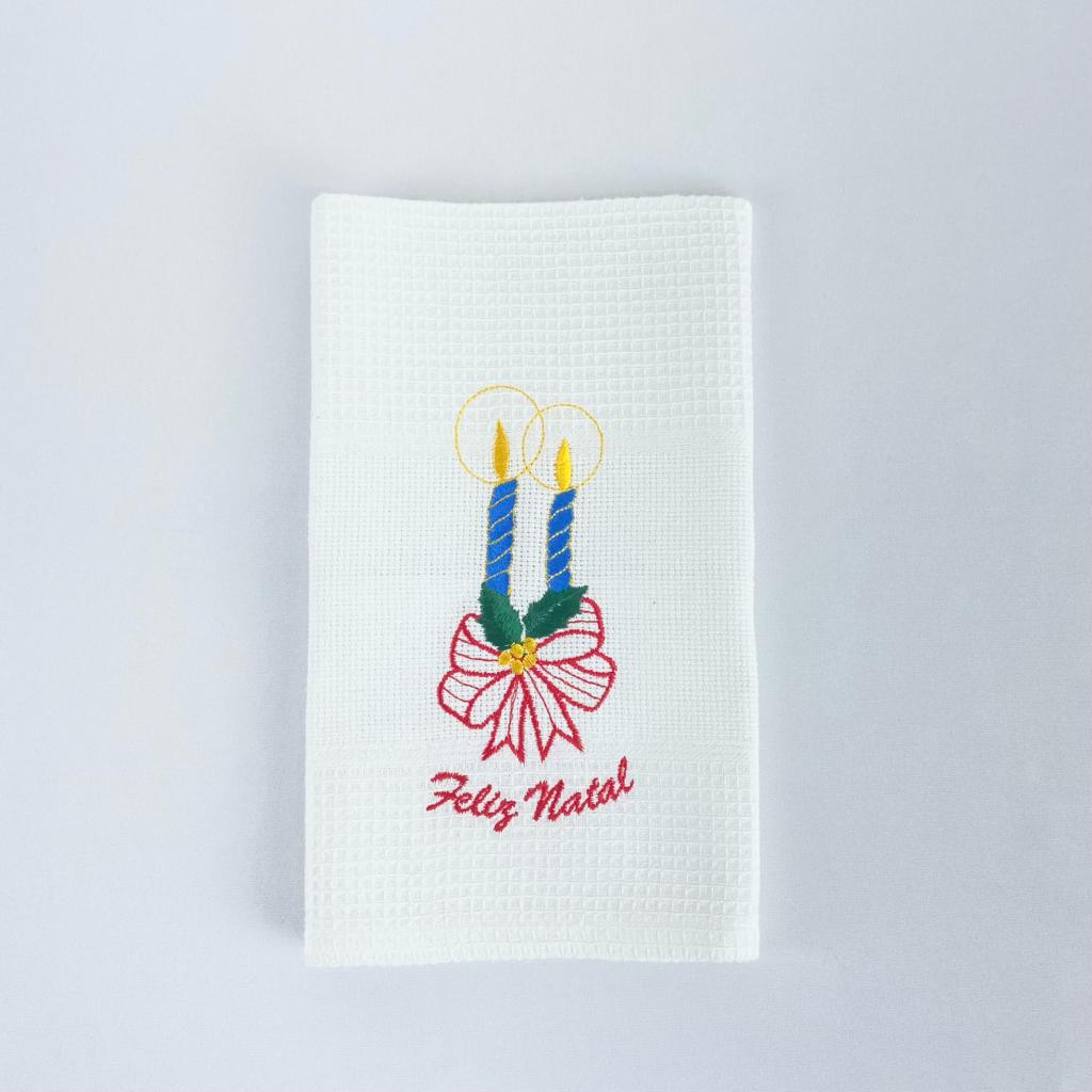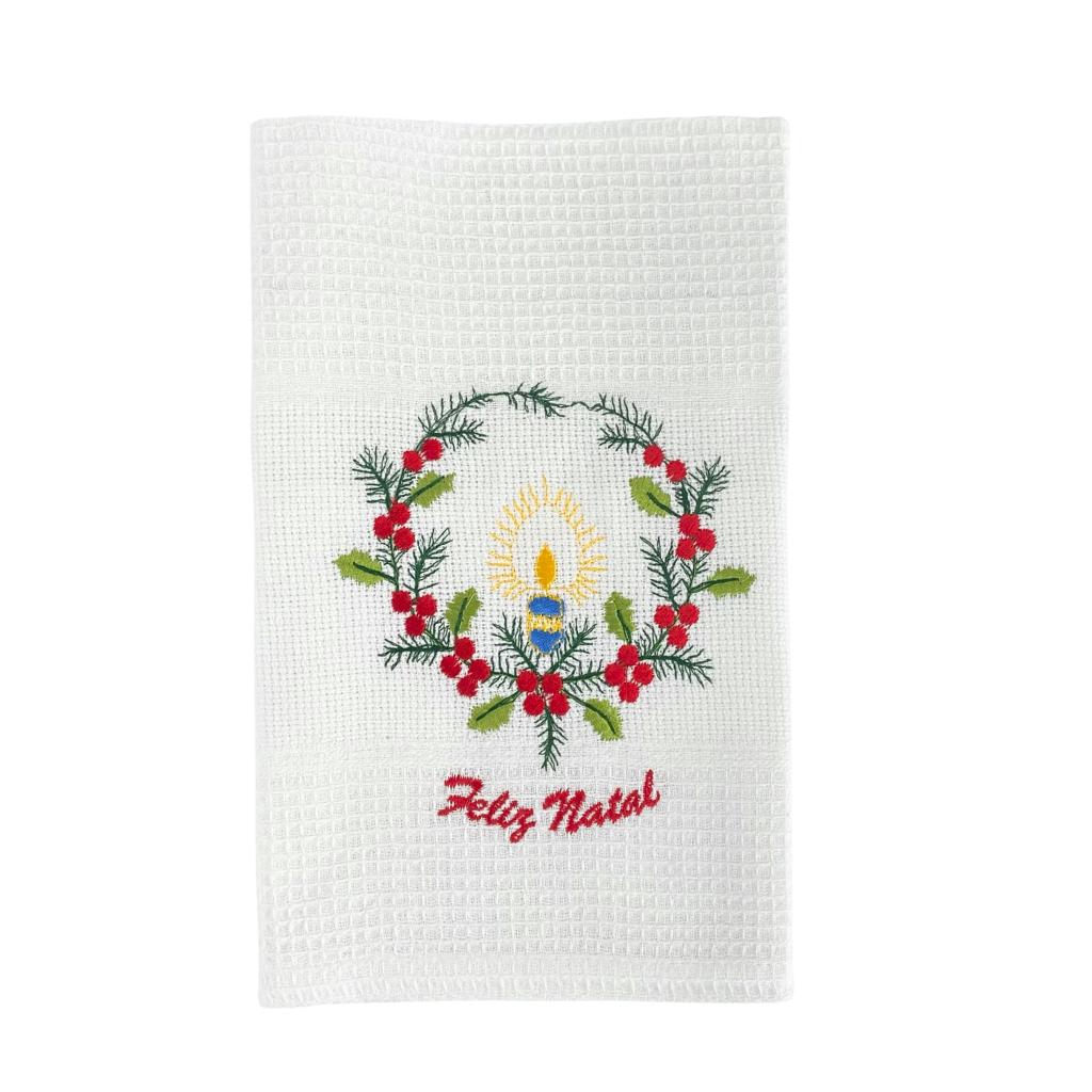 Pano De Cozinha algodão branco, com bordado natalício.