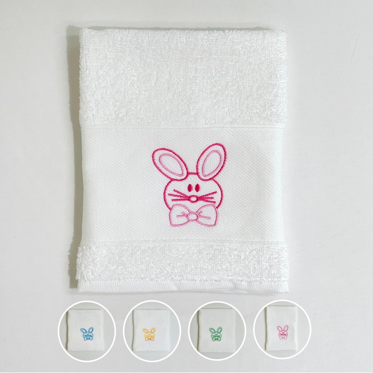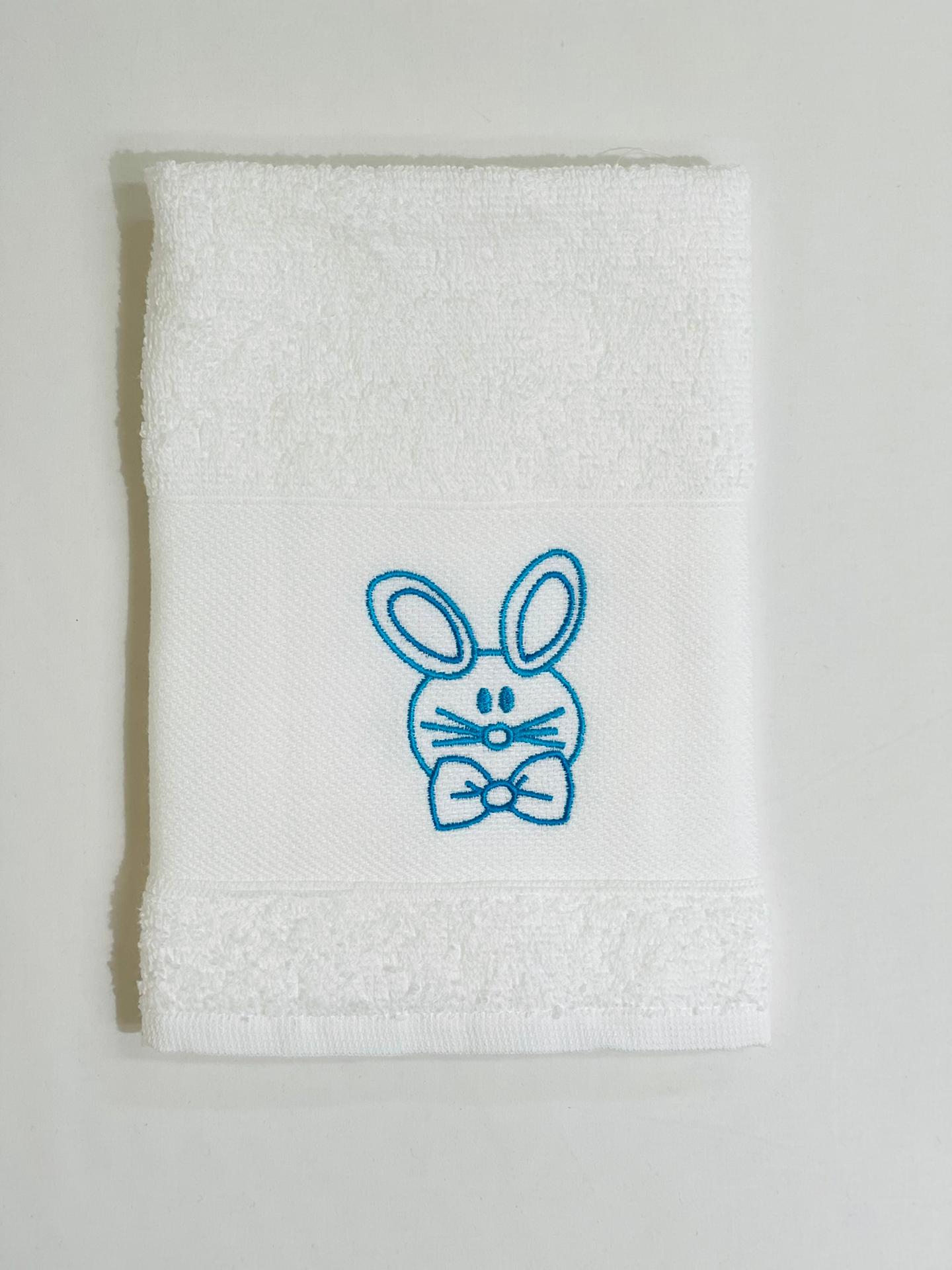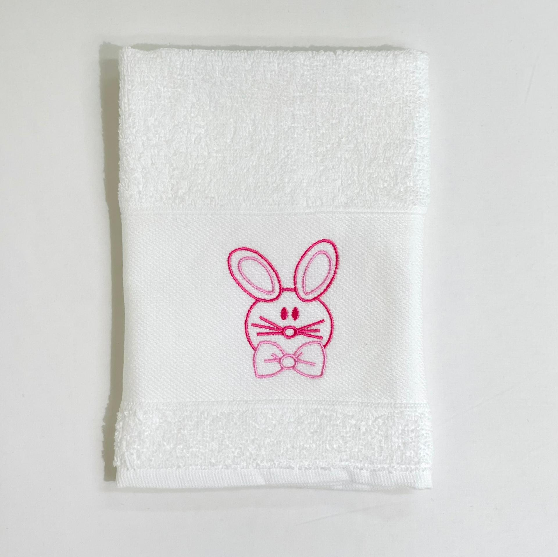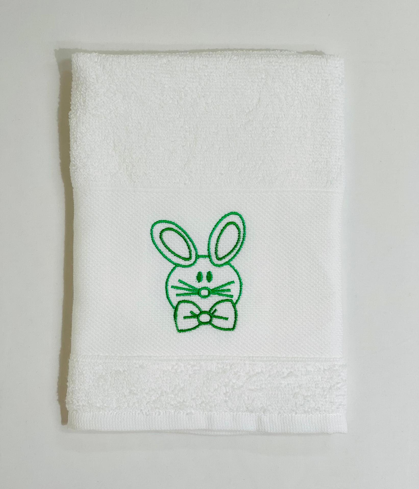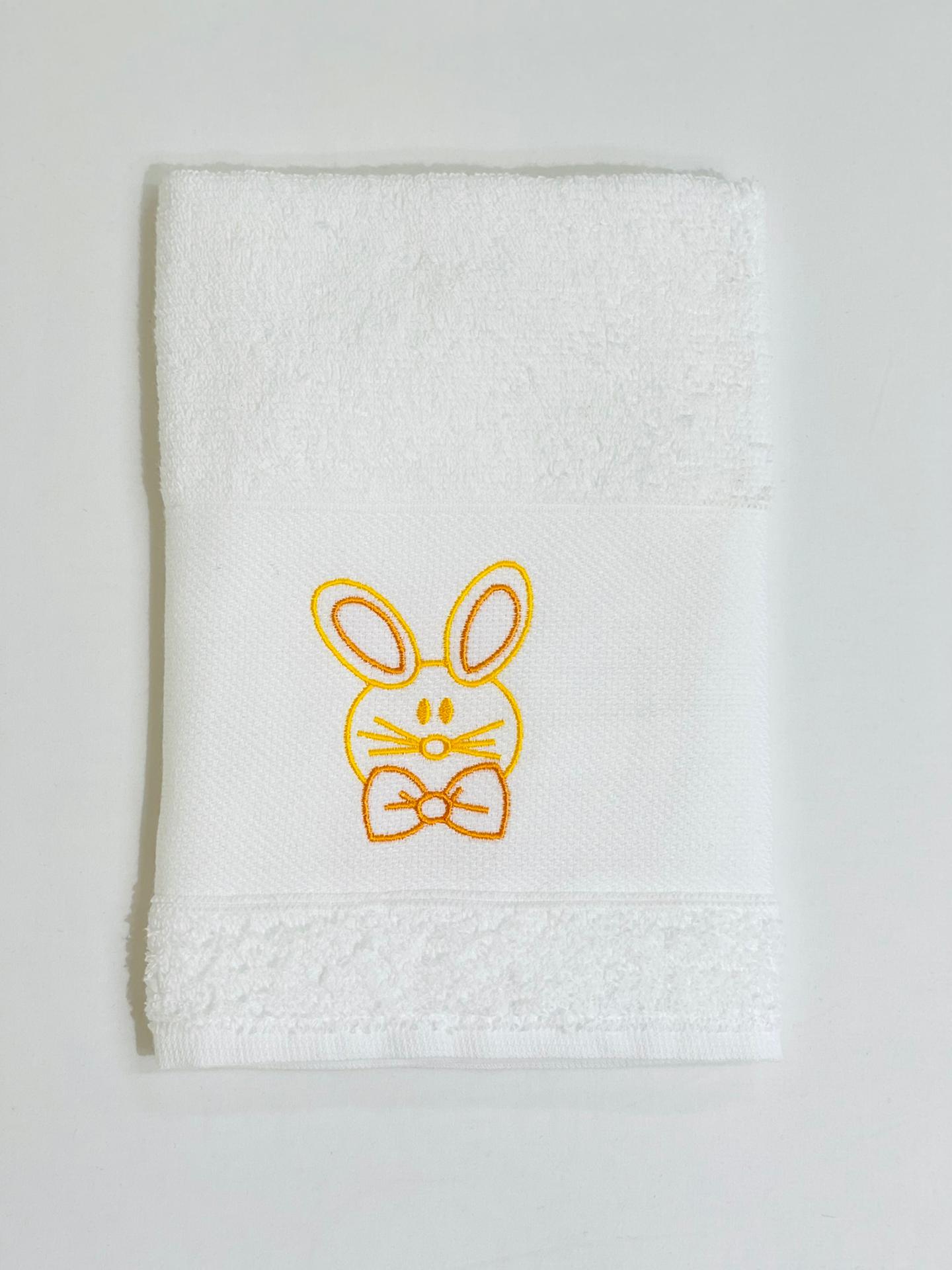 Pano de cozinha em felpo de algodão Branco com bordado de coelho.