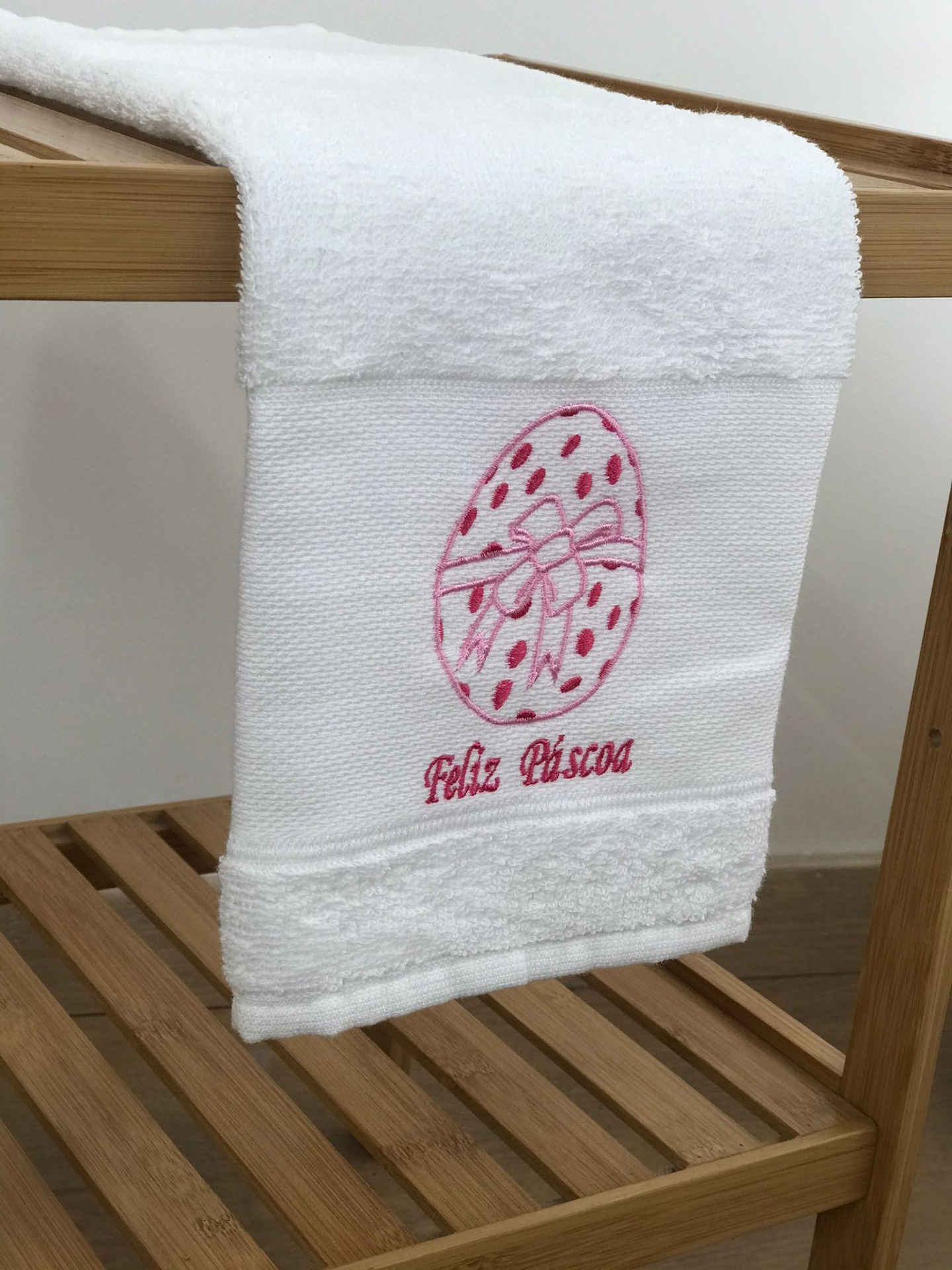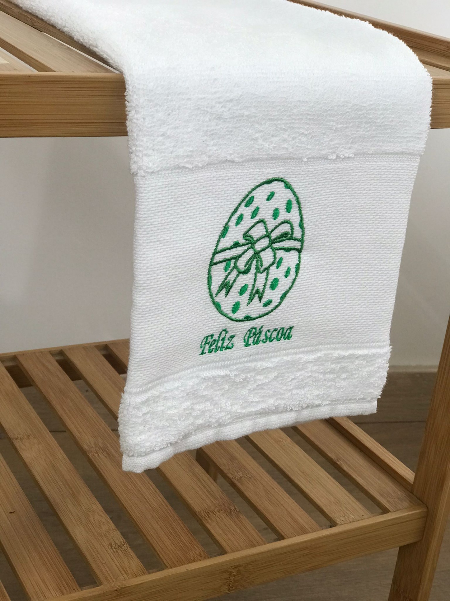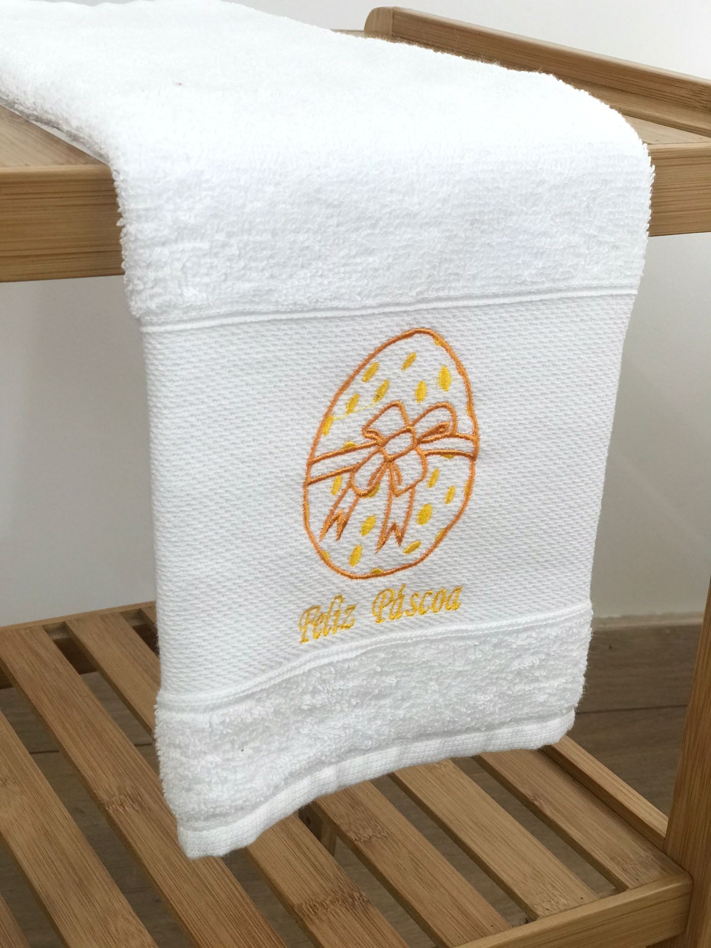 Pano de Cozinha Felpo Branco Ovos Feliz Páscoa