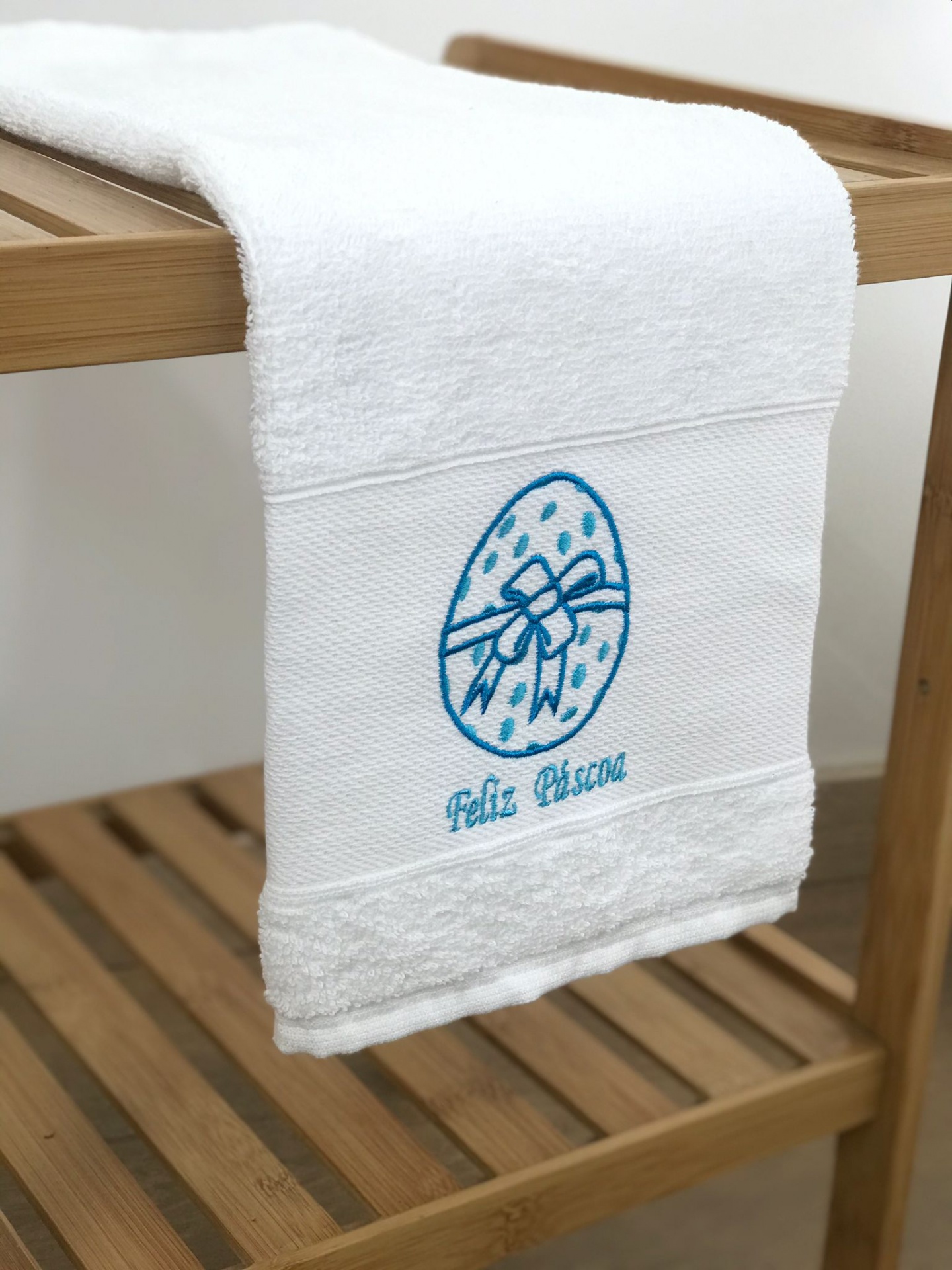 Pano de cozinha em felpo de algodão Branco com bordado.