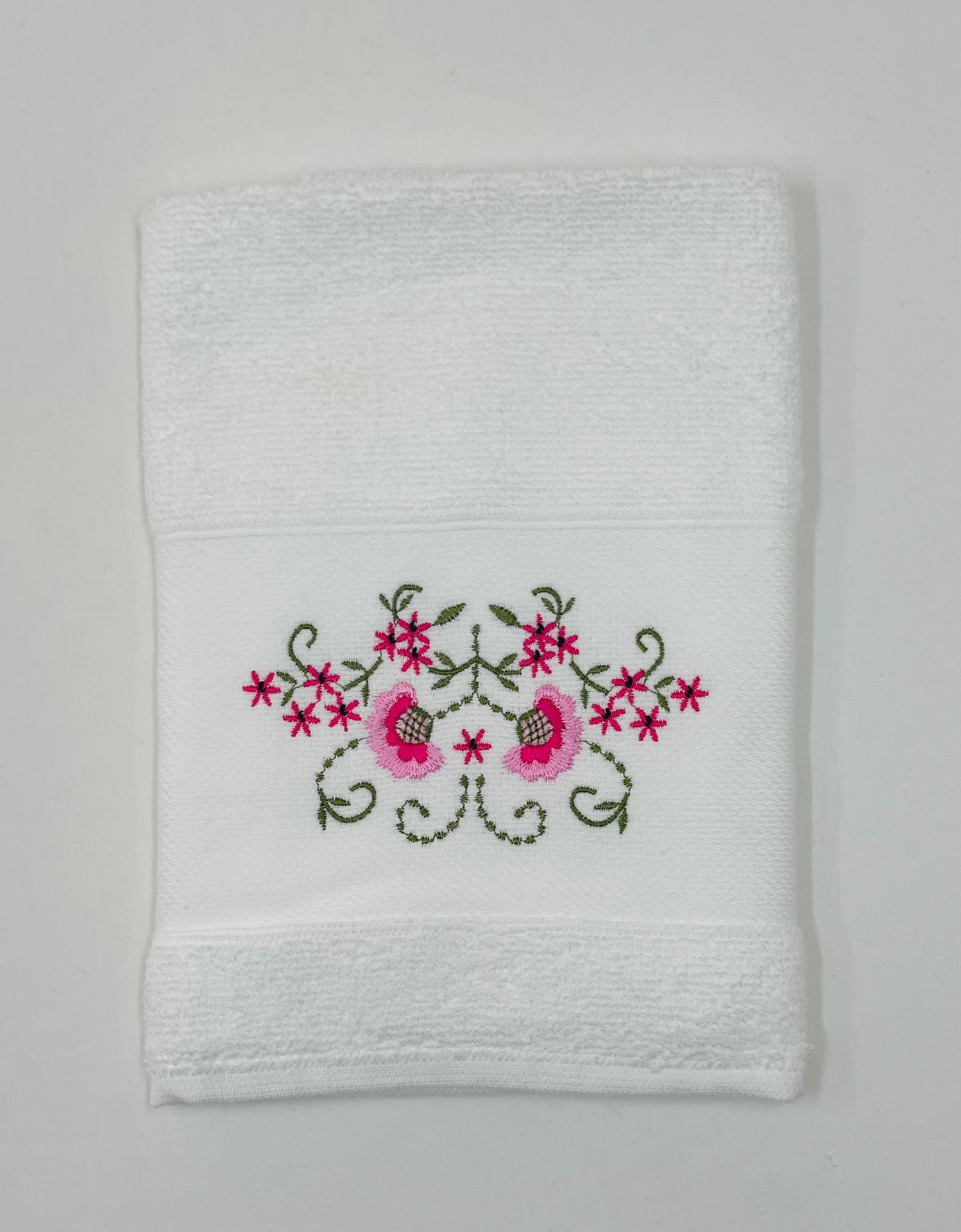 Pano de cozinha em felpo de algodão Branco com bordado.