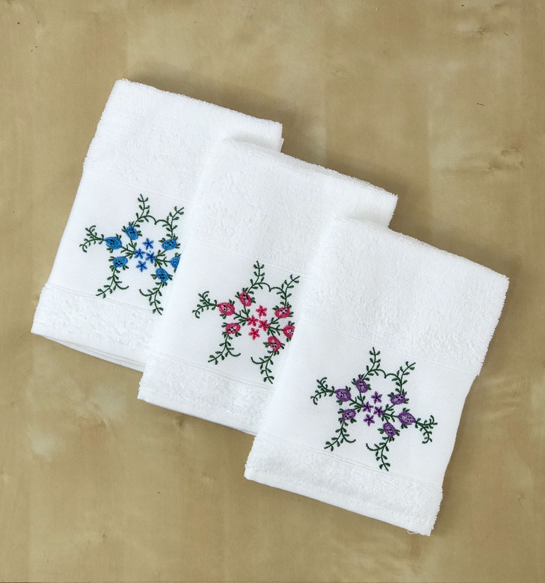 Pano de cozinha em felpo de algodão Branco com bordado.