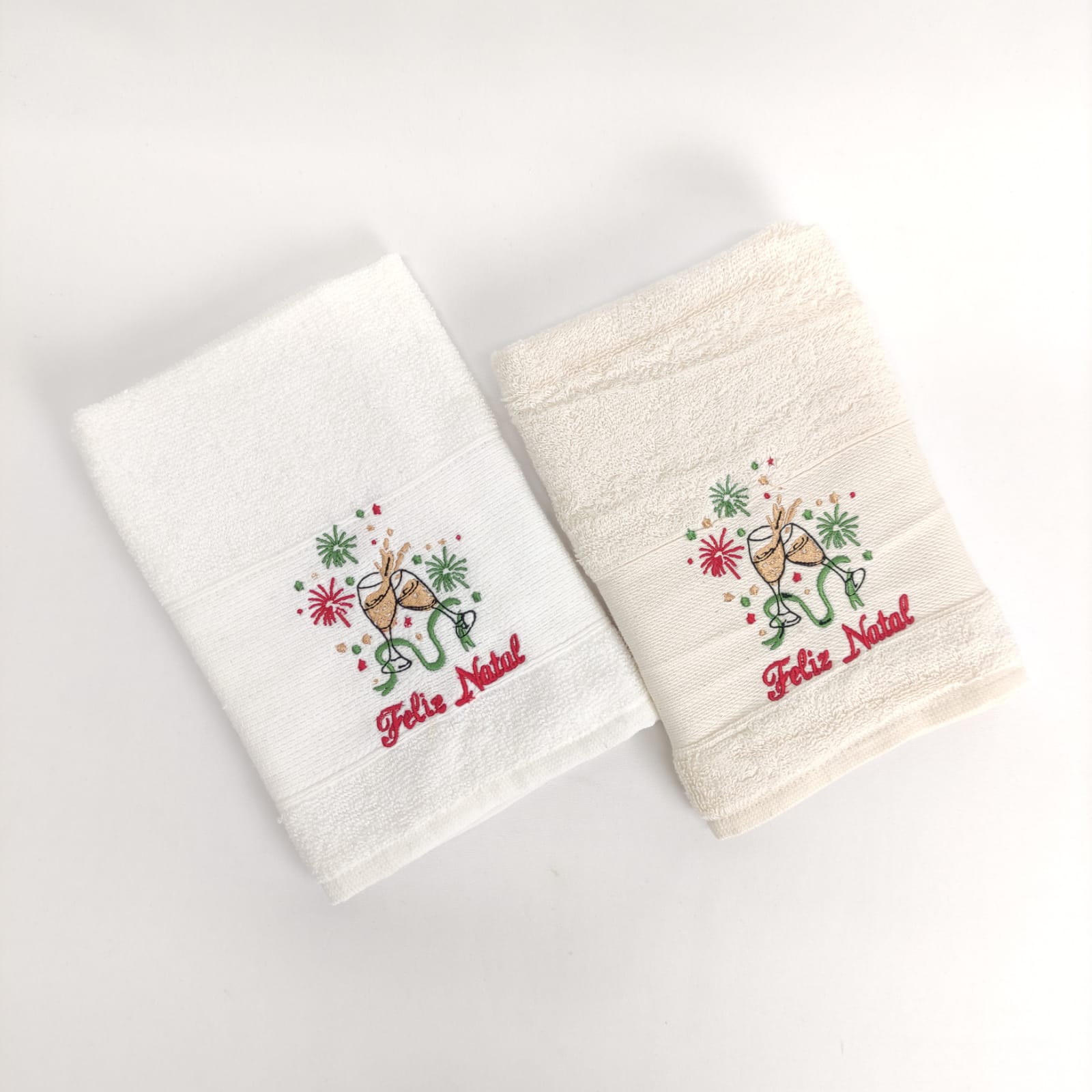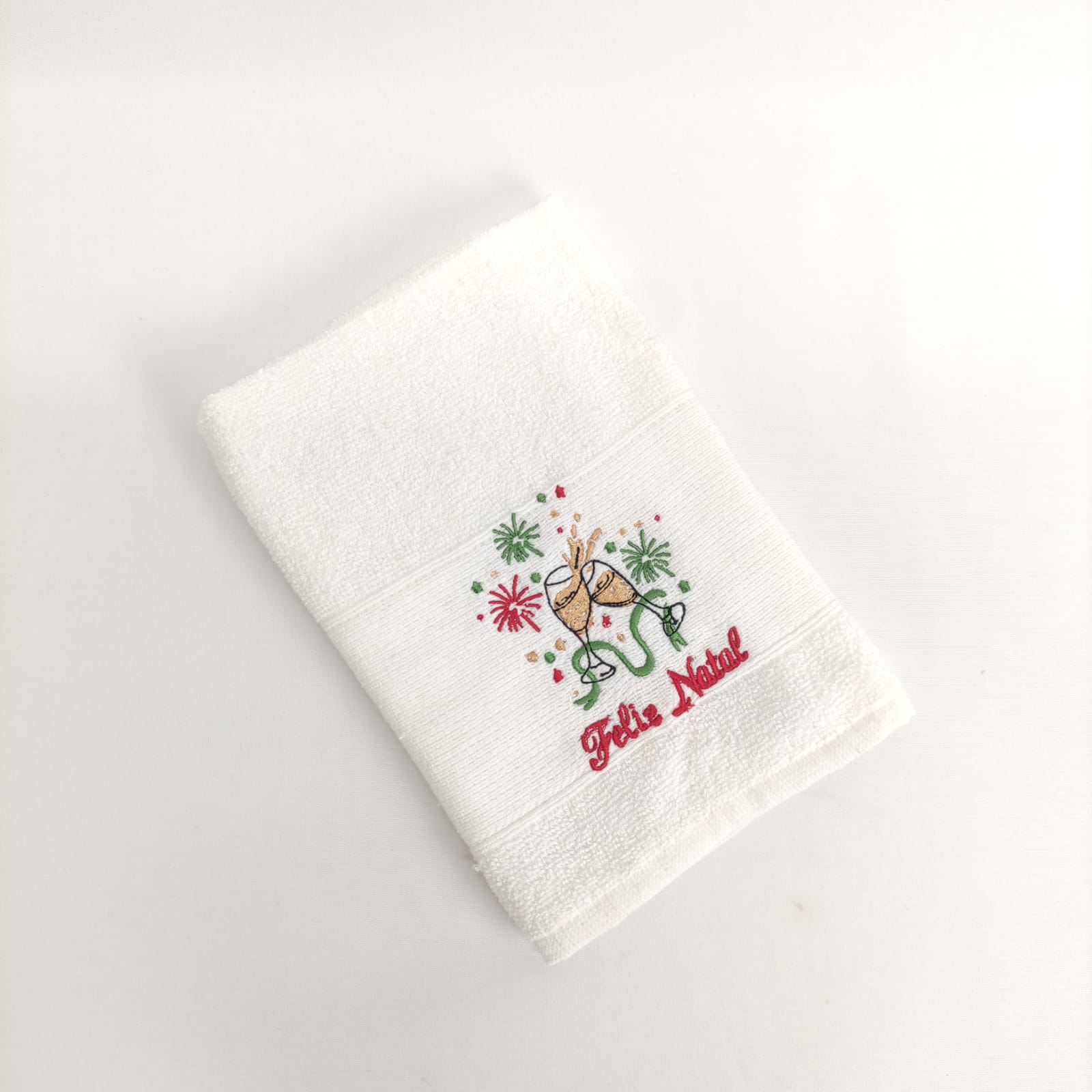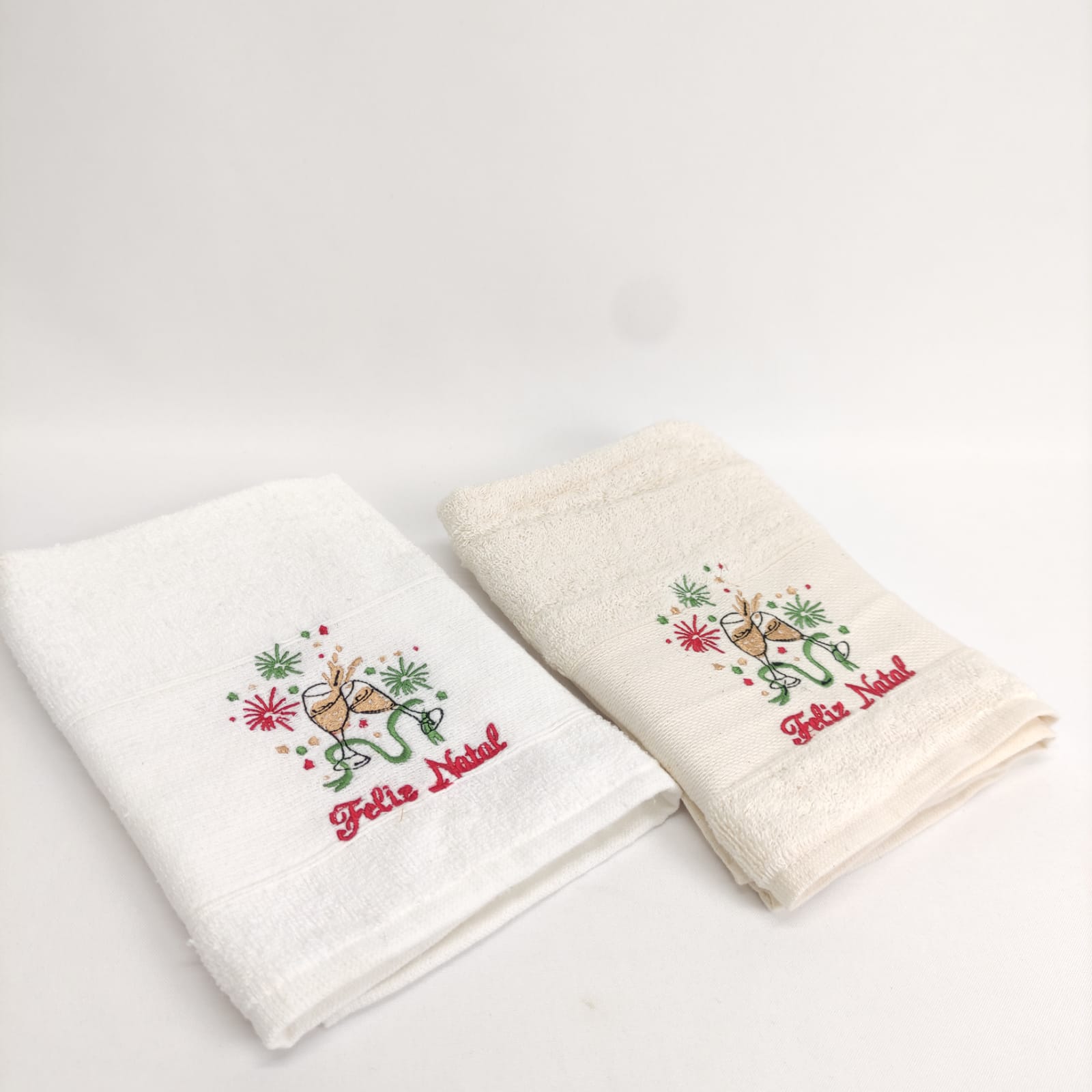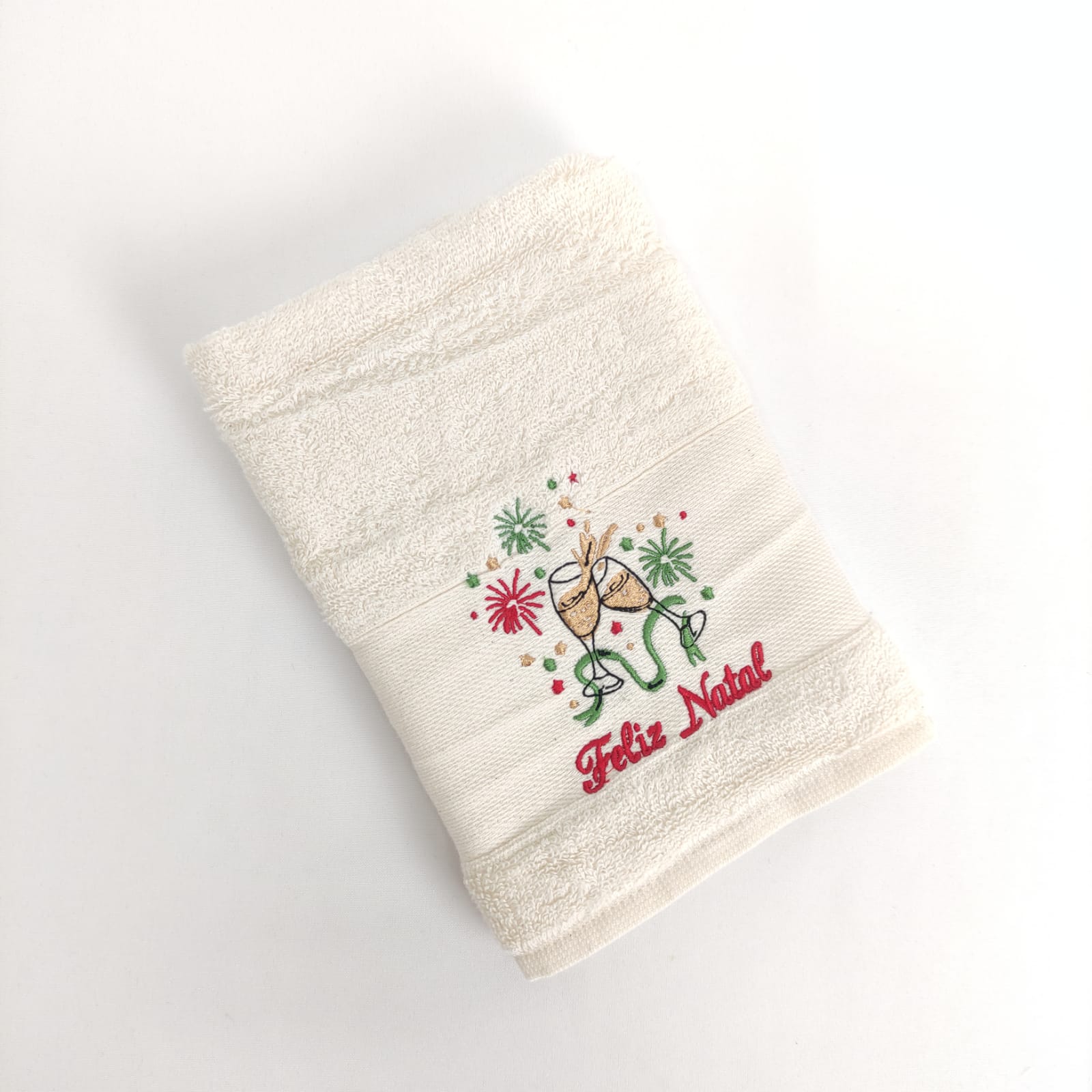 Pano de cozinha em felpo de algodão branco ou bege com bordado natalício.
