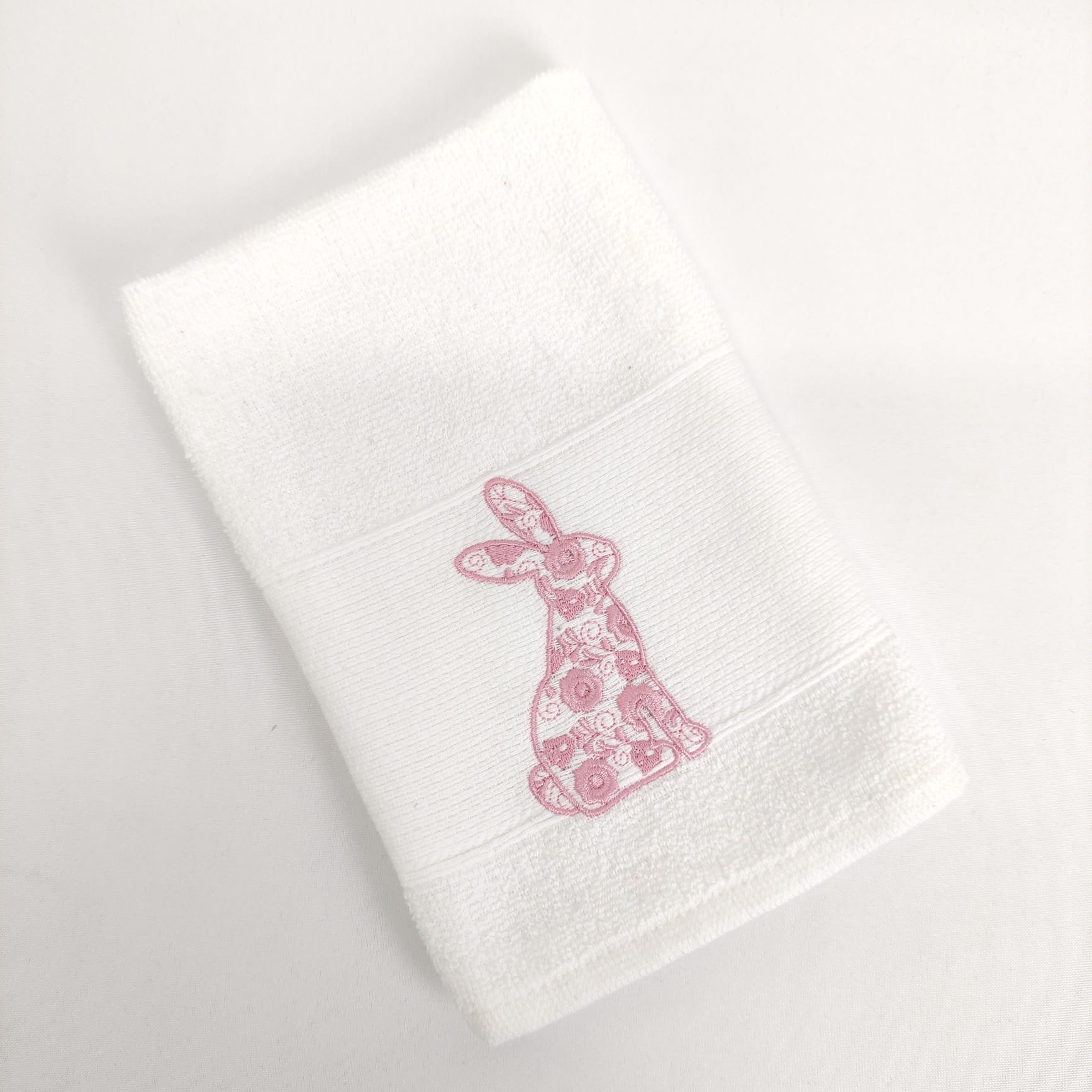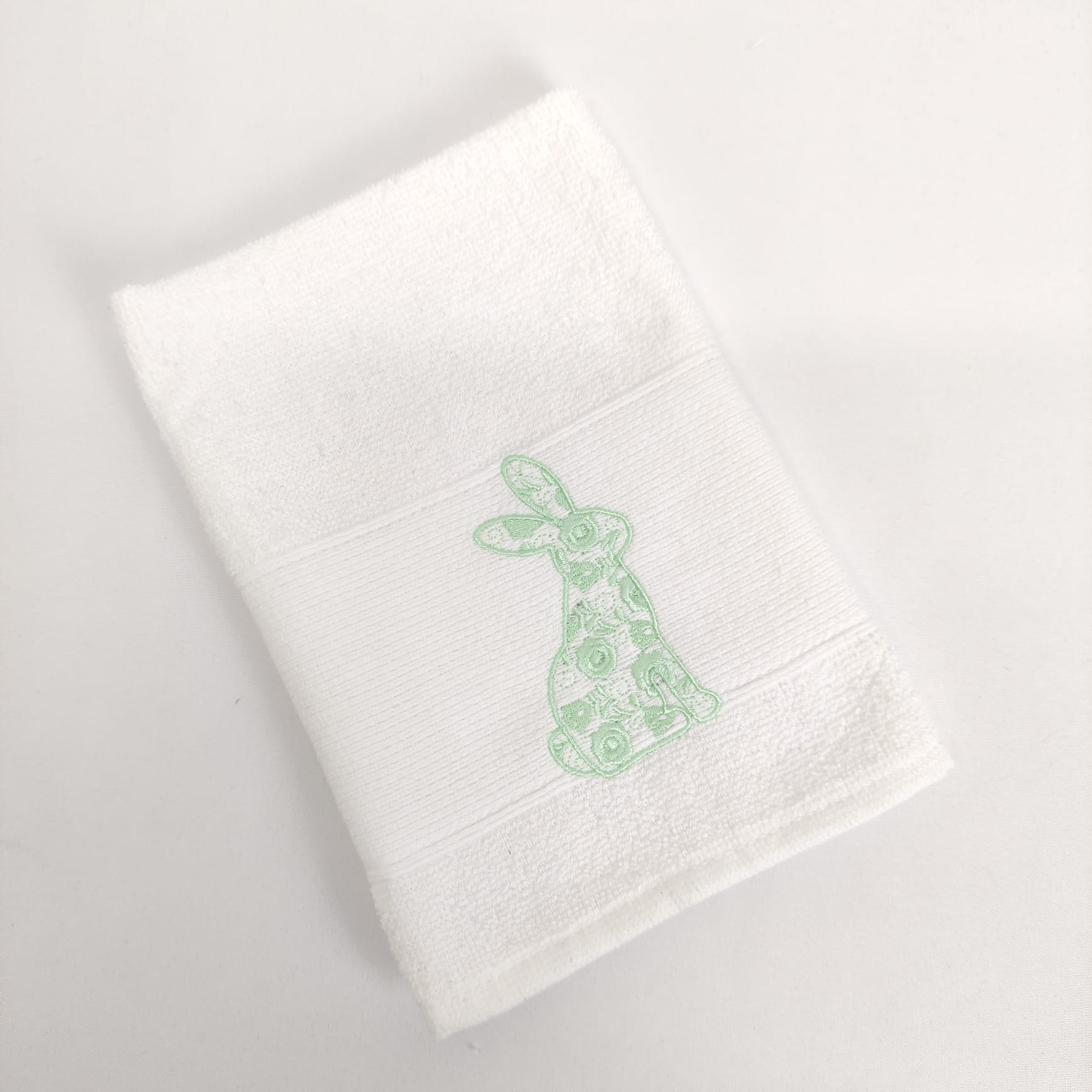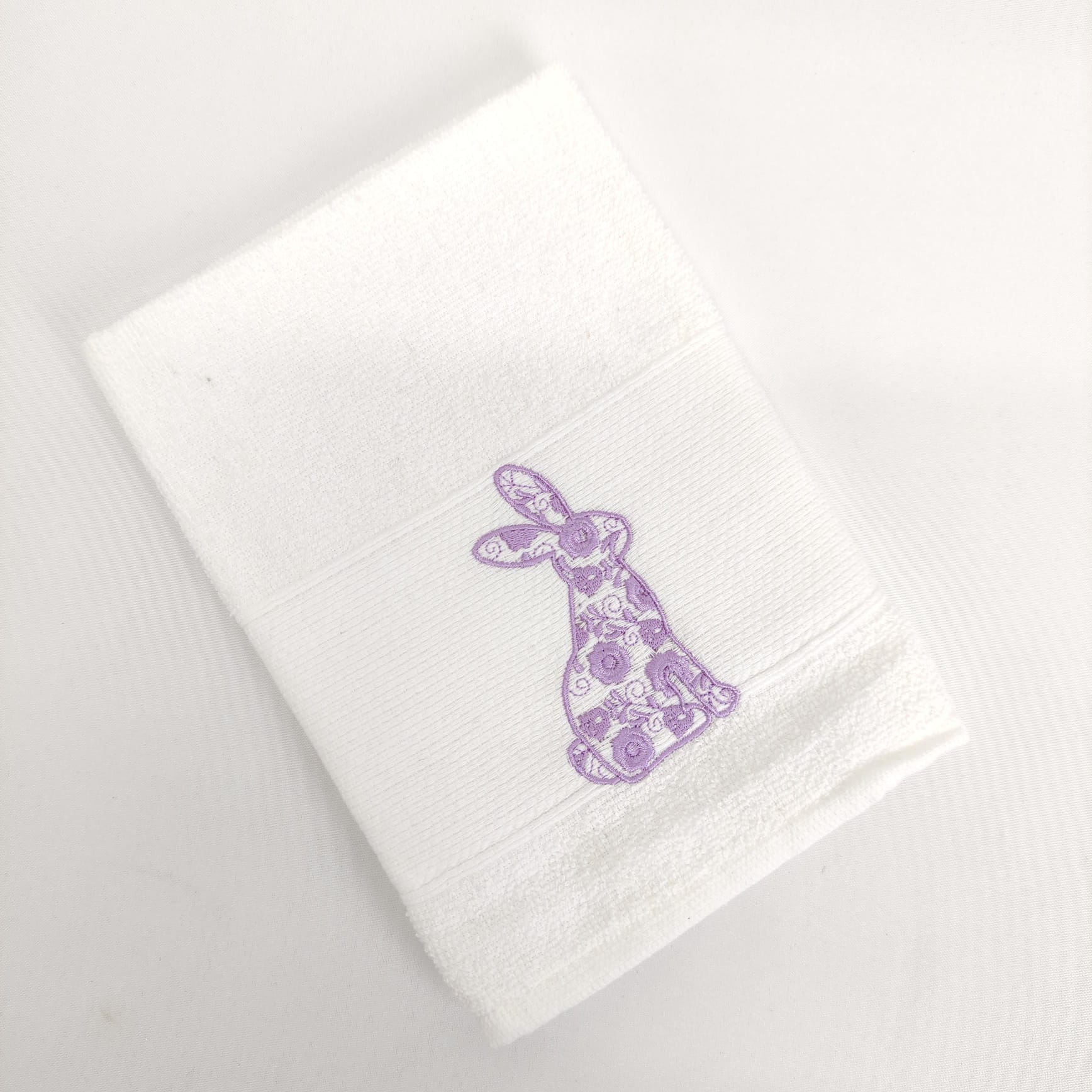 Pano de cozinha em felpo de algodão branco com bordado alusivo à Páscoa, a combinação perfeita entre maciez e absorção.