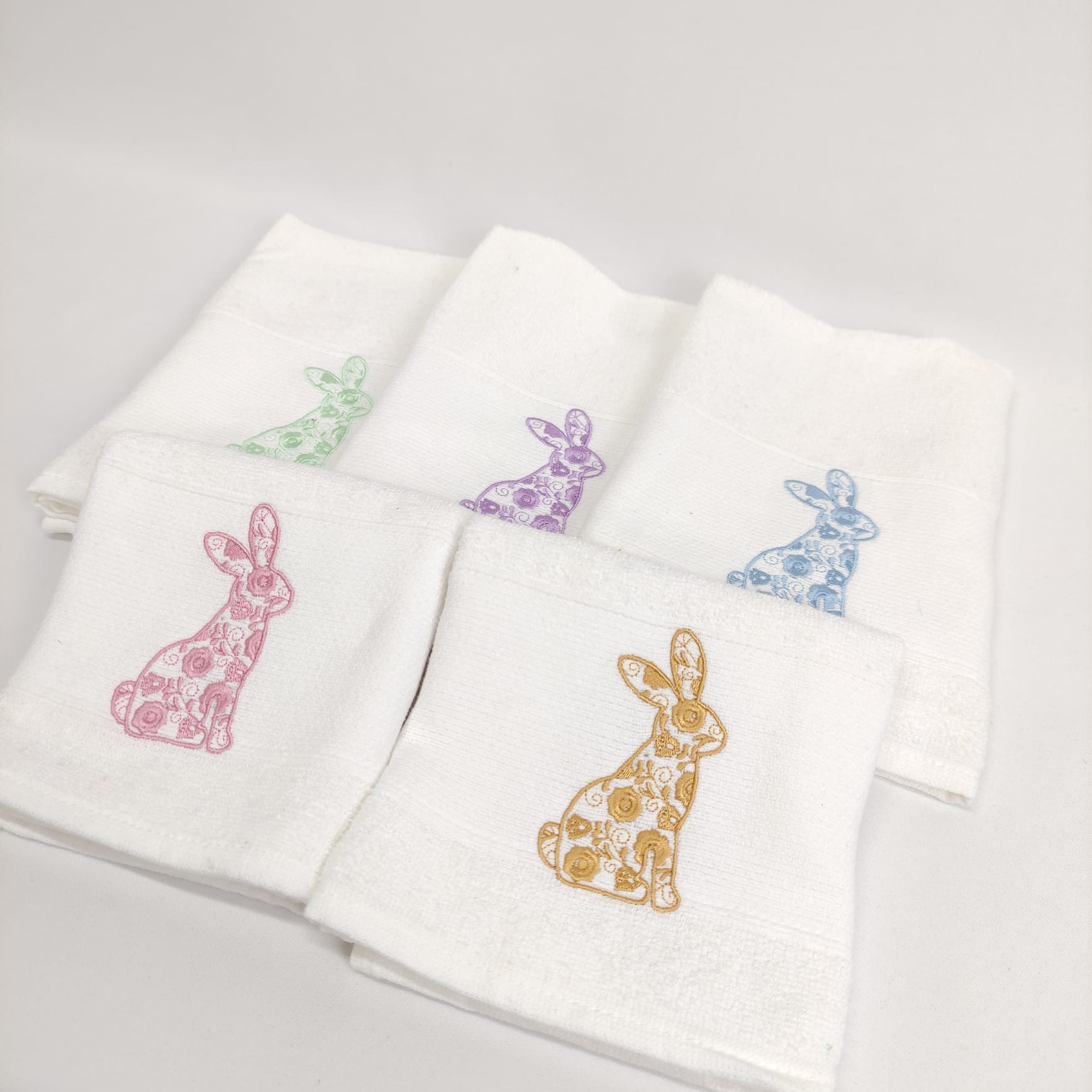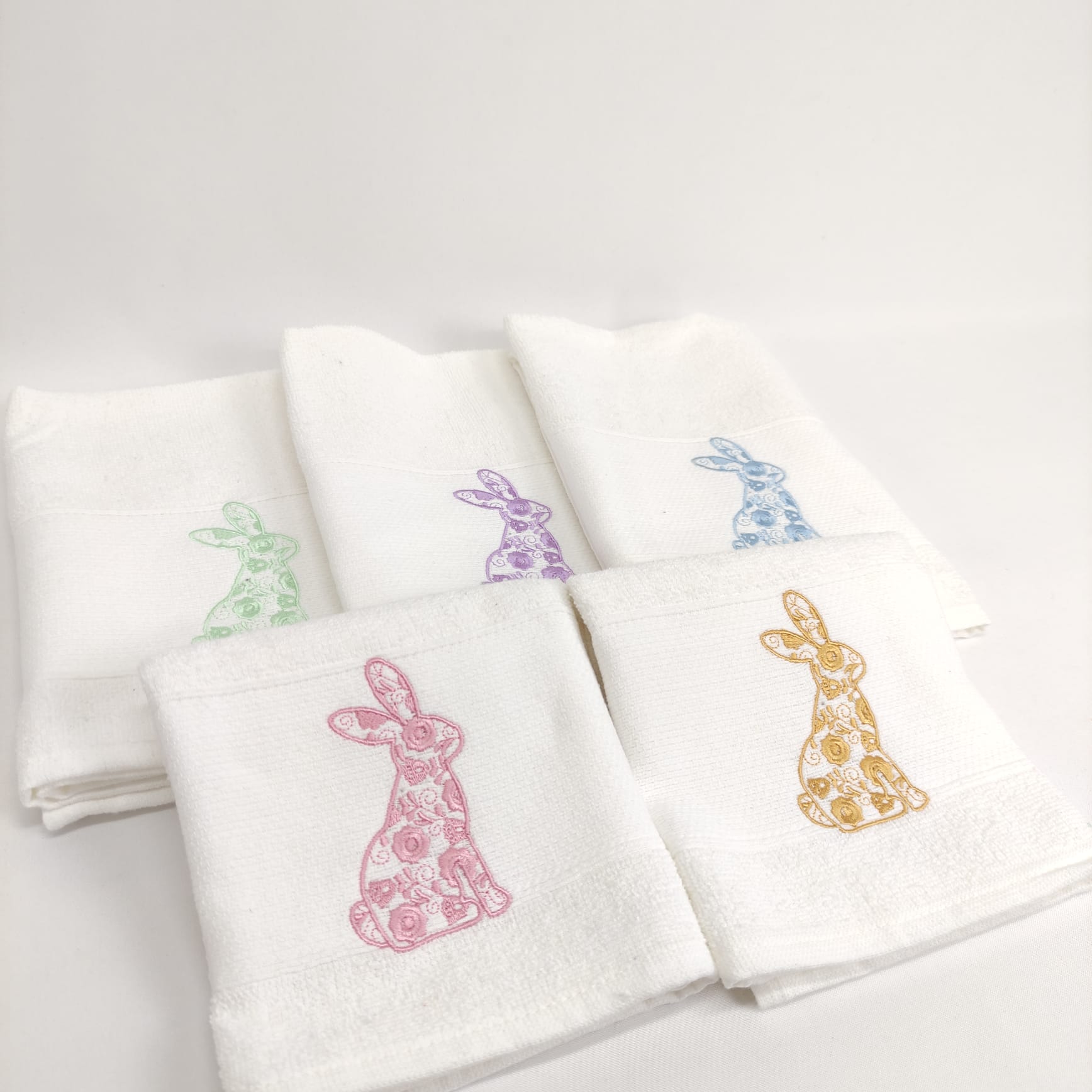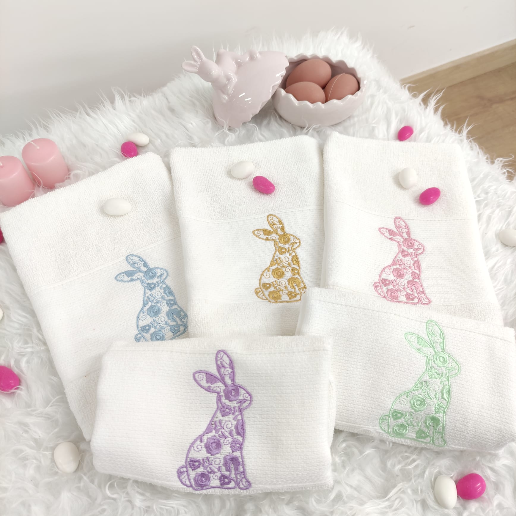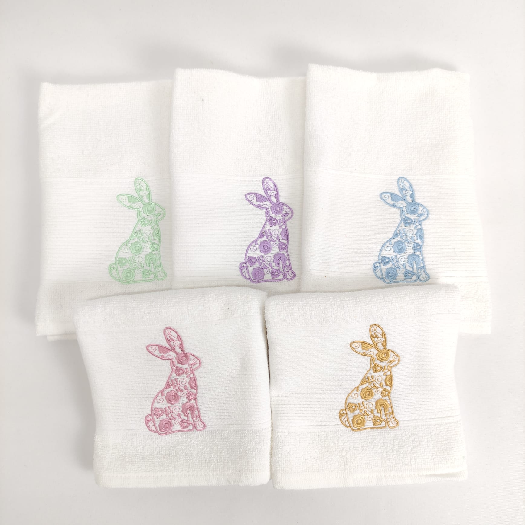 Pano de cozinha em felpo de algodão branco com bordado alusivo à Páscoa, a combinação perfeita entre maciez e absorção.