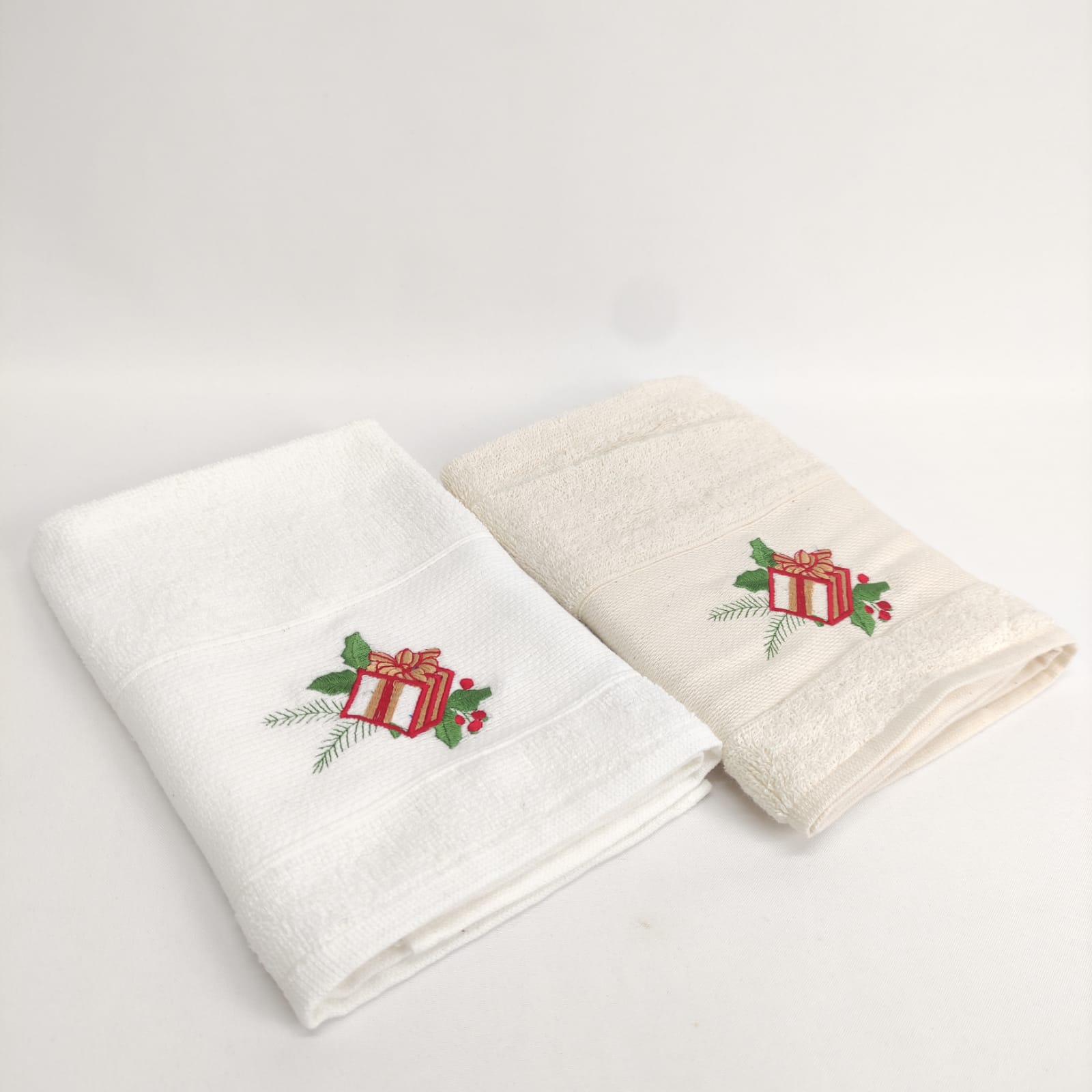 Pano de cozinha em felpo de algodão branco ou bege com bordado natalício, de presente.