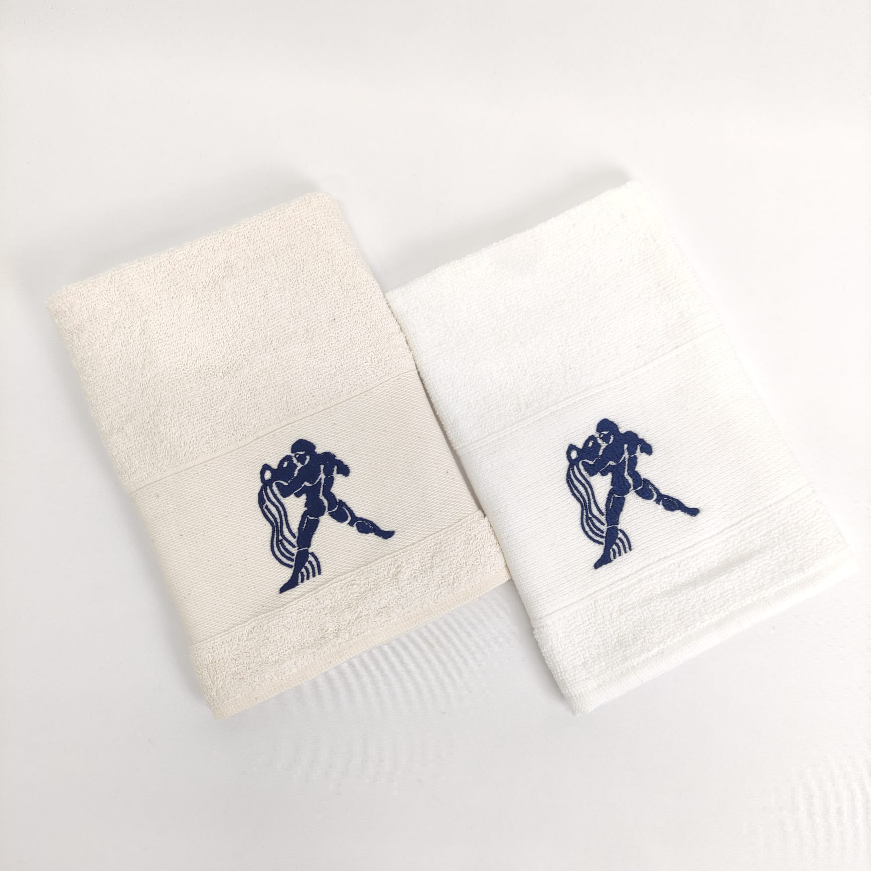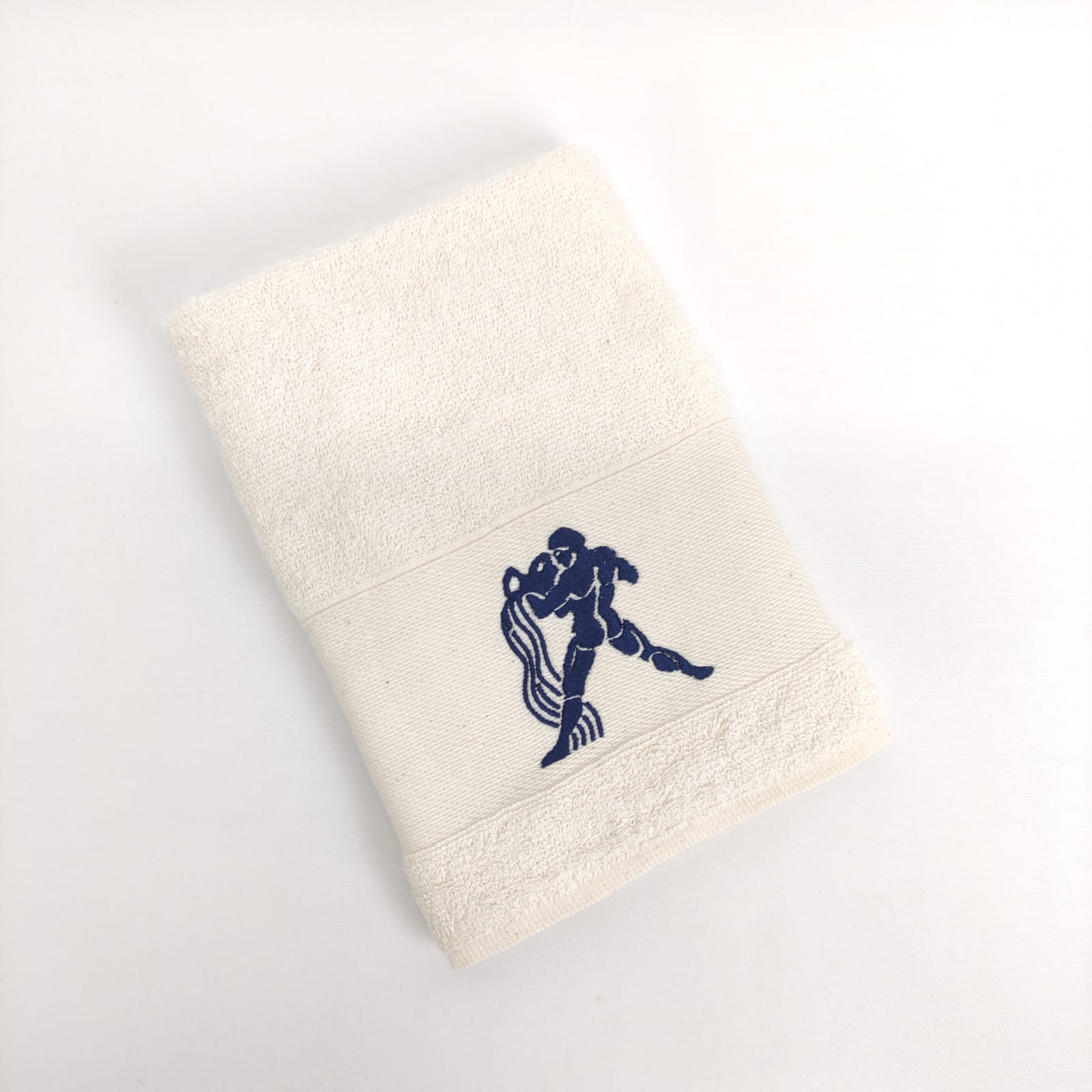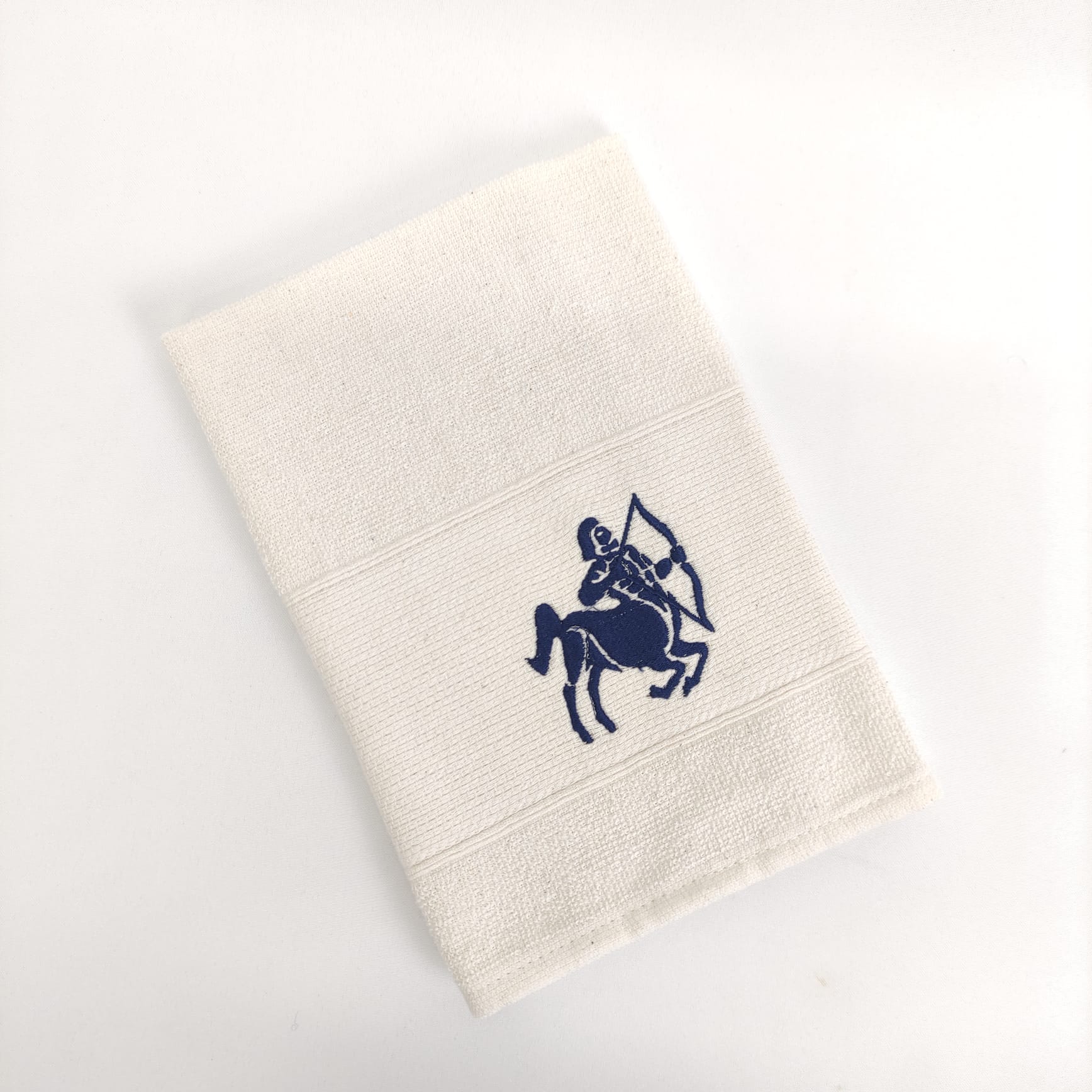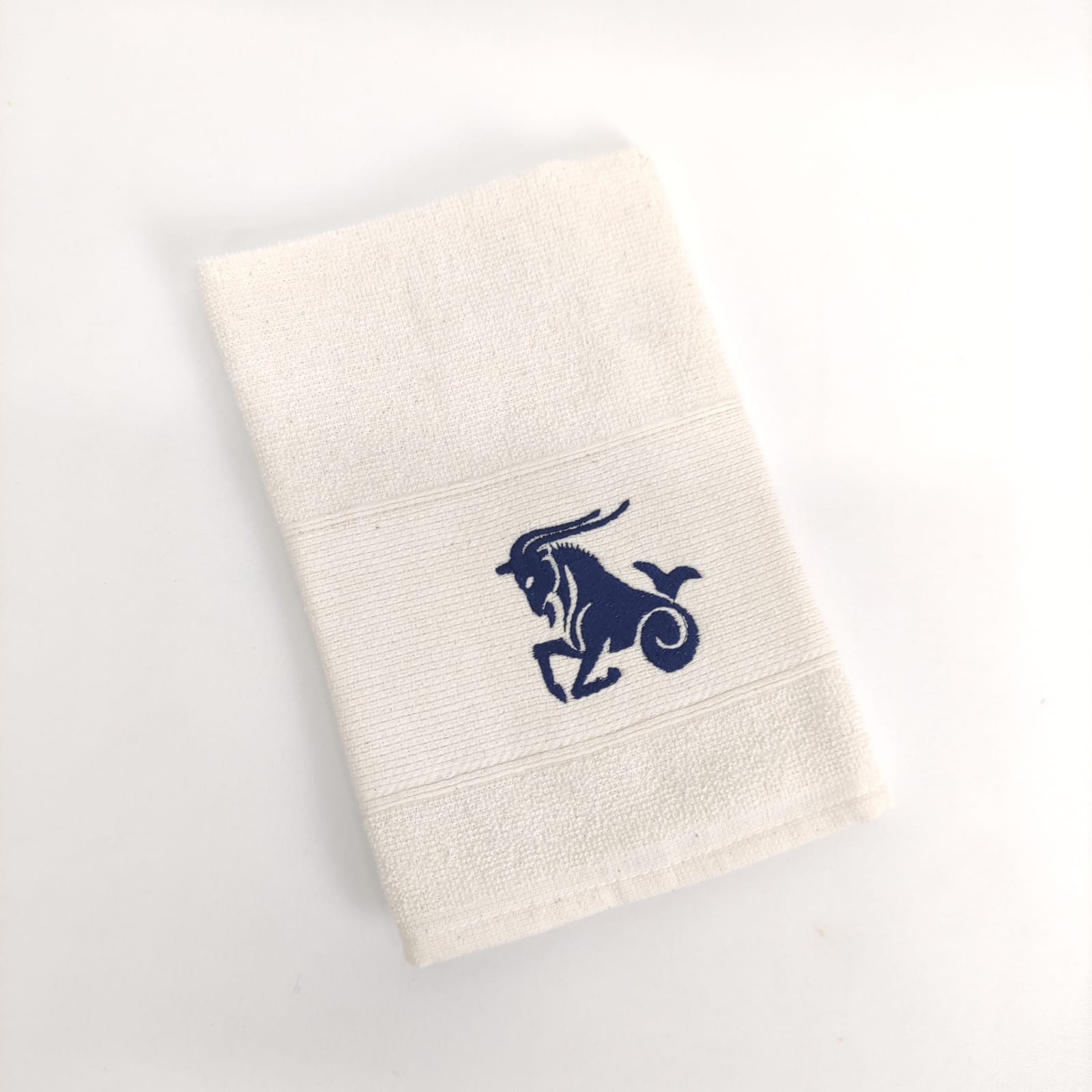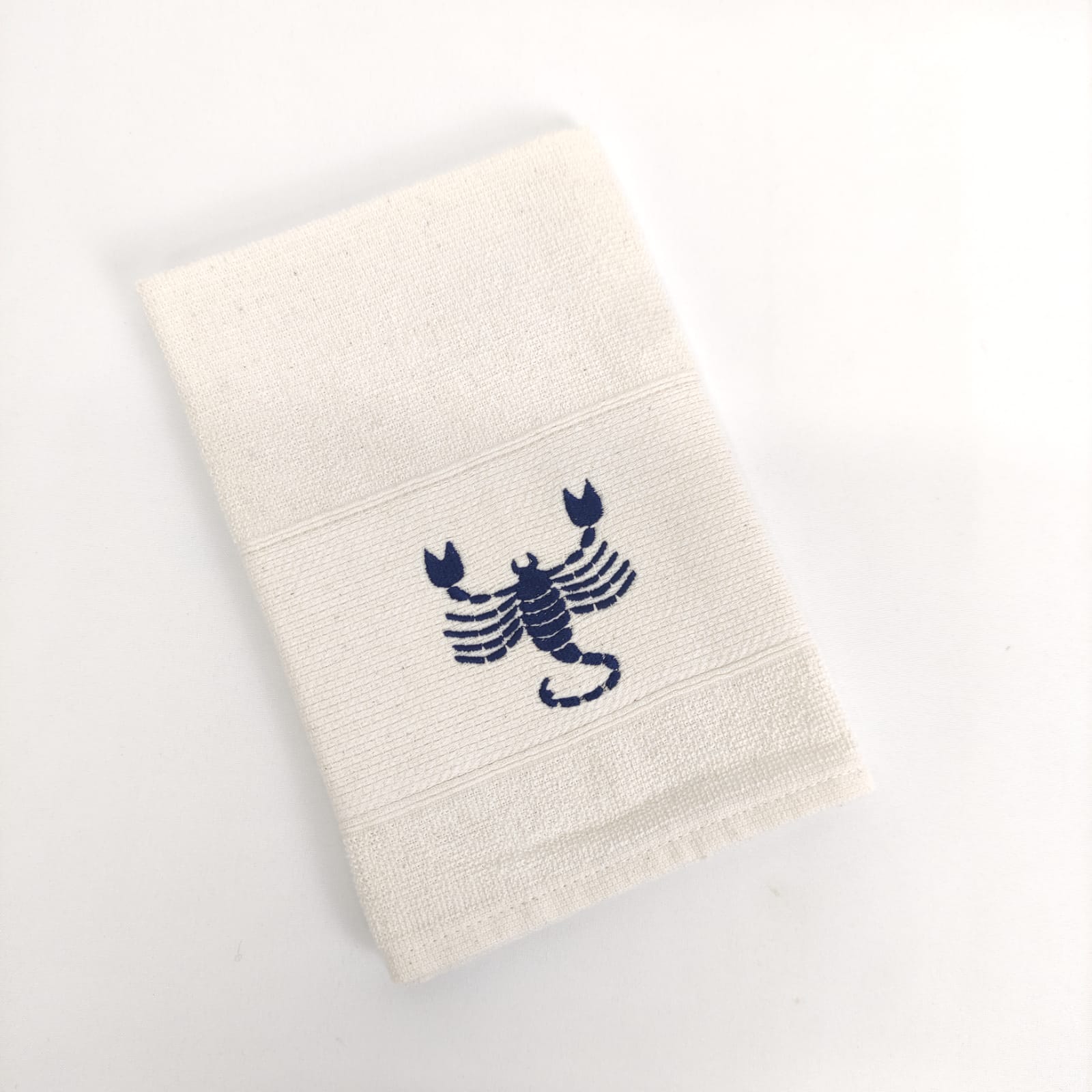 Pano de cozinha em felpo de algodão branco ou bege com bordado dos diferentes signos do horóscopo.