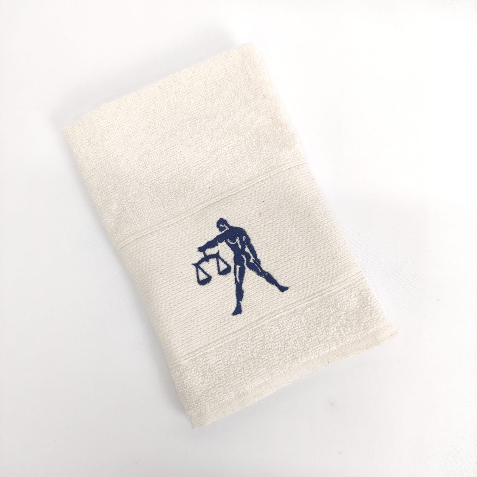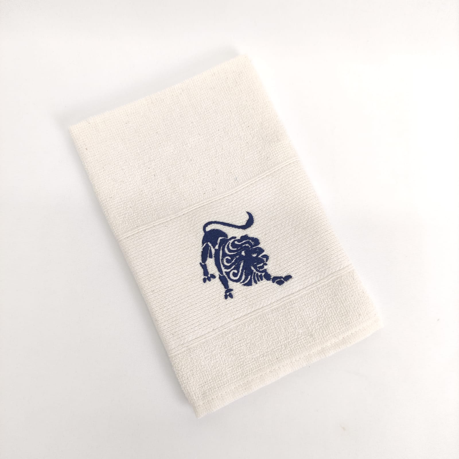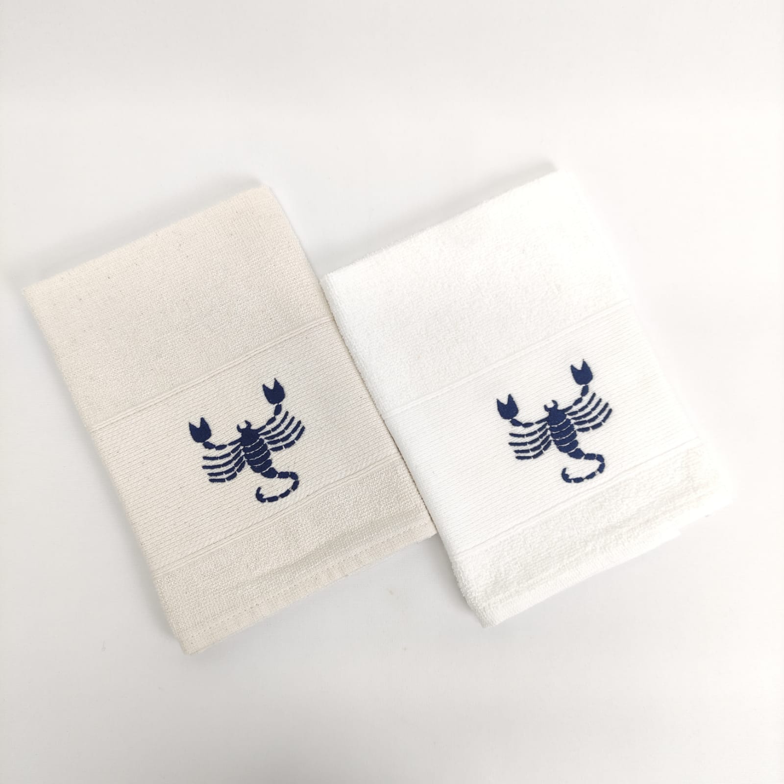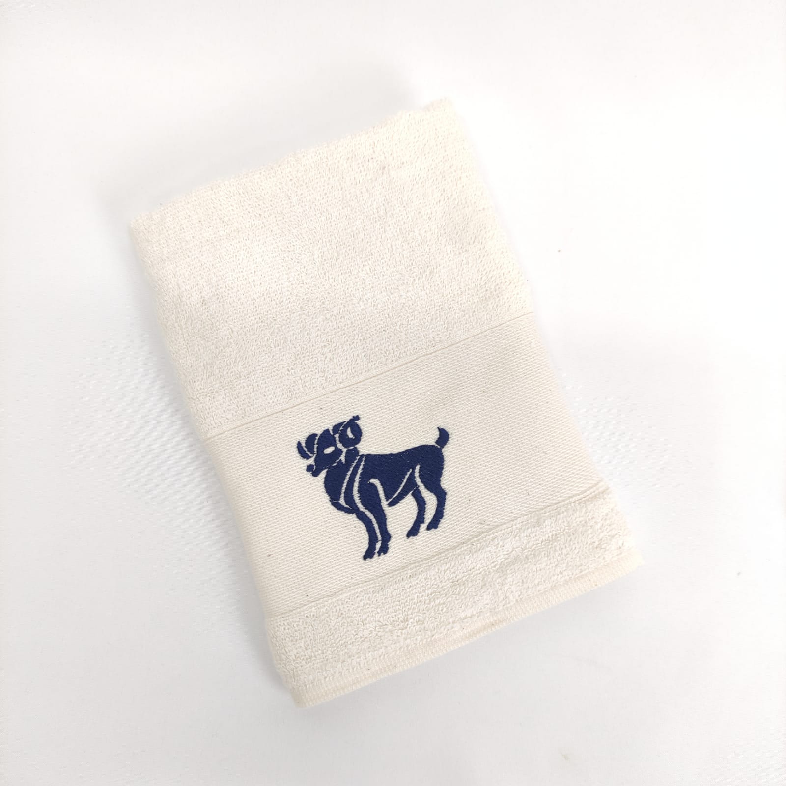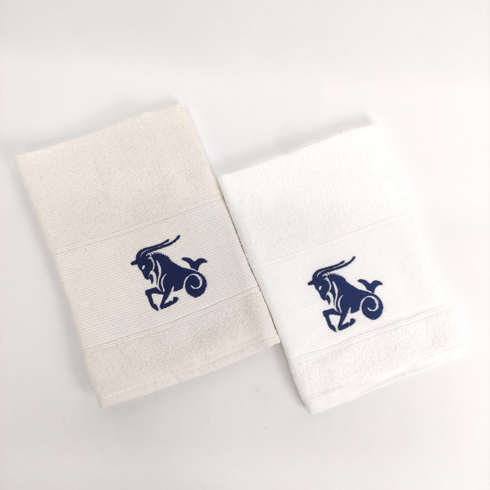 Pano de cozinha em felpo de algodão branco ou bege com bordado dos diferentes signos do horóscopo.