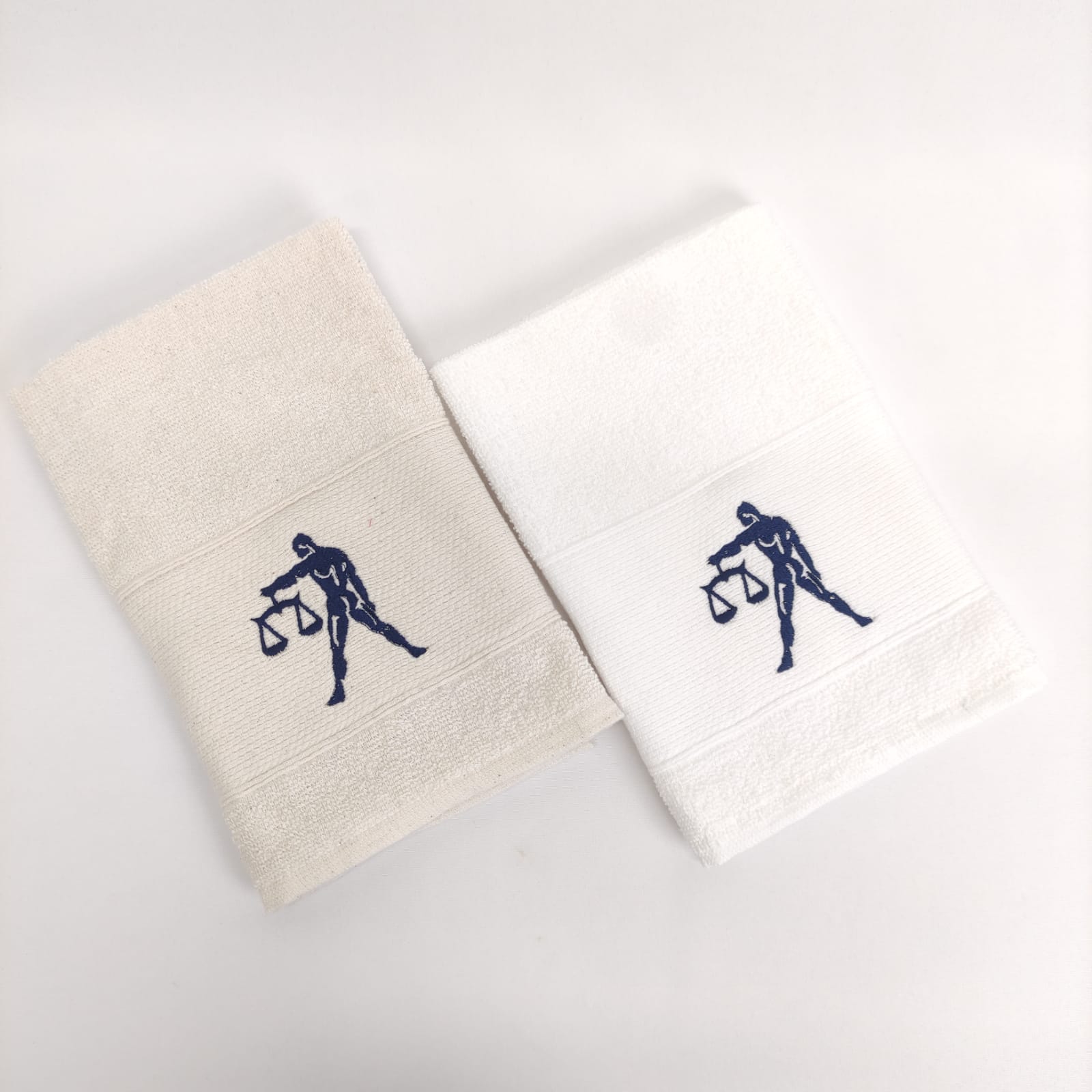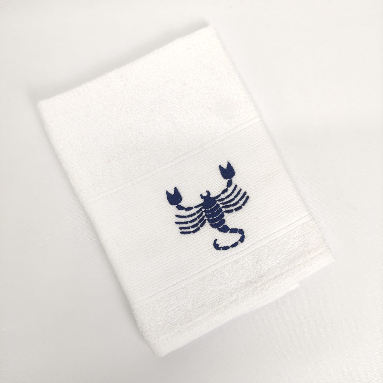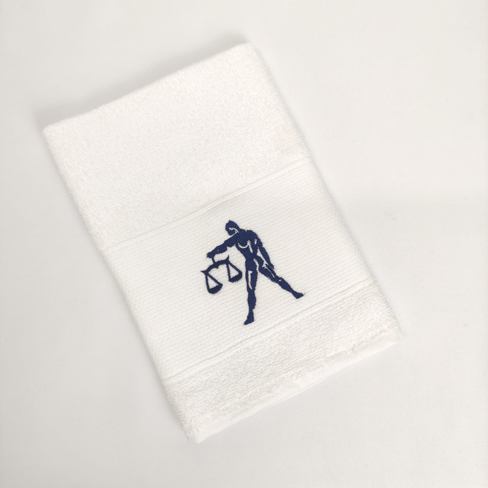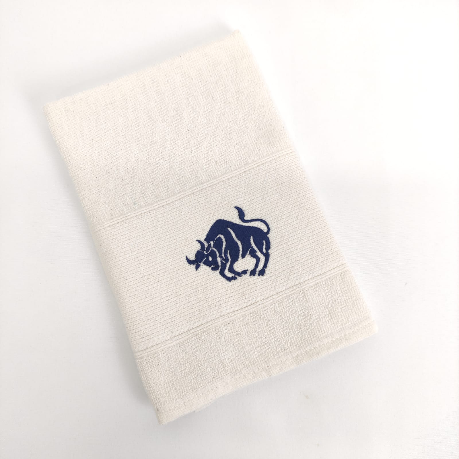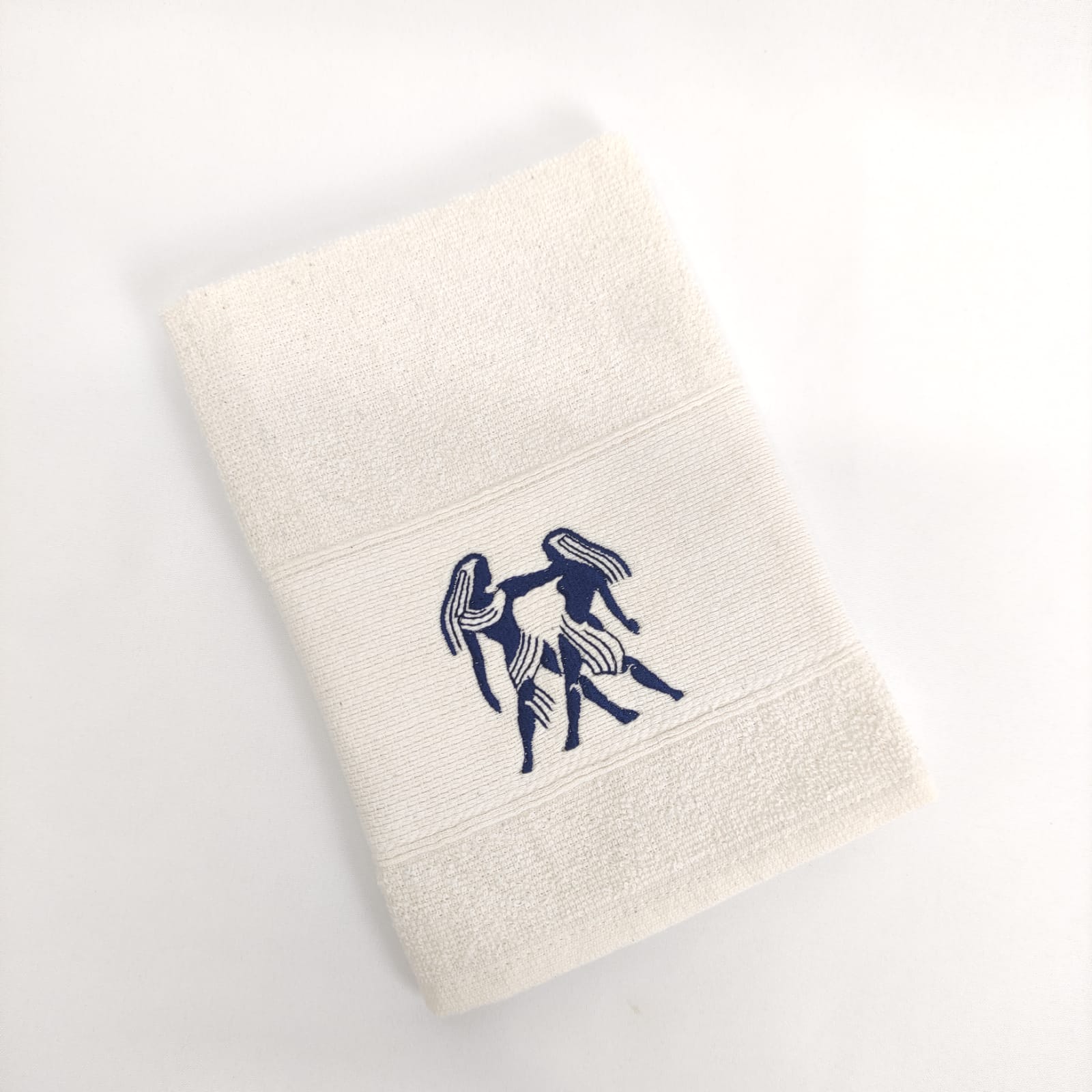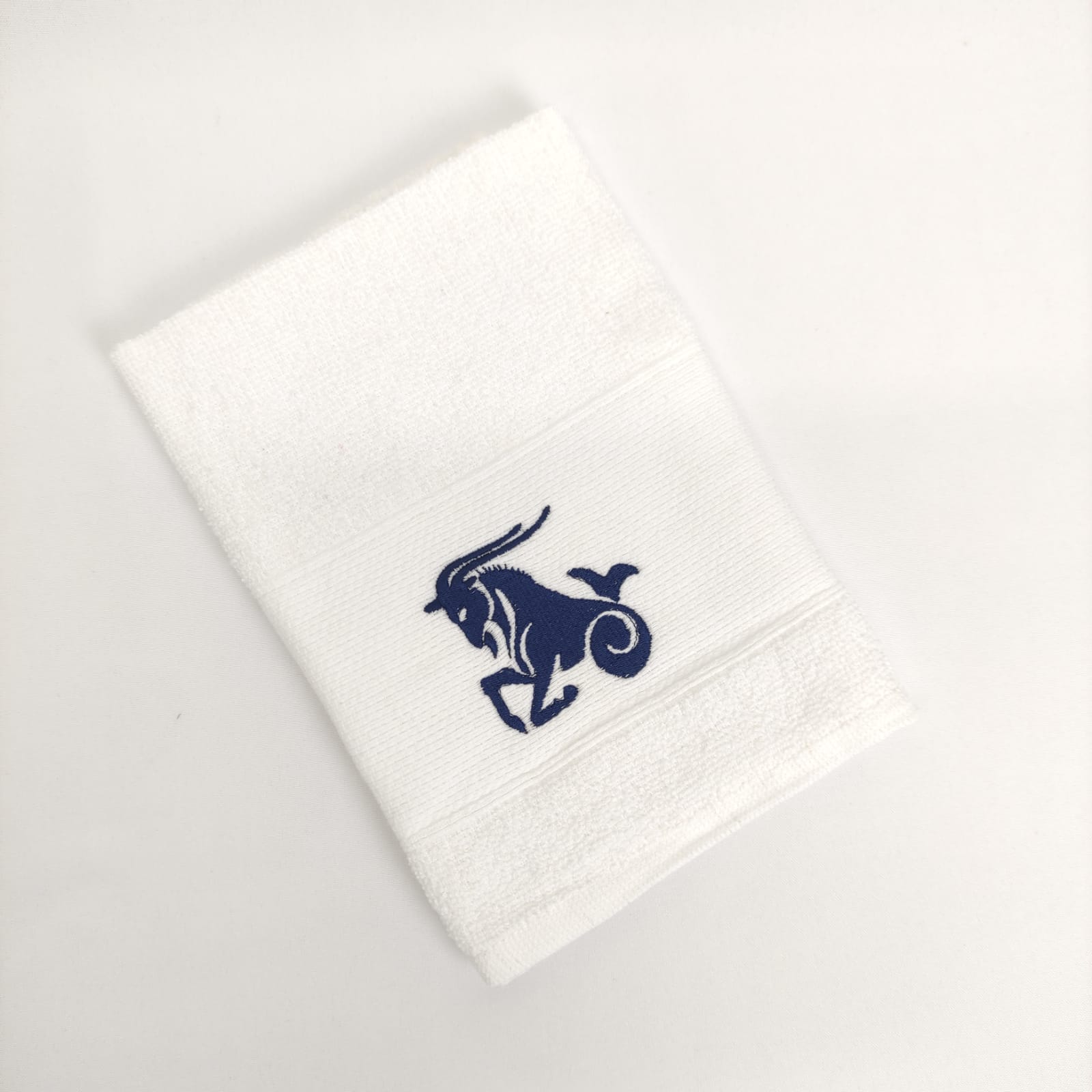 Pano de cozinha em felpo de algodão branco ou bege com bordado dos diferentes signos do horóscopo.
