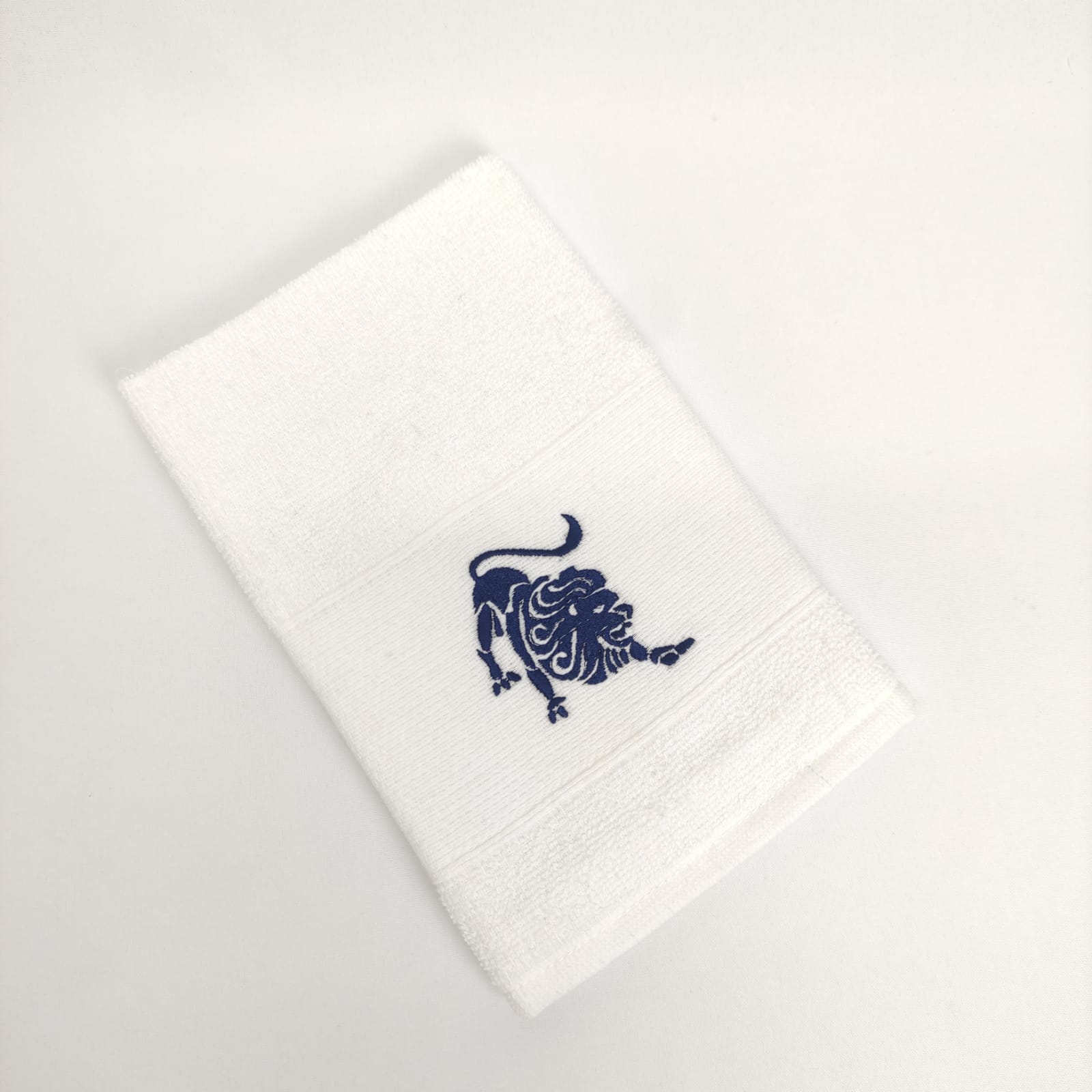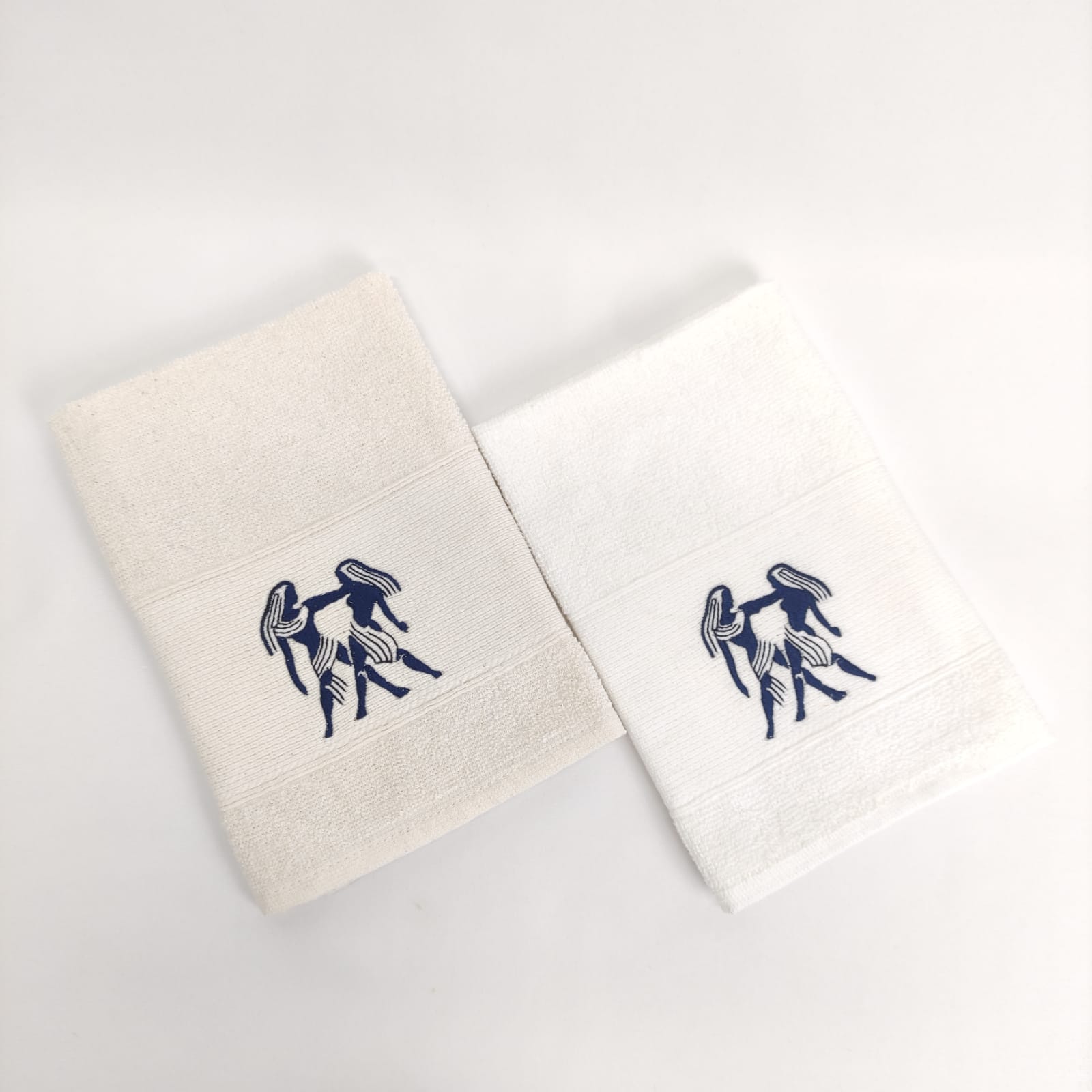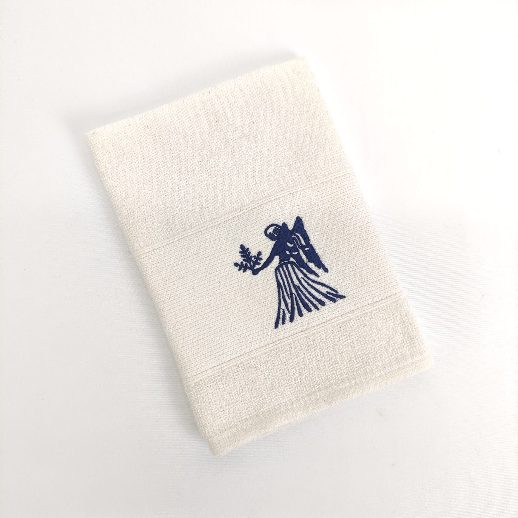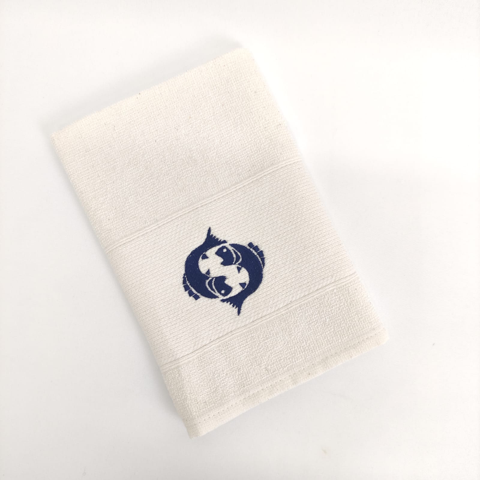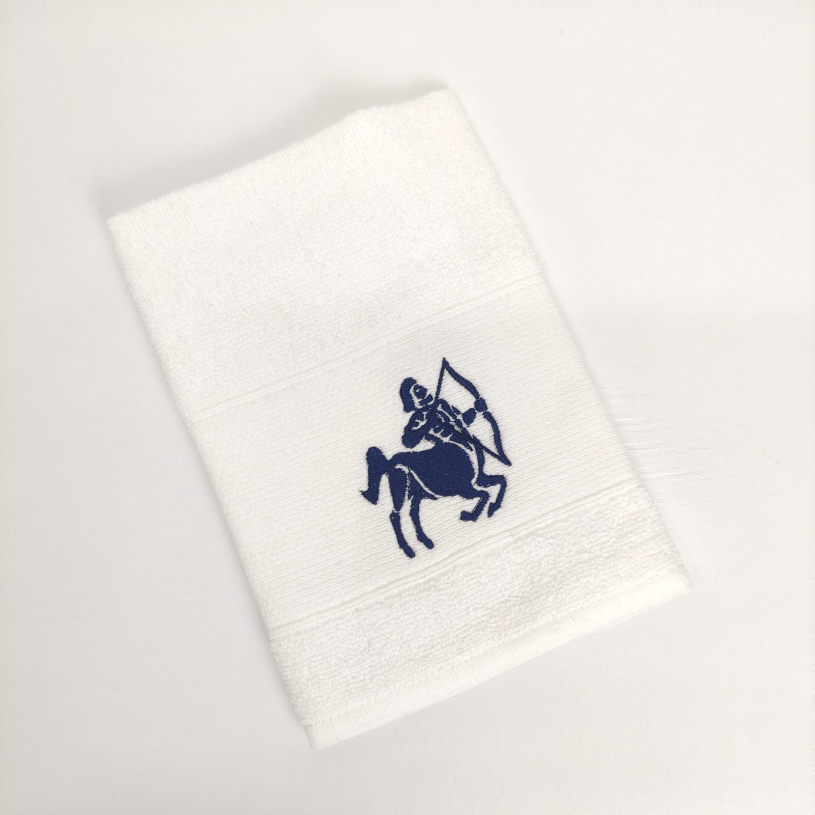 Pano de cozinha em felpo de algodão branco ou bege com bordado dos diferentes signos do horóscopo.