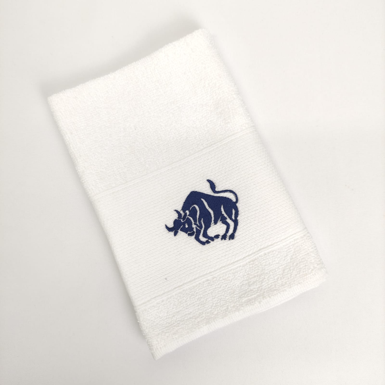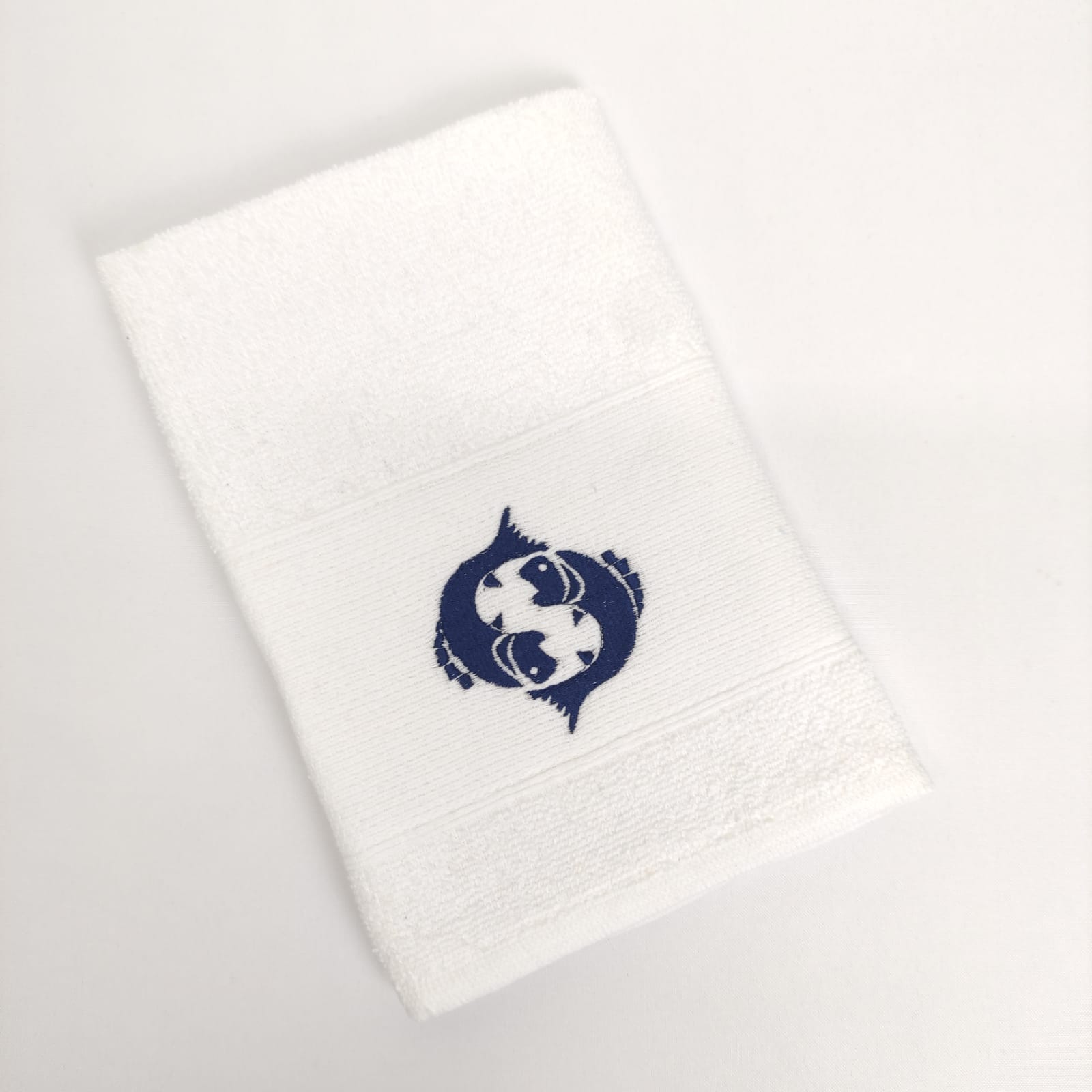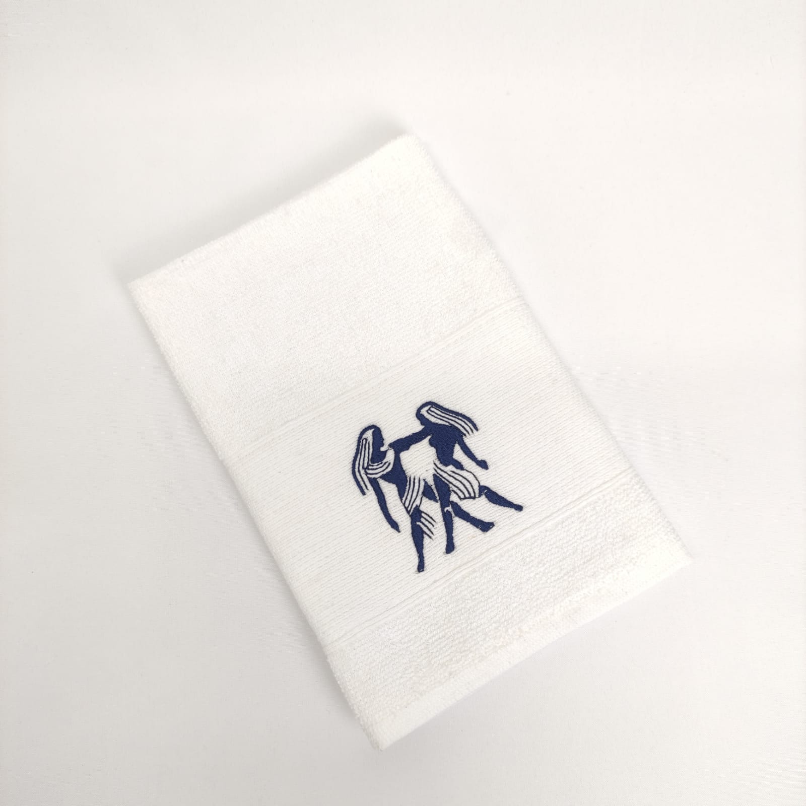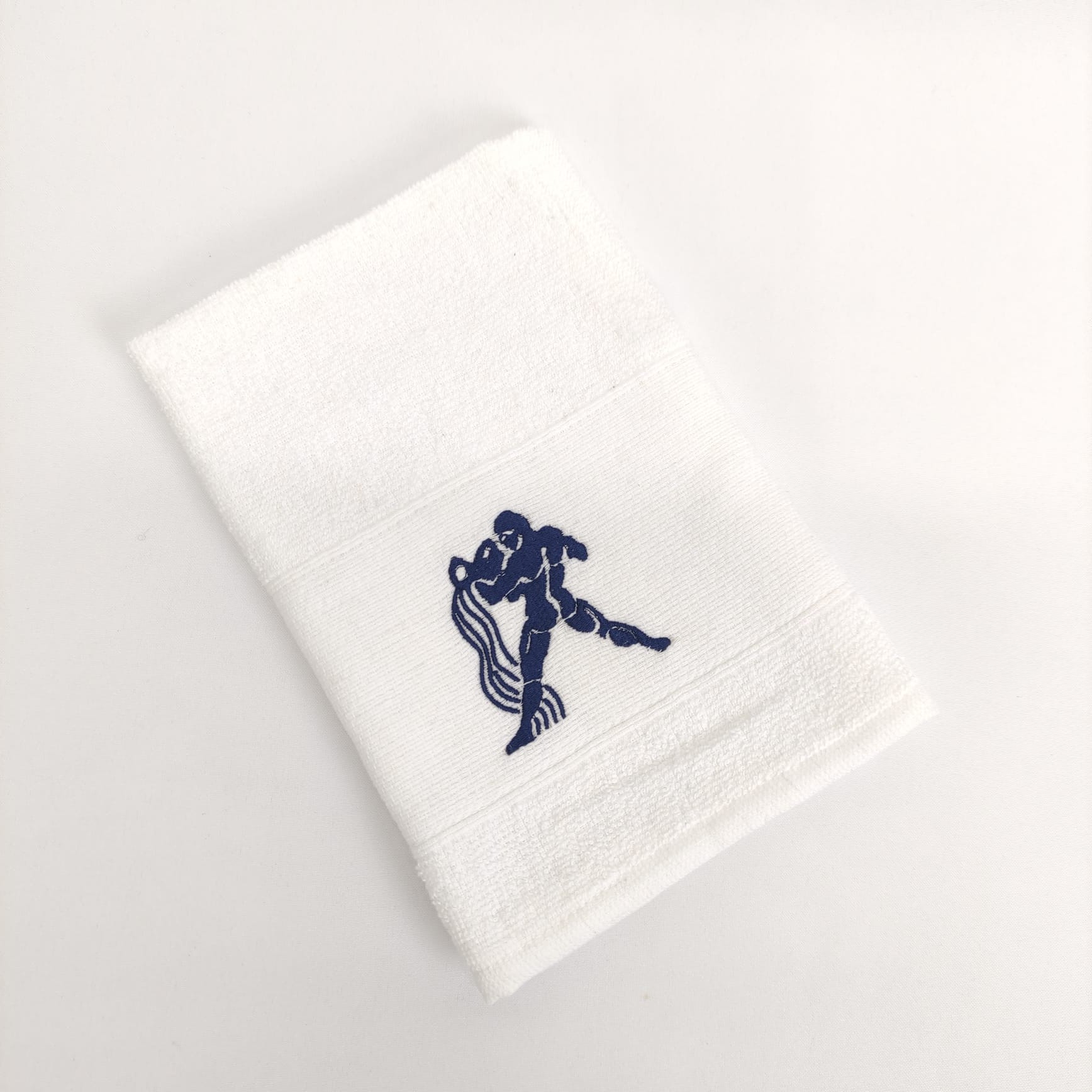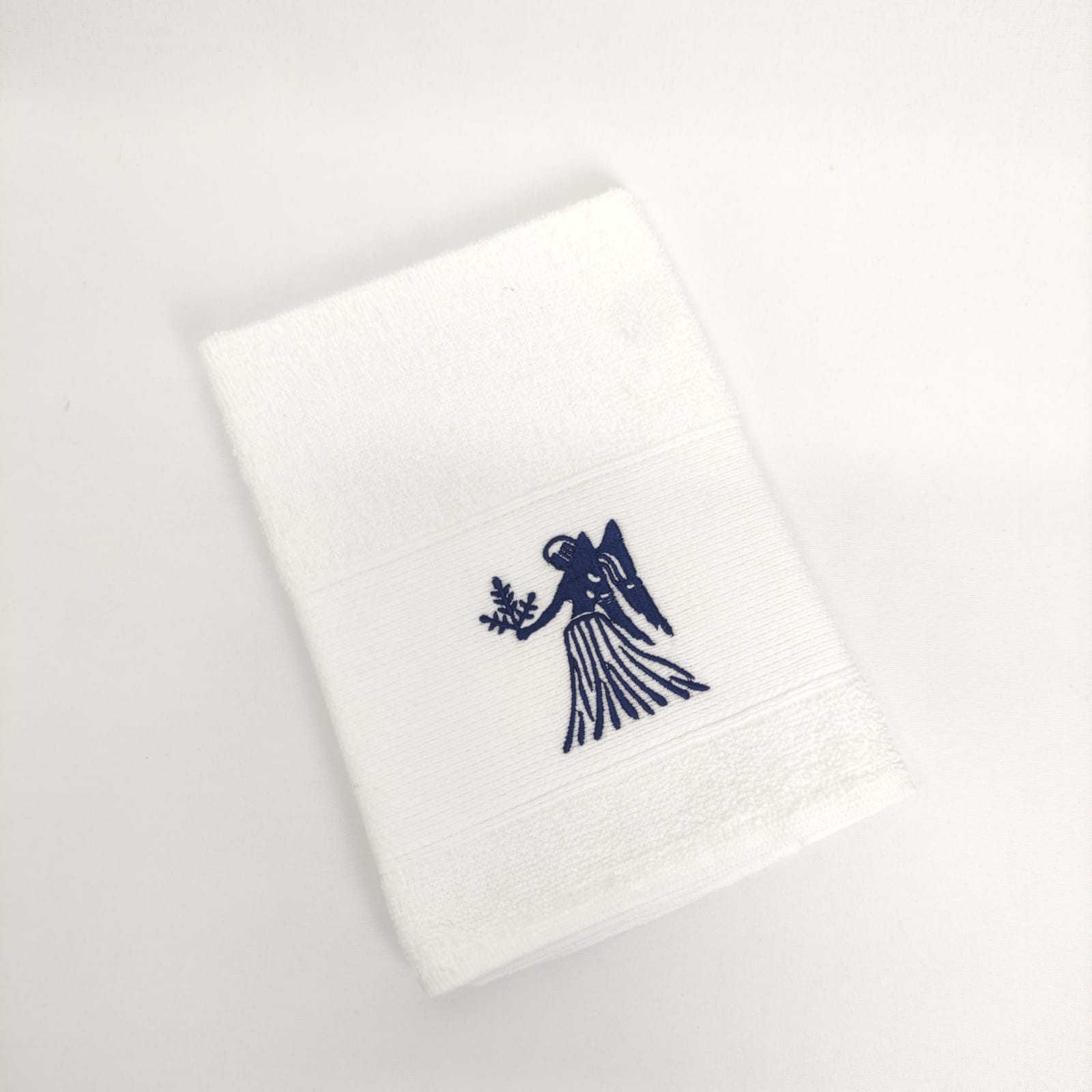 Pano de cozinha em felpo de algodão branco ou bege com bordado dos diferentes signos do horóscopo.