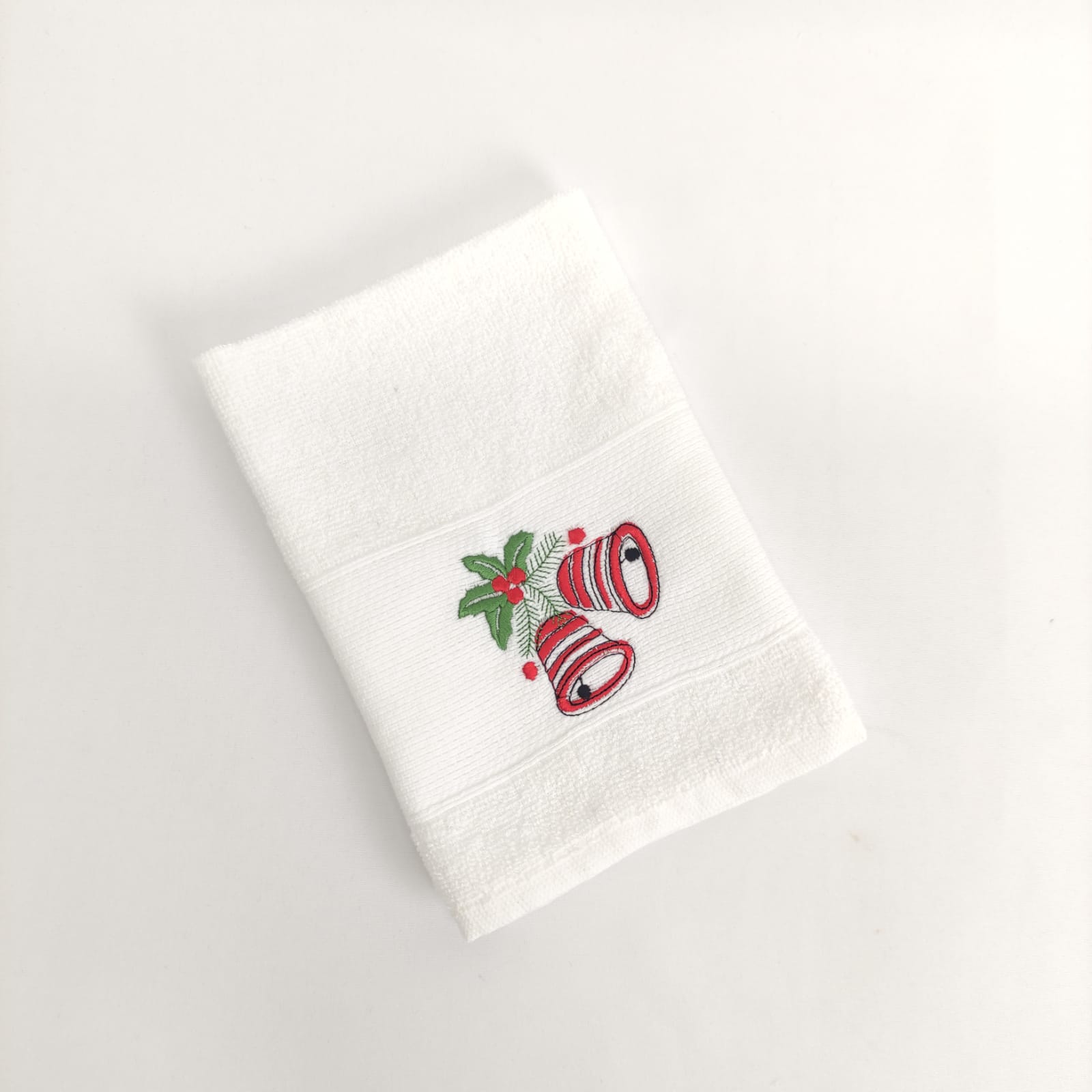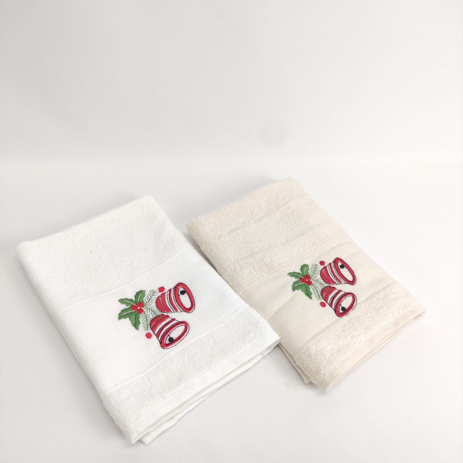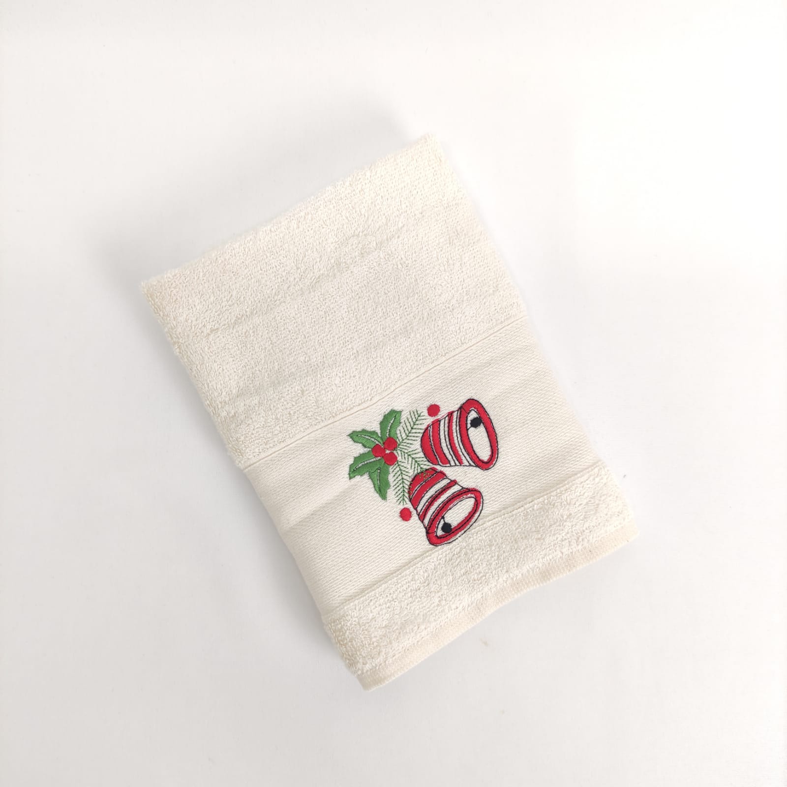 Pano de cozinha em felpo de algodão branco ou bege com bordado natalício.