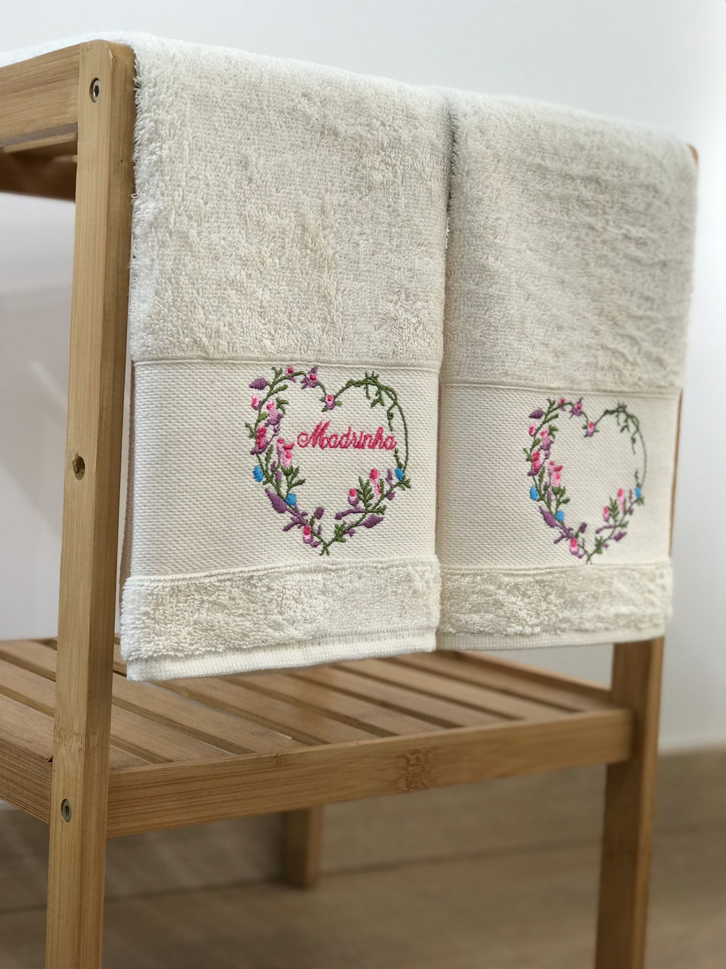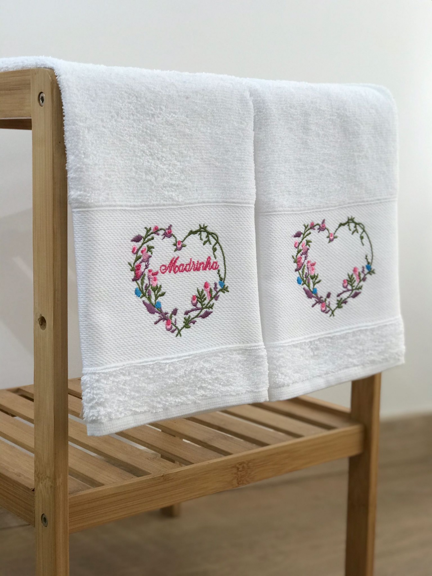 Panos de cozinha bordado Madrinha e Coração.