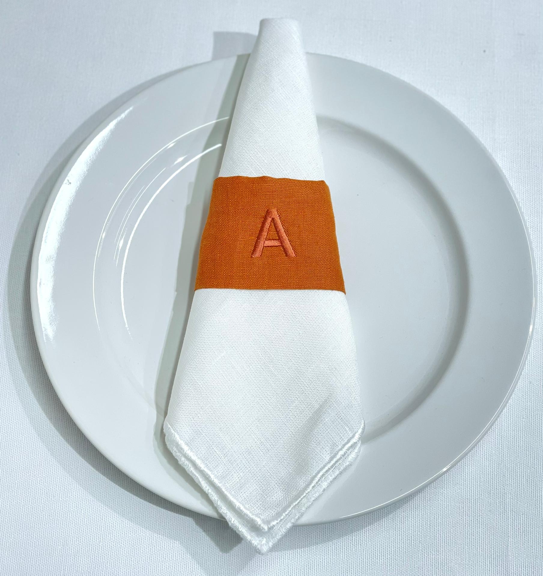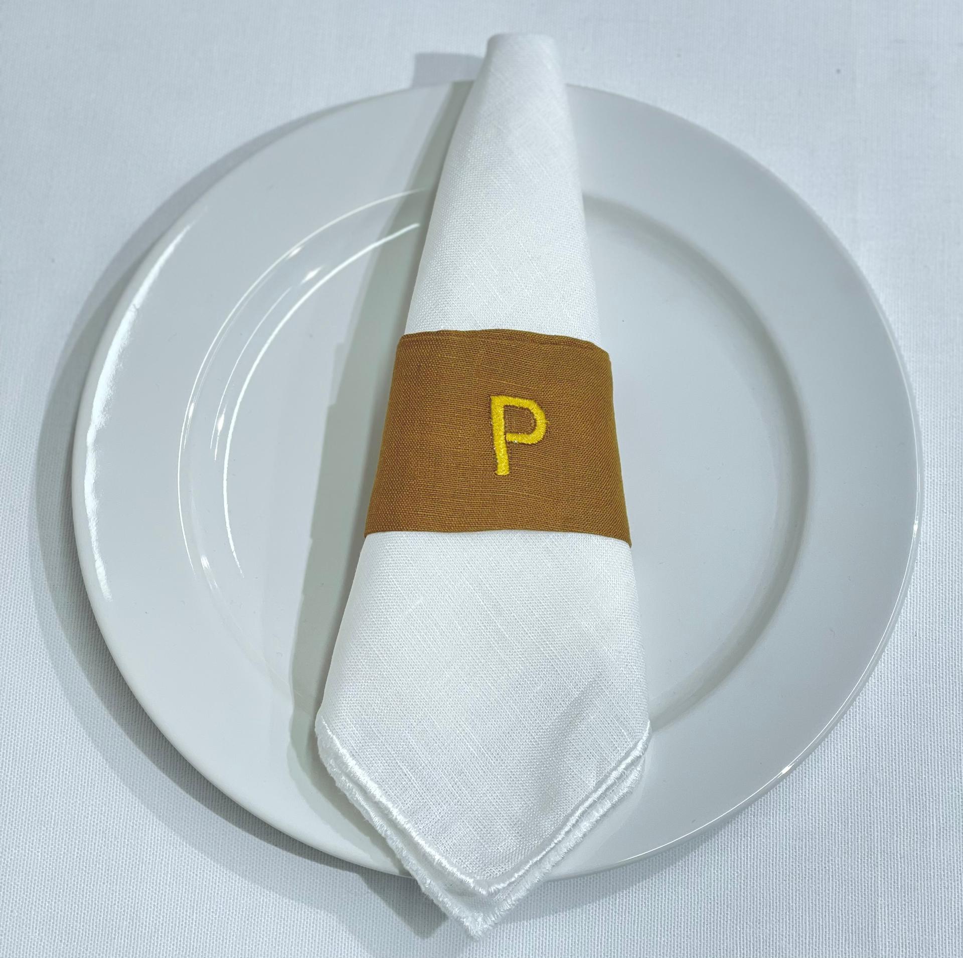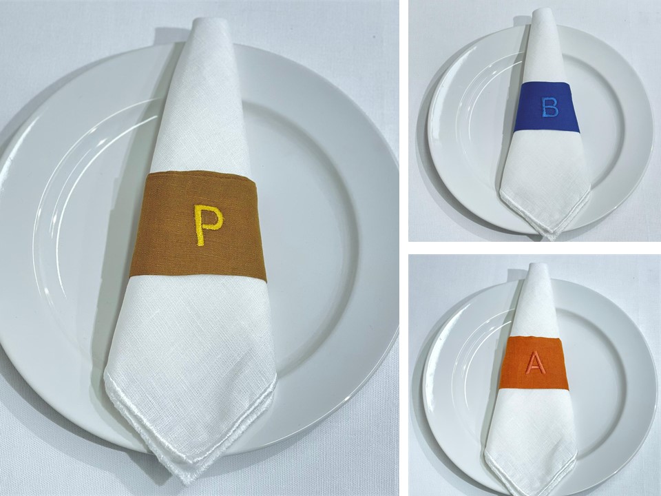 Porta Guardanapos em linho com bordado de letra.