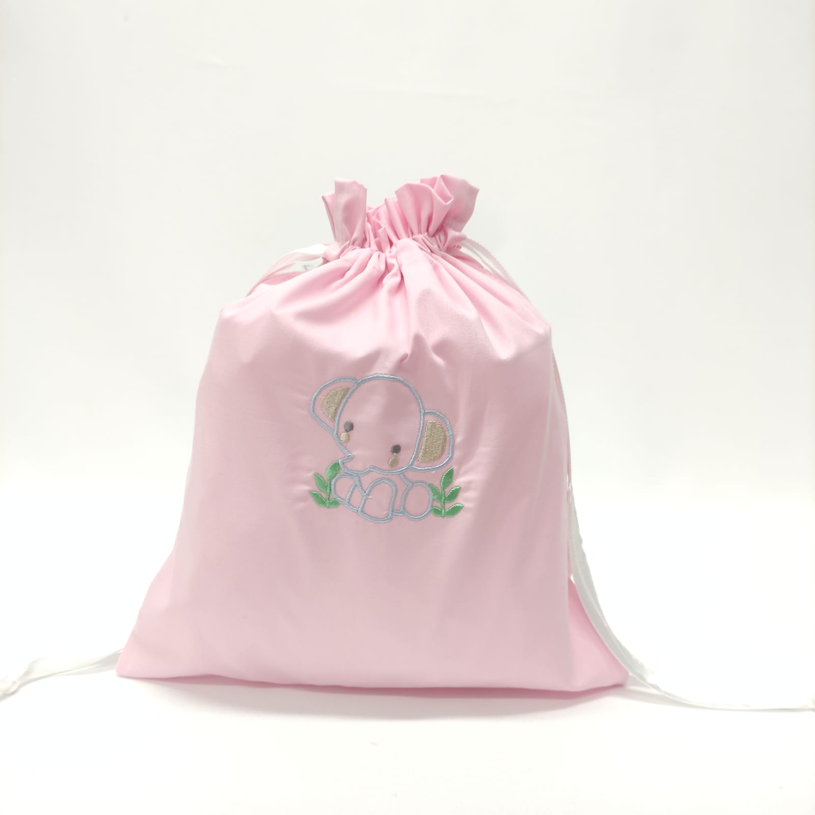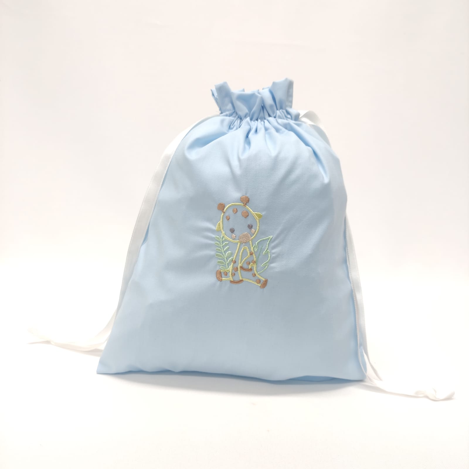 Saco em algodão, com bordado infantil, ideal para transportar os bens pessoais do seu bebé. Disponível em várias cores e com diferentes bordados