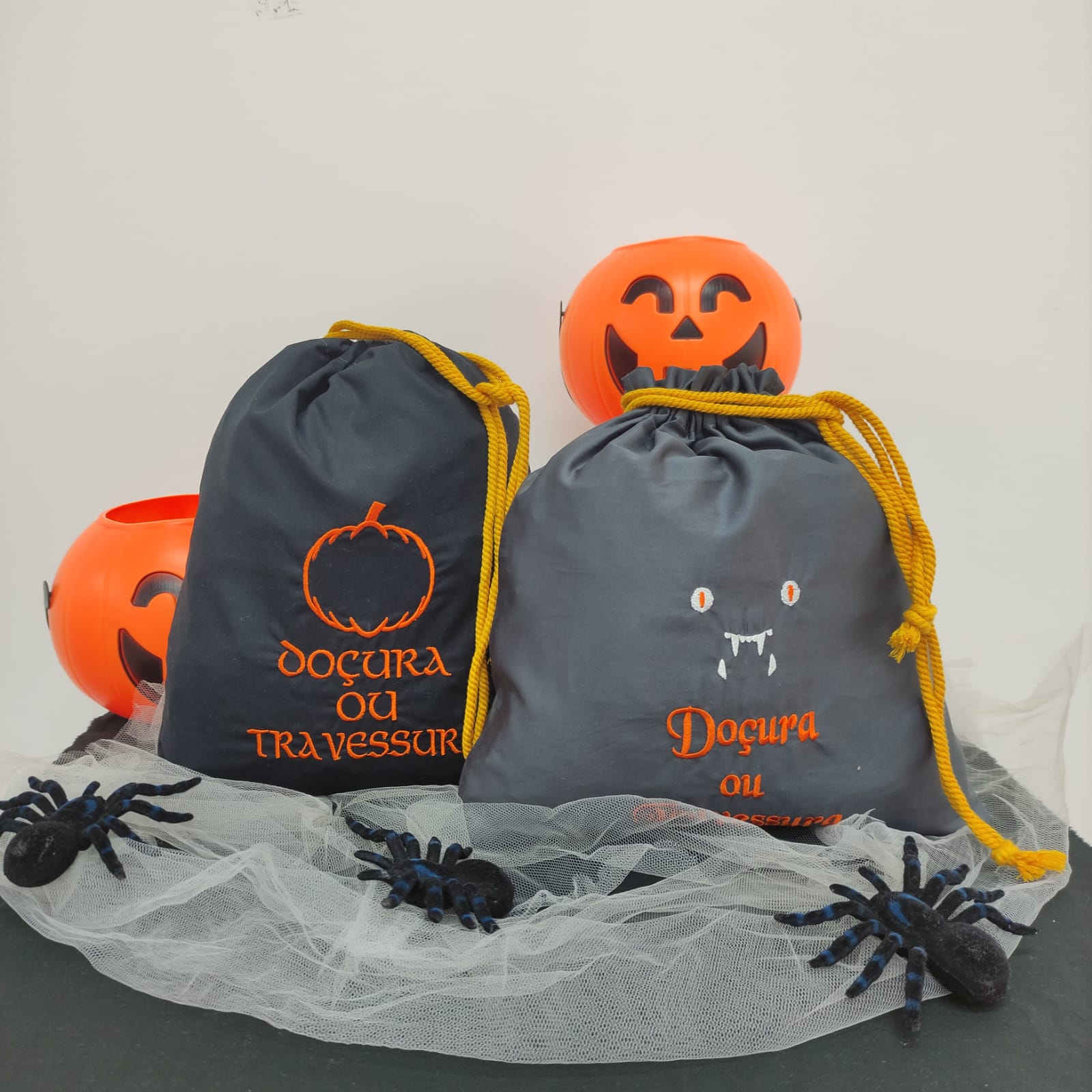 Saco Halloween, fabricado em tecido reutilizável de alta qualidade para uma estabilidade e durabilidade maior.