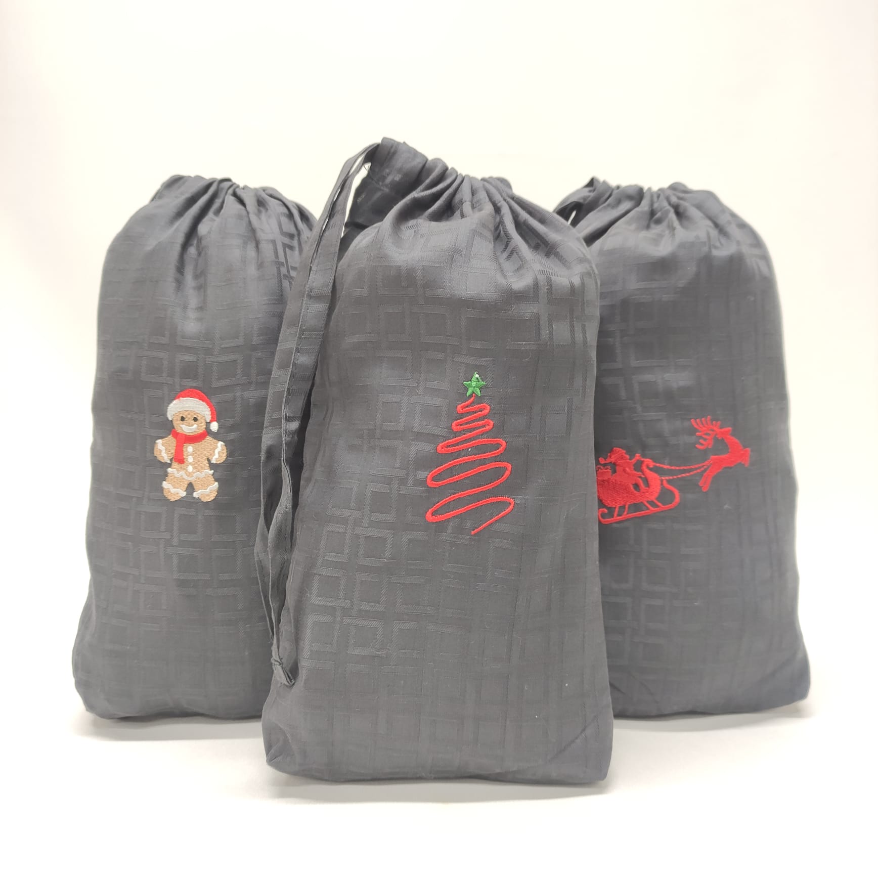 Os nossos Sacos Presente com bordado natalício, são perfeitos para embalar com muito carinho os presentes especiais que escolheu para oferecer nesta época mágica.