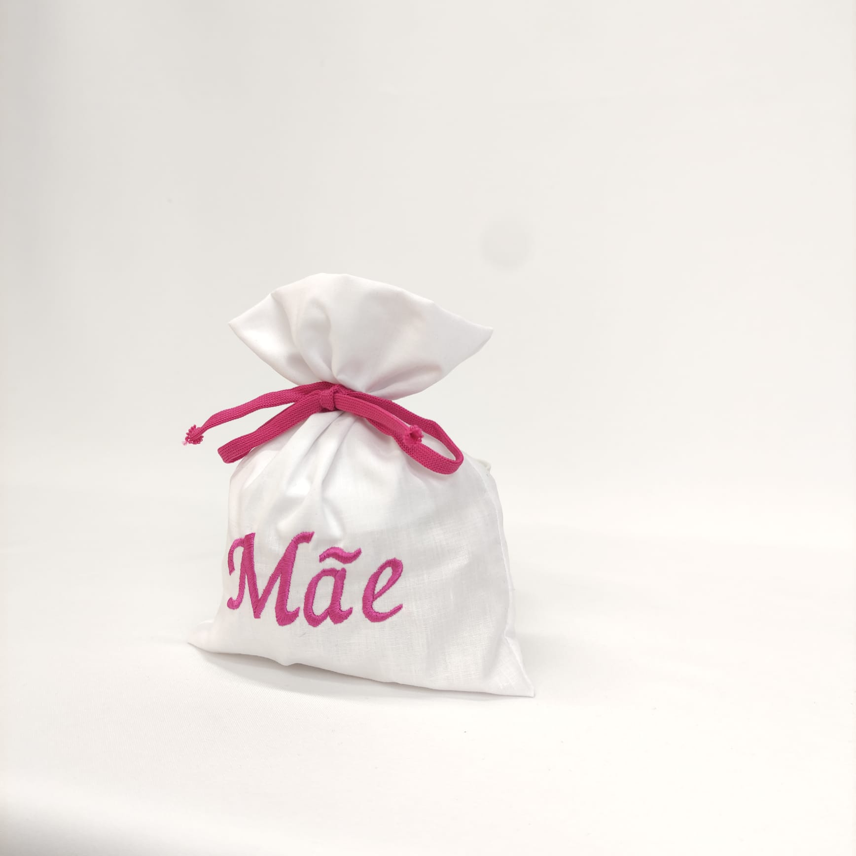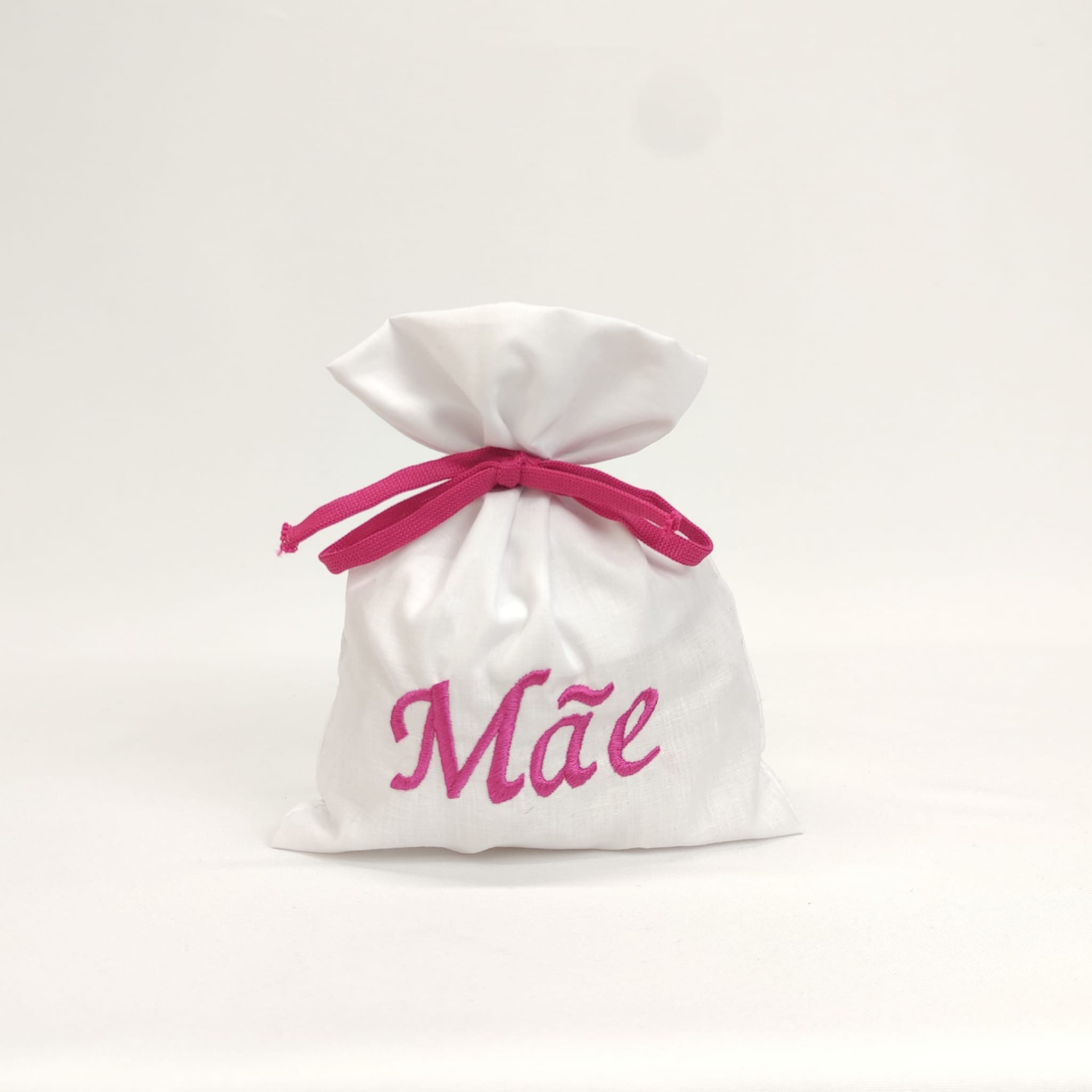 Saco algodão branco, com nome bordado mãe . Ideal para colocação de presente.