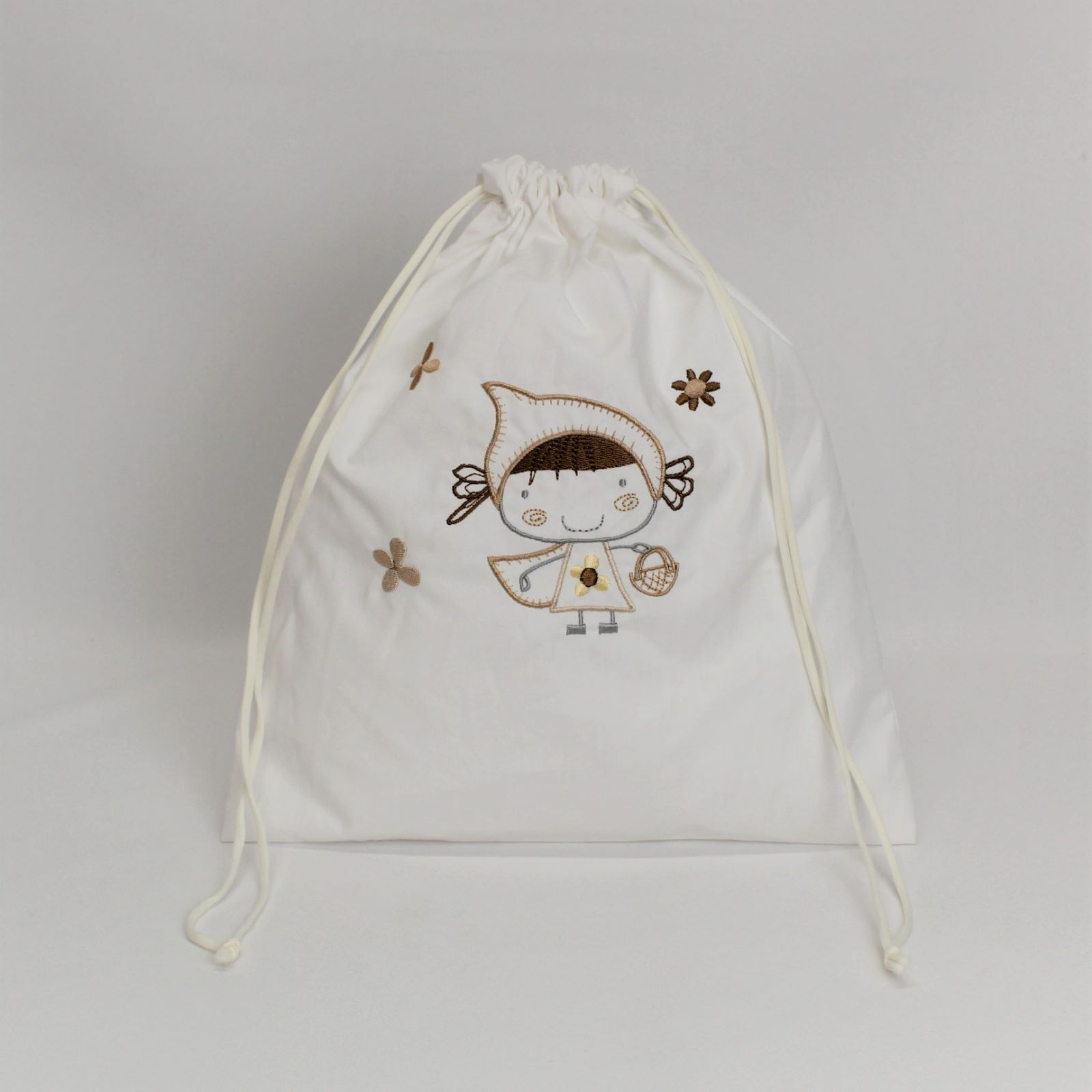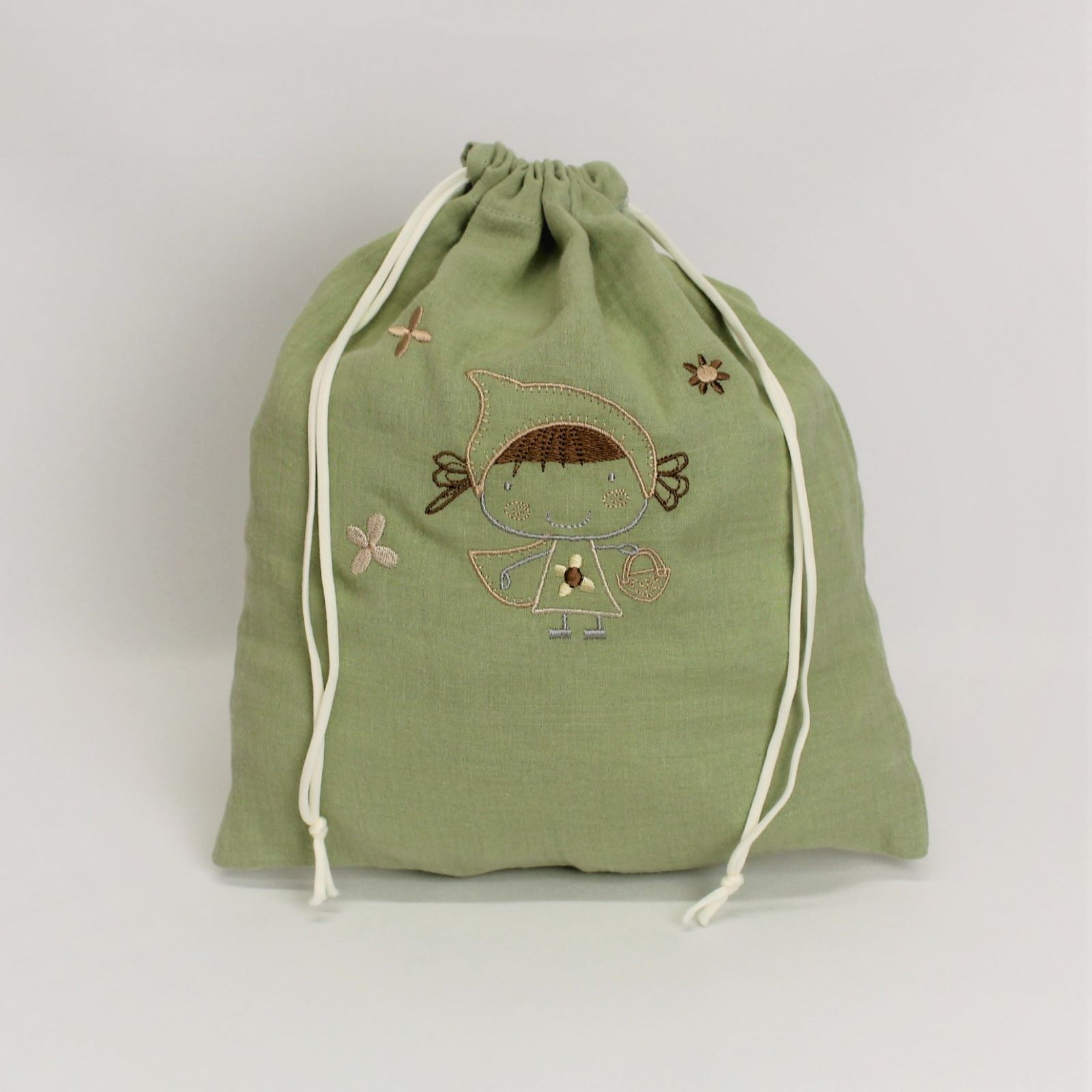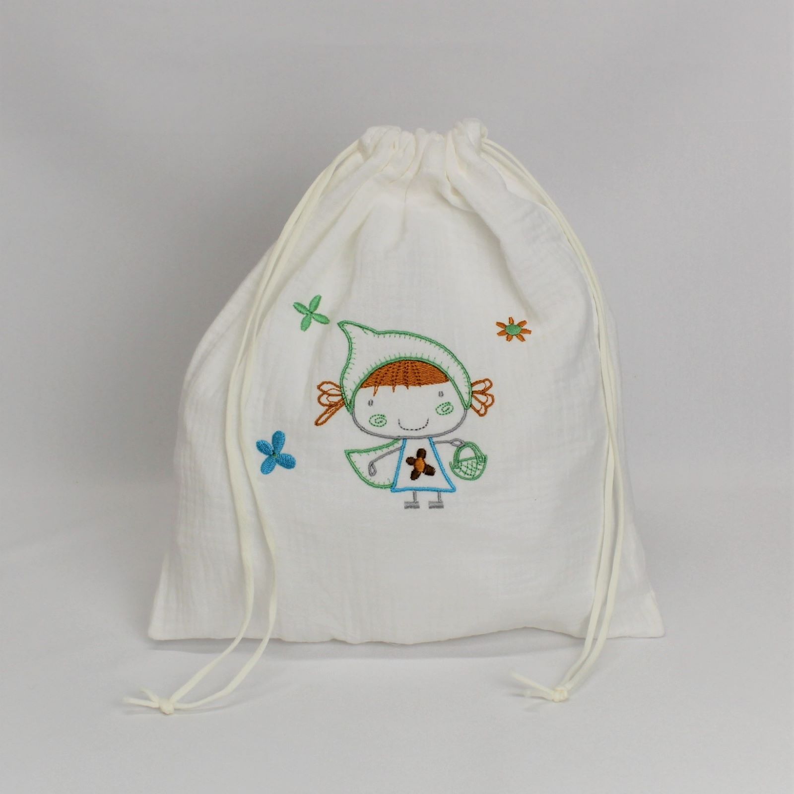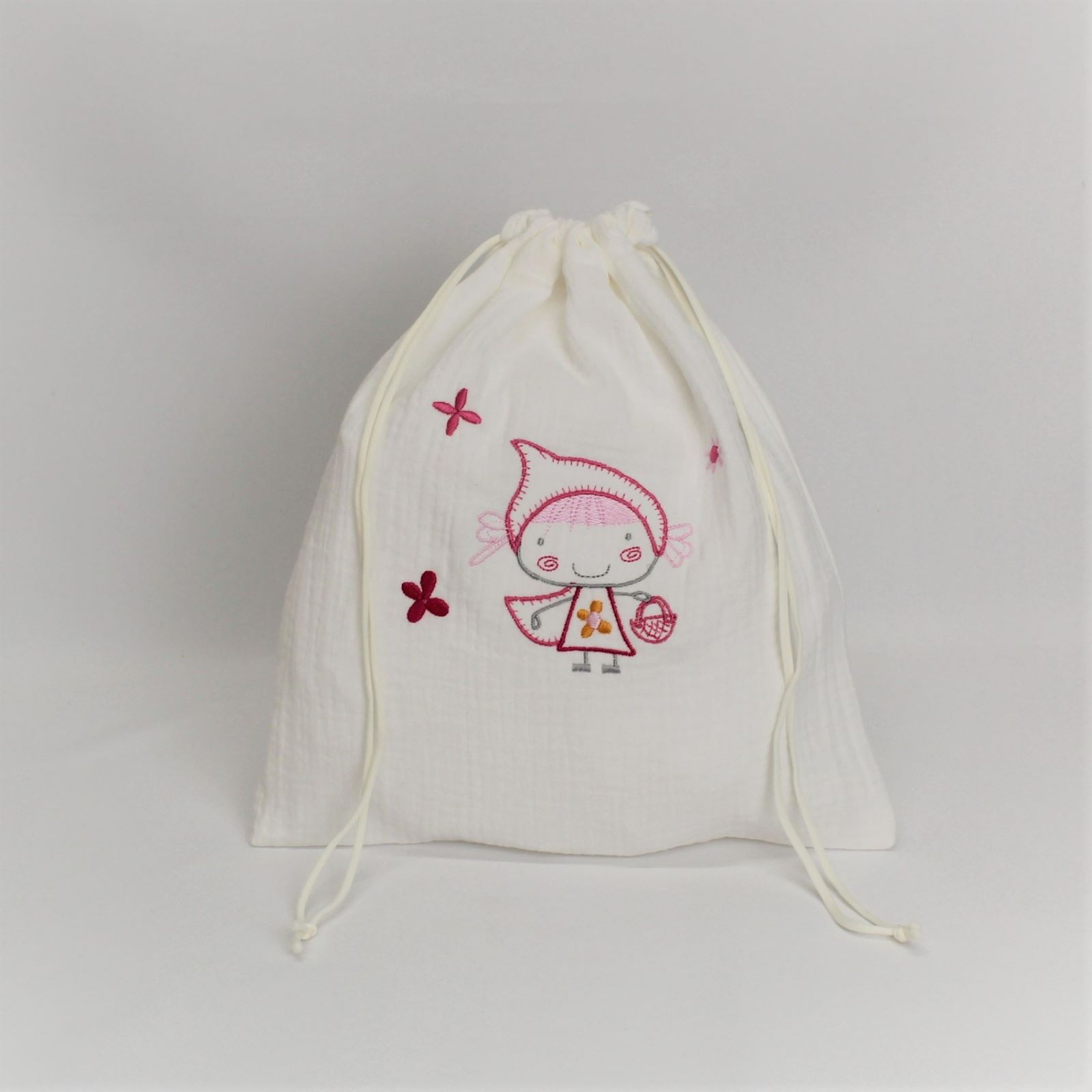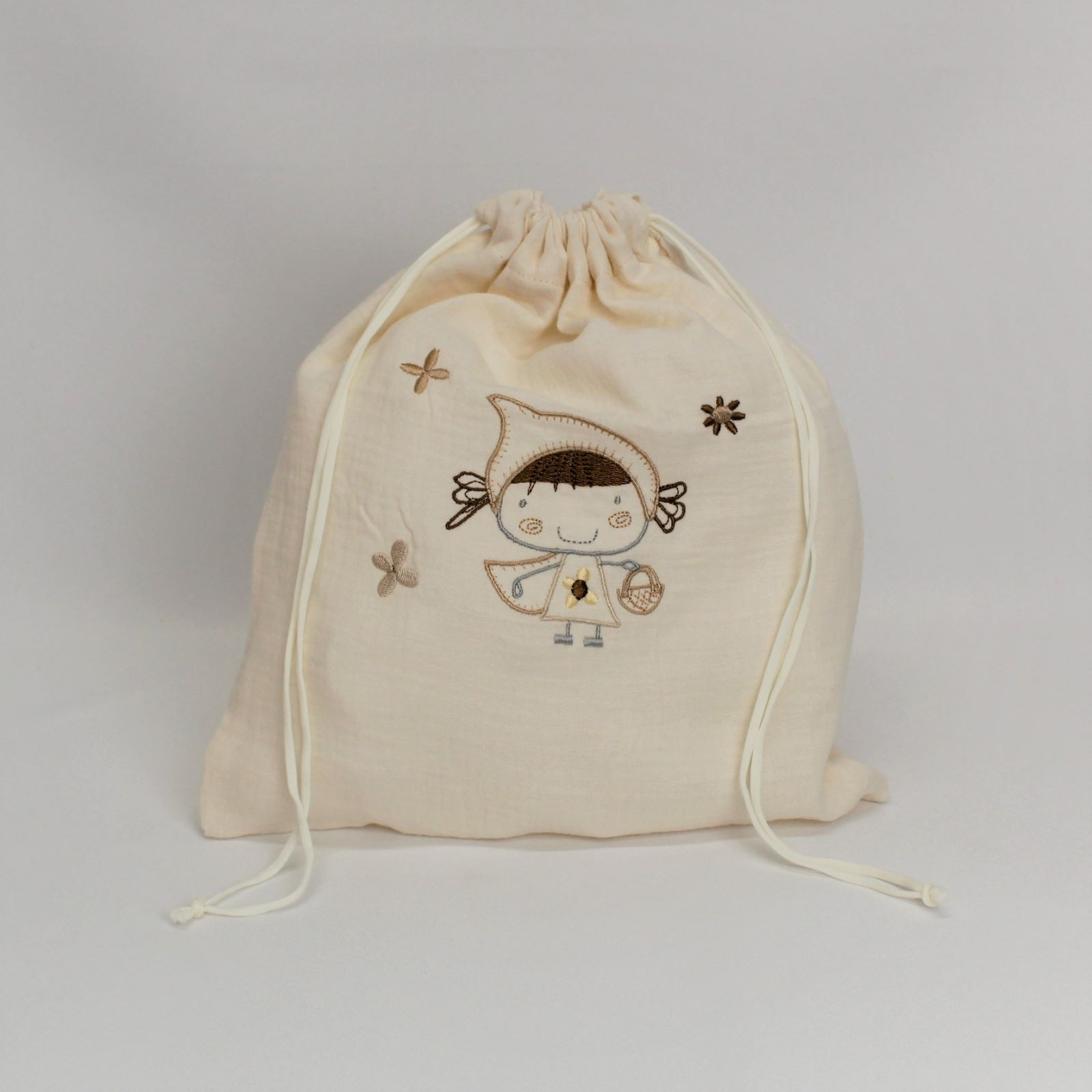 Saco em tecido de algodão ou musselina com fecho de cordão. Ideal para usá-lo como cesto de roupa suspensa, como acessório de armazenamento ou pendurá-lo na casa de banho.