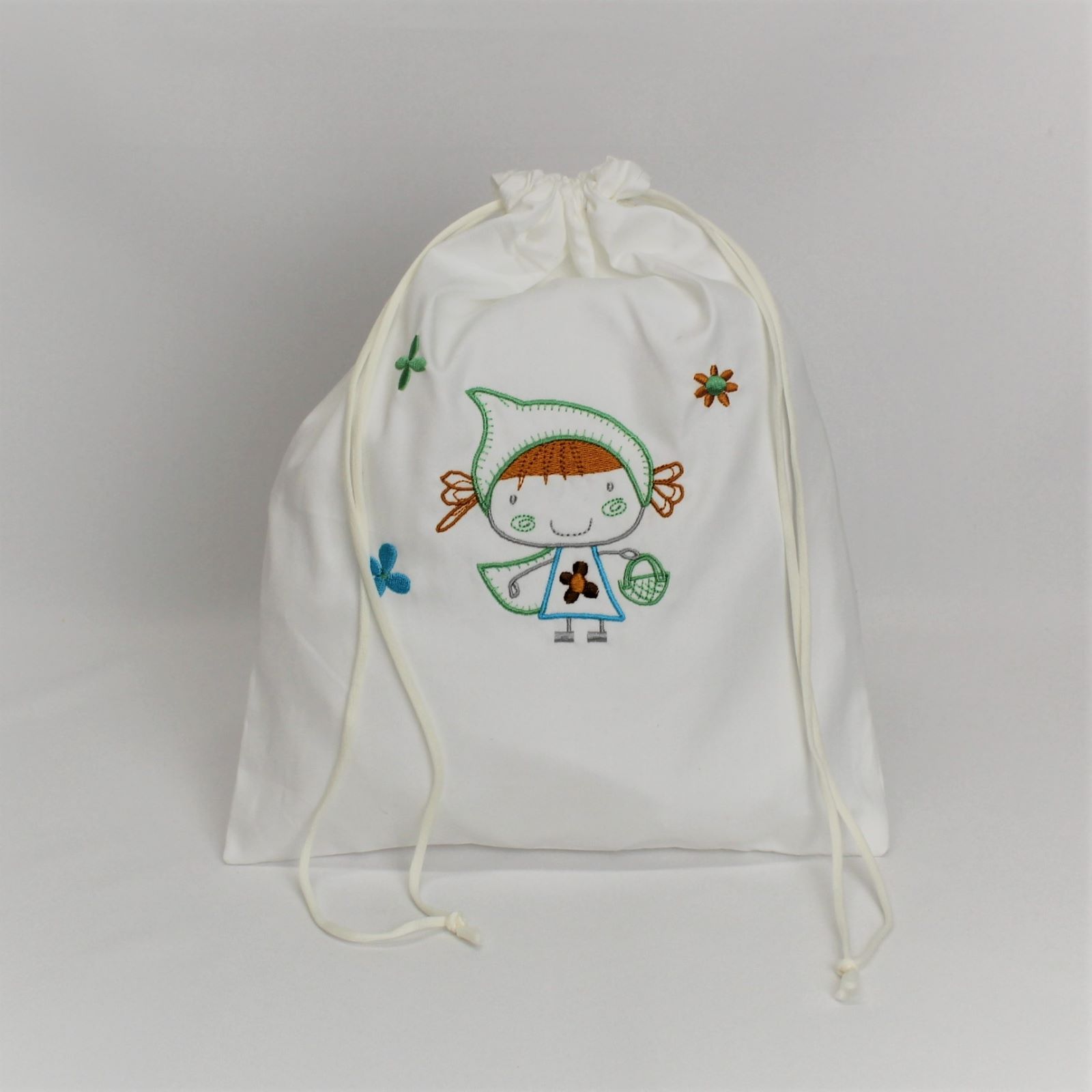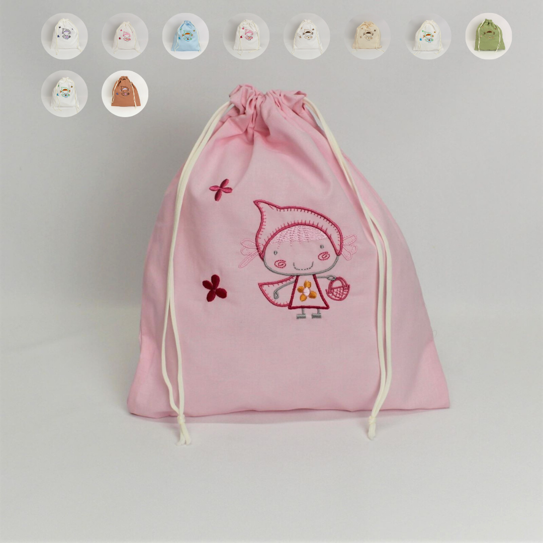 Disponível em várias cores de tecido e bordado.