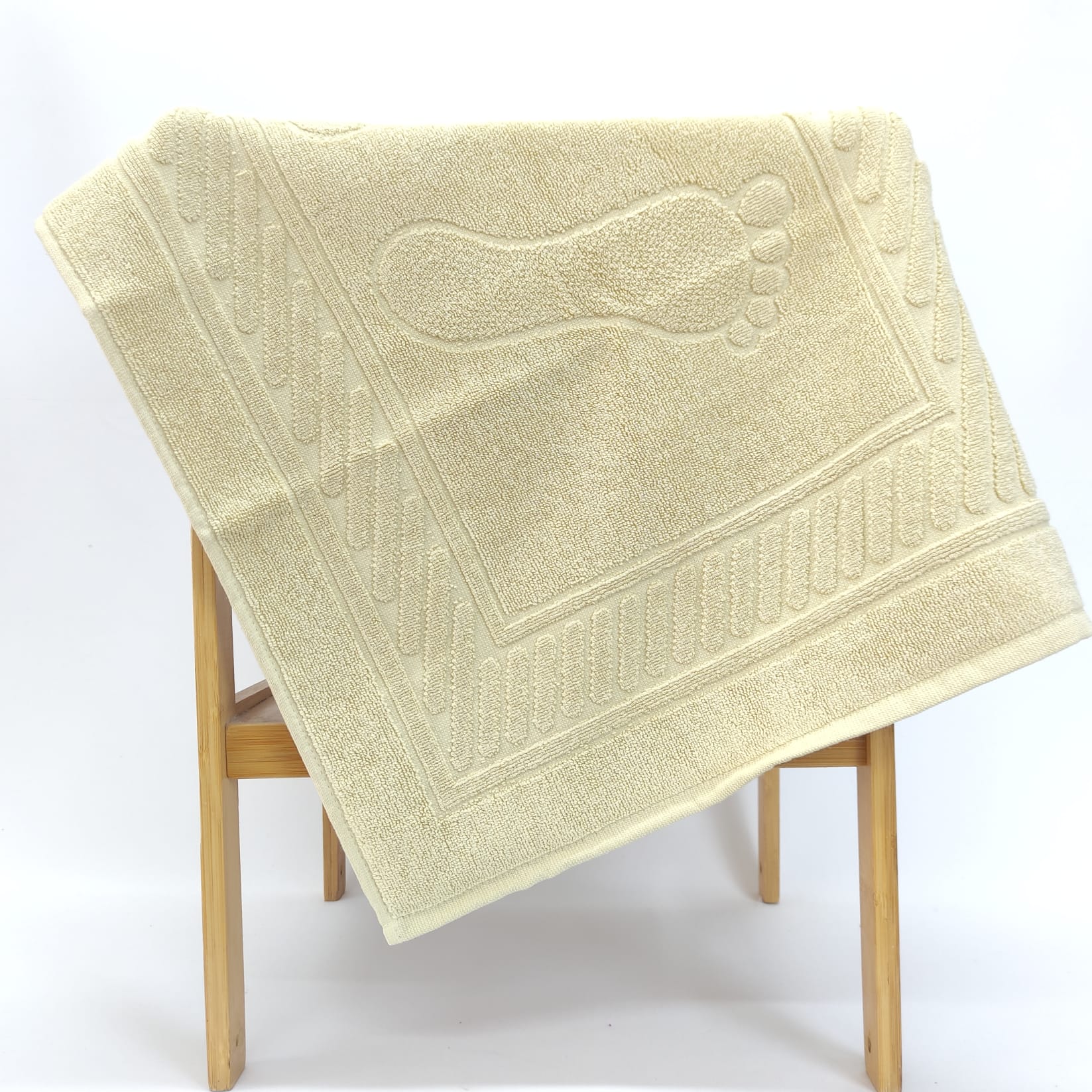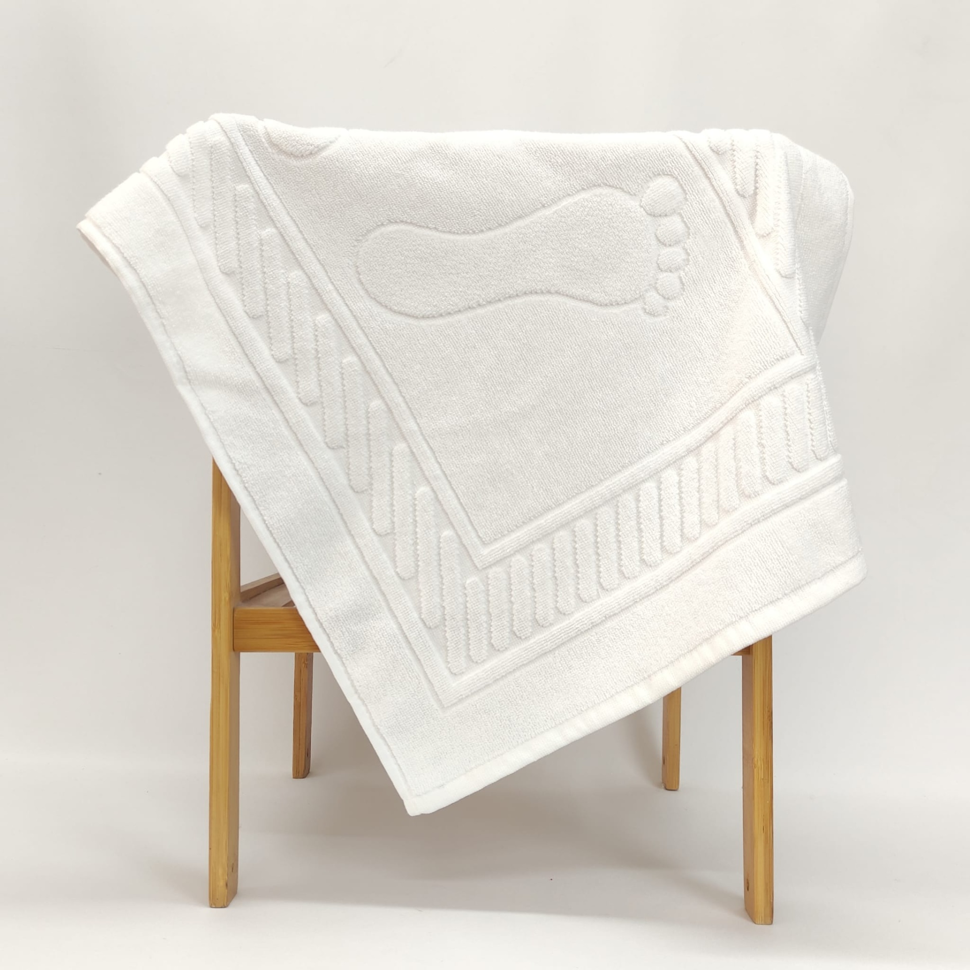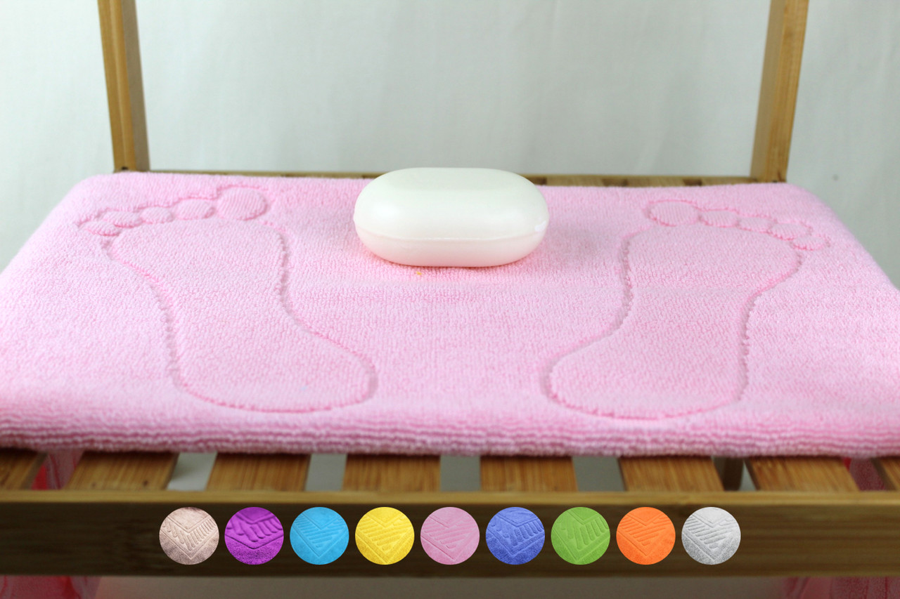 Tapete de banho básico de algodão com relevo de pezinhos.