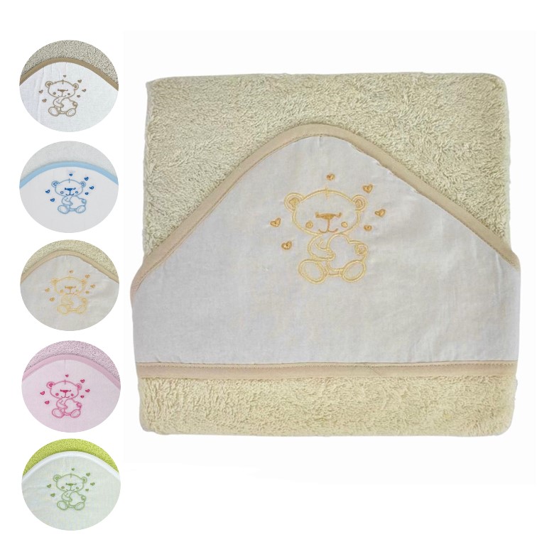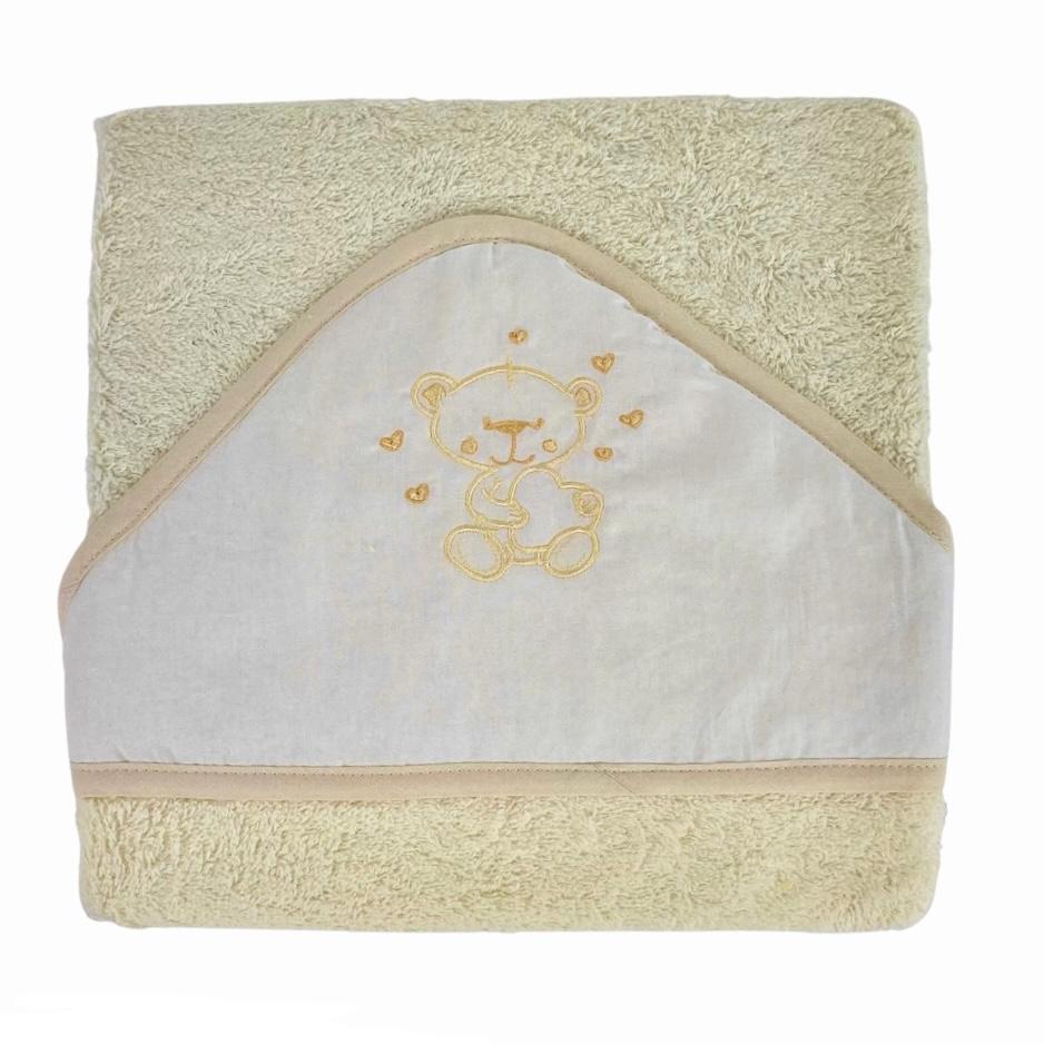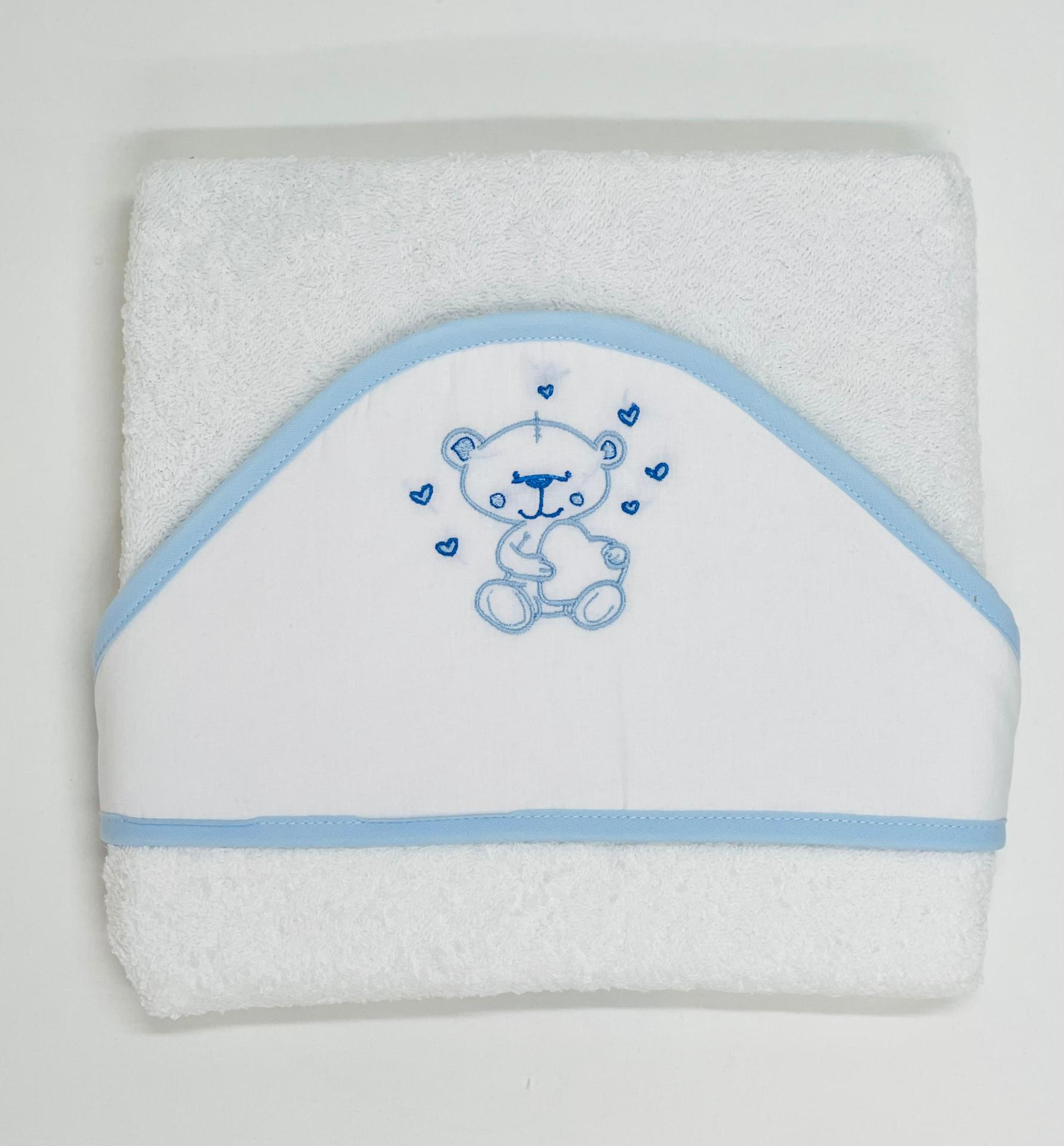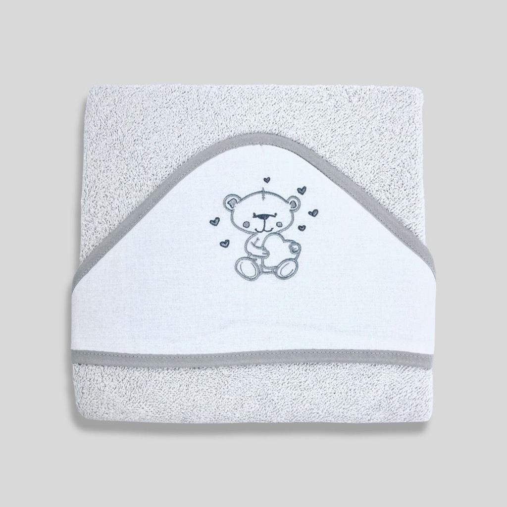 Toalha em felpo de algodão com detalhe de bordado no capuz.