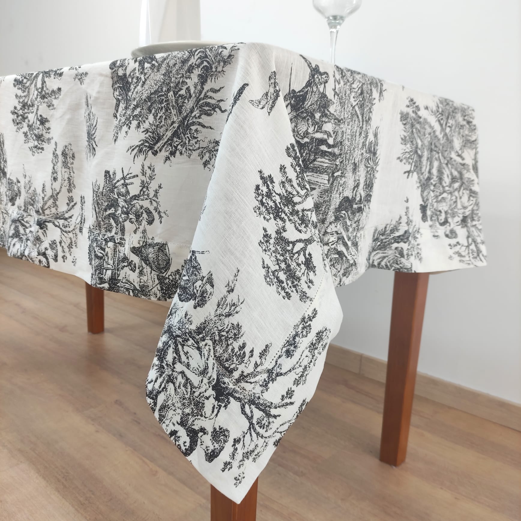 Toalha de Mesa Linho COL Toile de Jouy Black Ponto Aberto