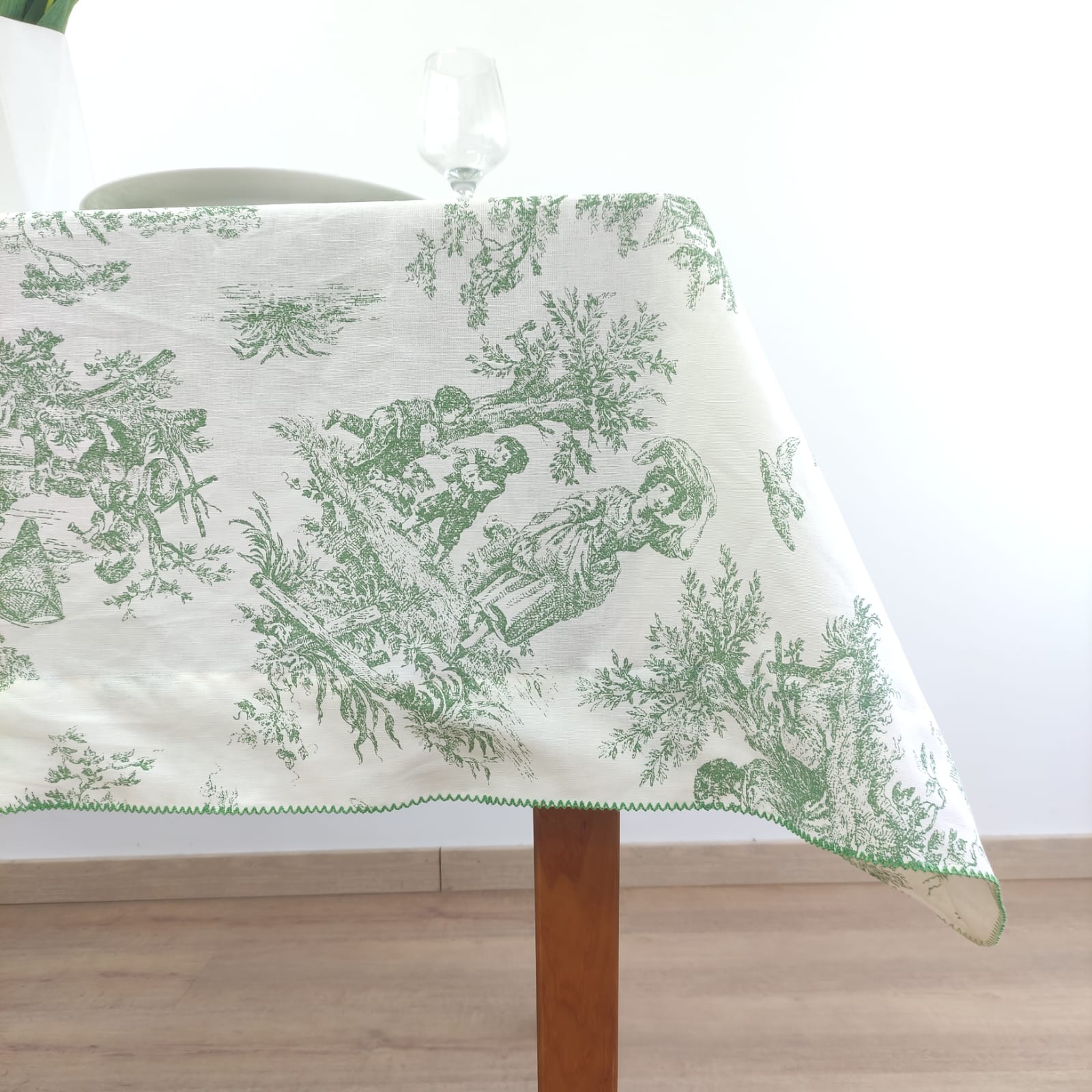 Toalha de Mesa Linho COL Toile de Jouy Green Beijinho