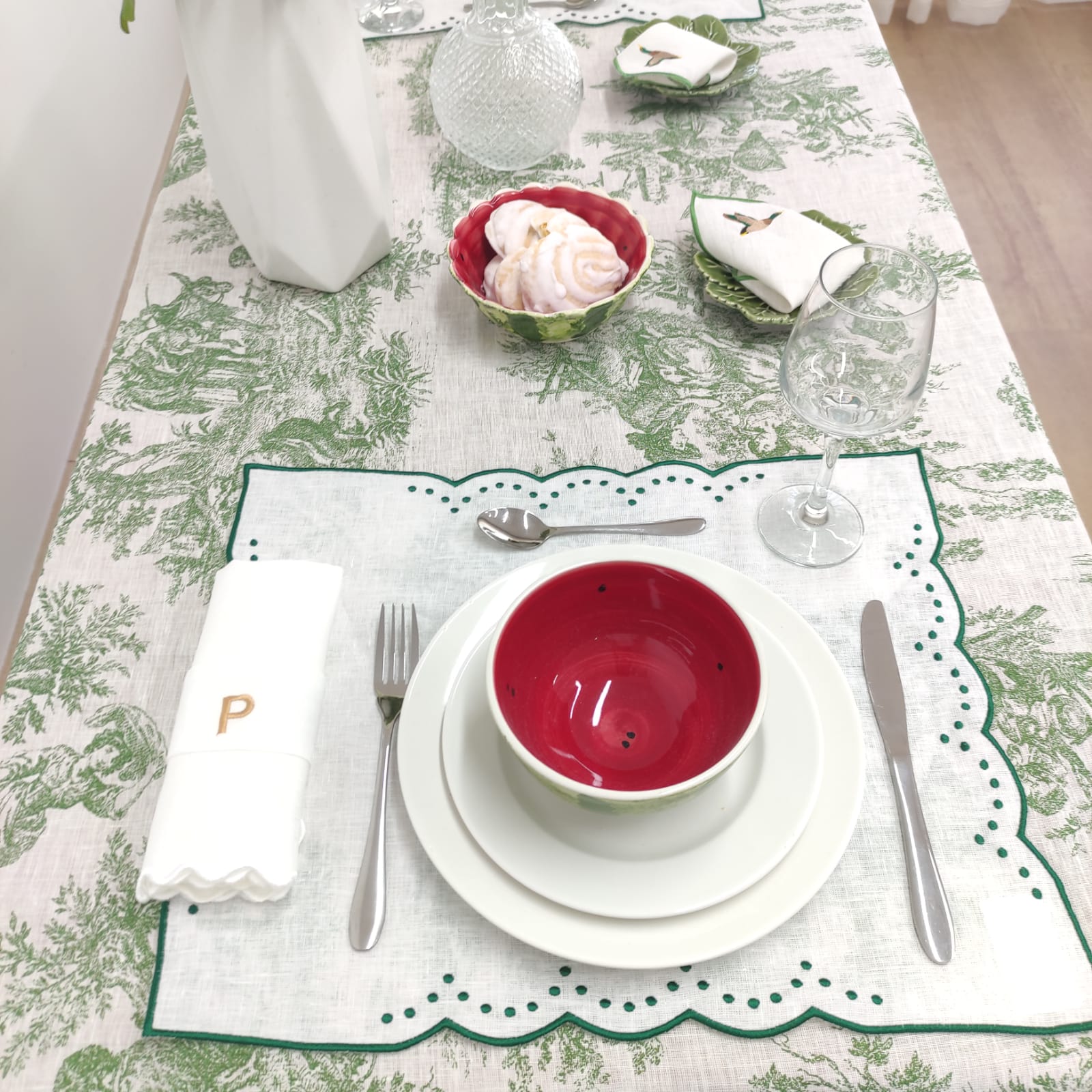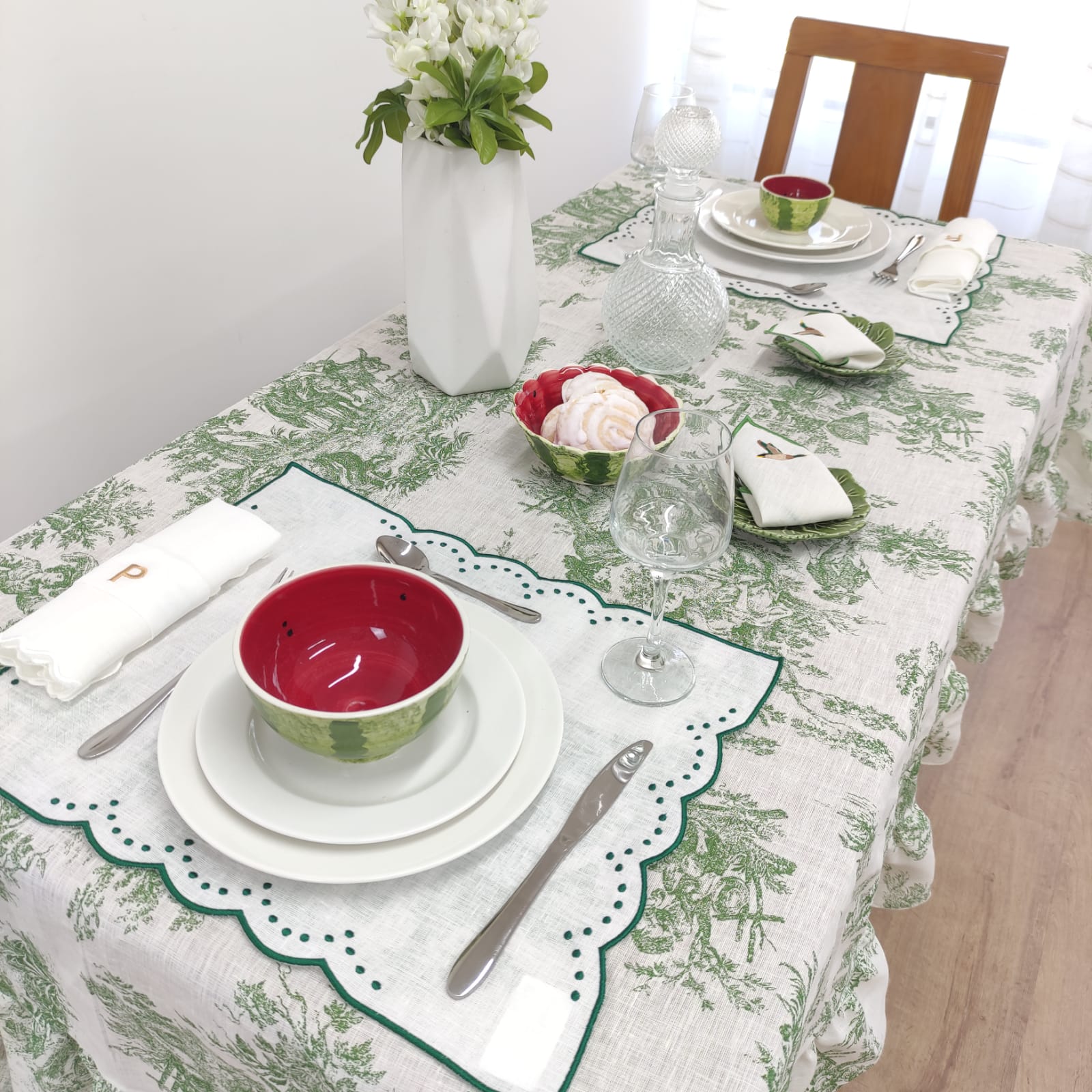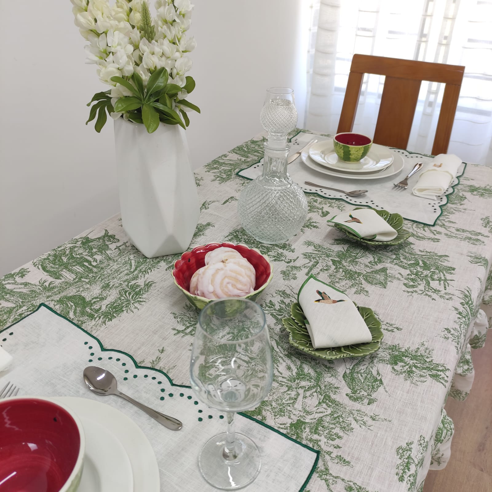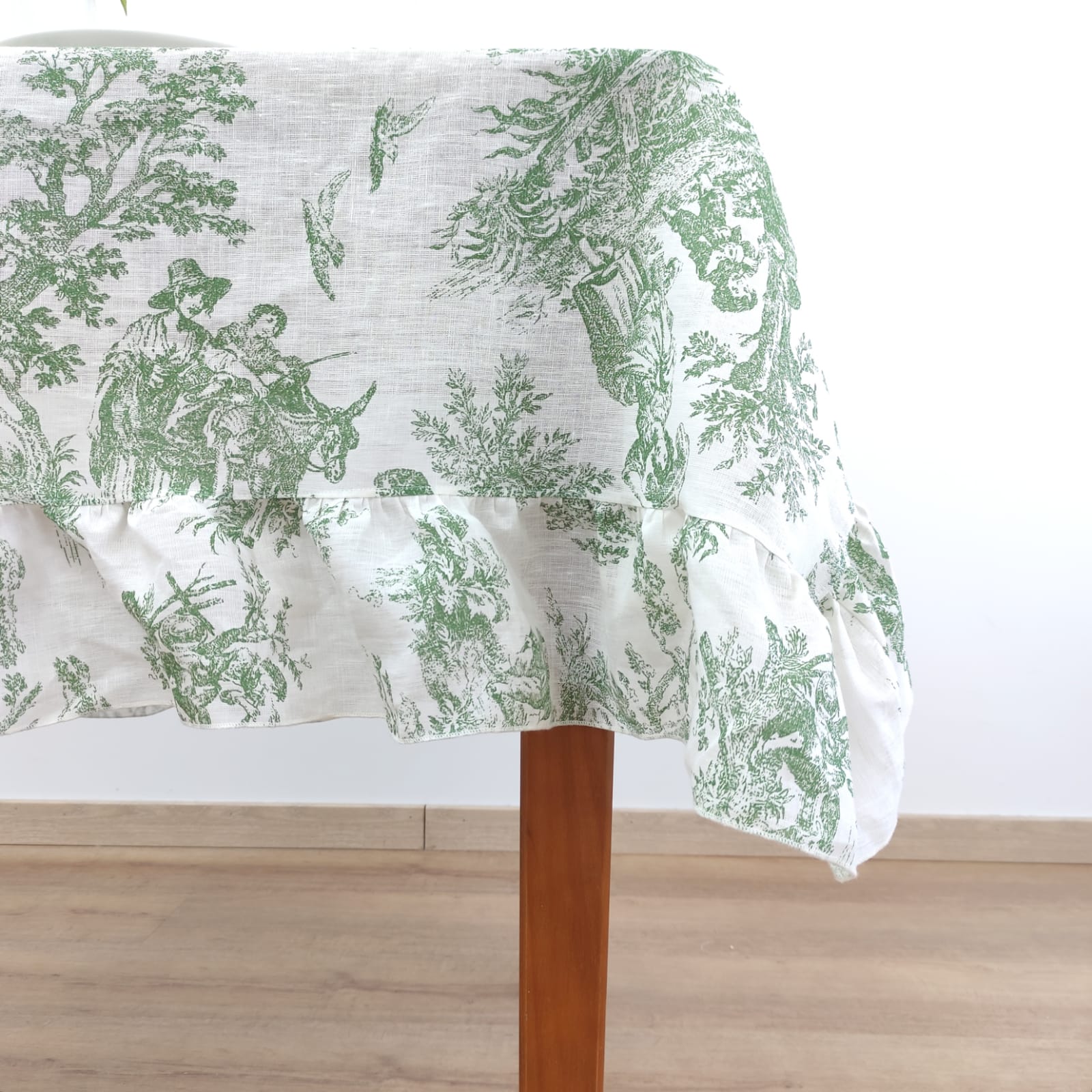 Toalha de Mesa Linho COL Toile de Jouy Green Folho