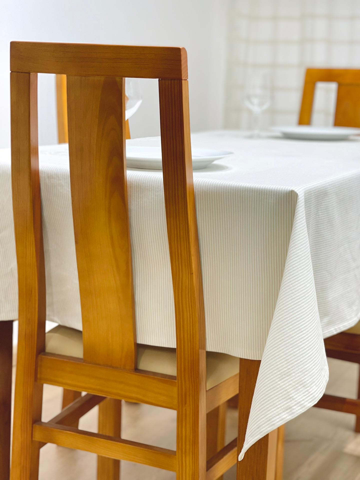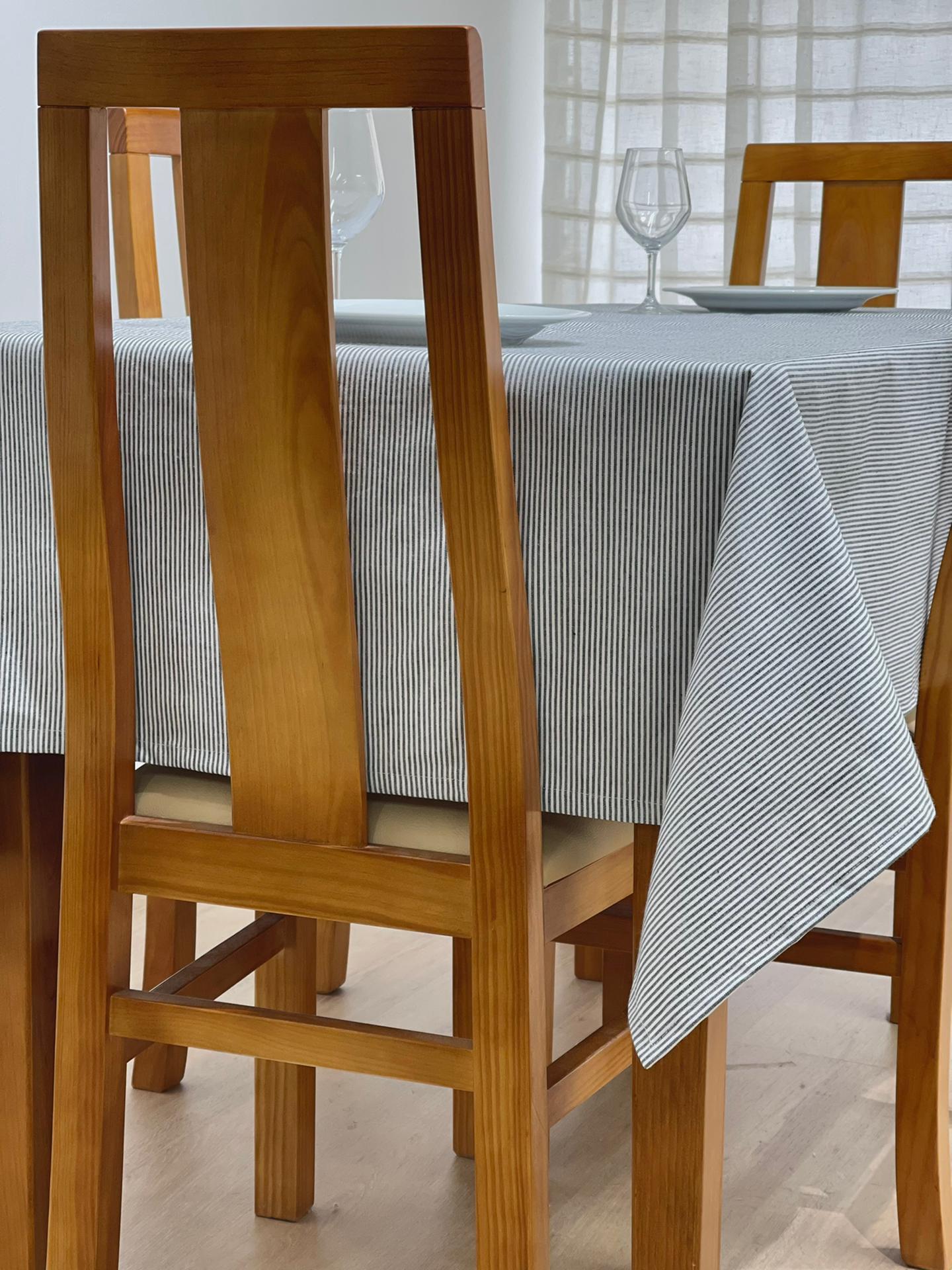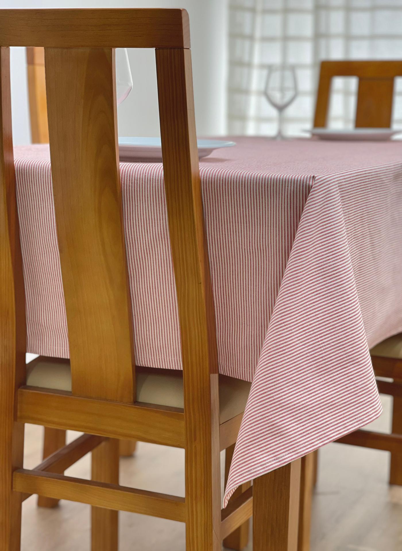 Toalha de mesa em algodão básico com riscas.