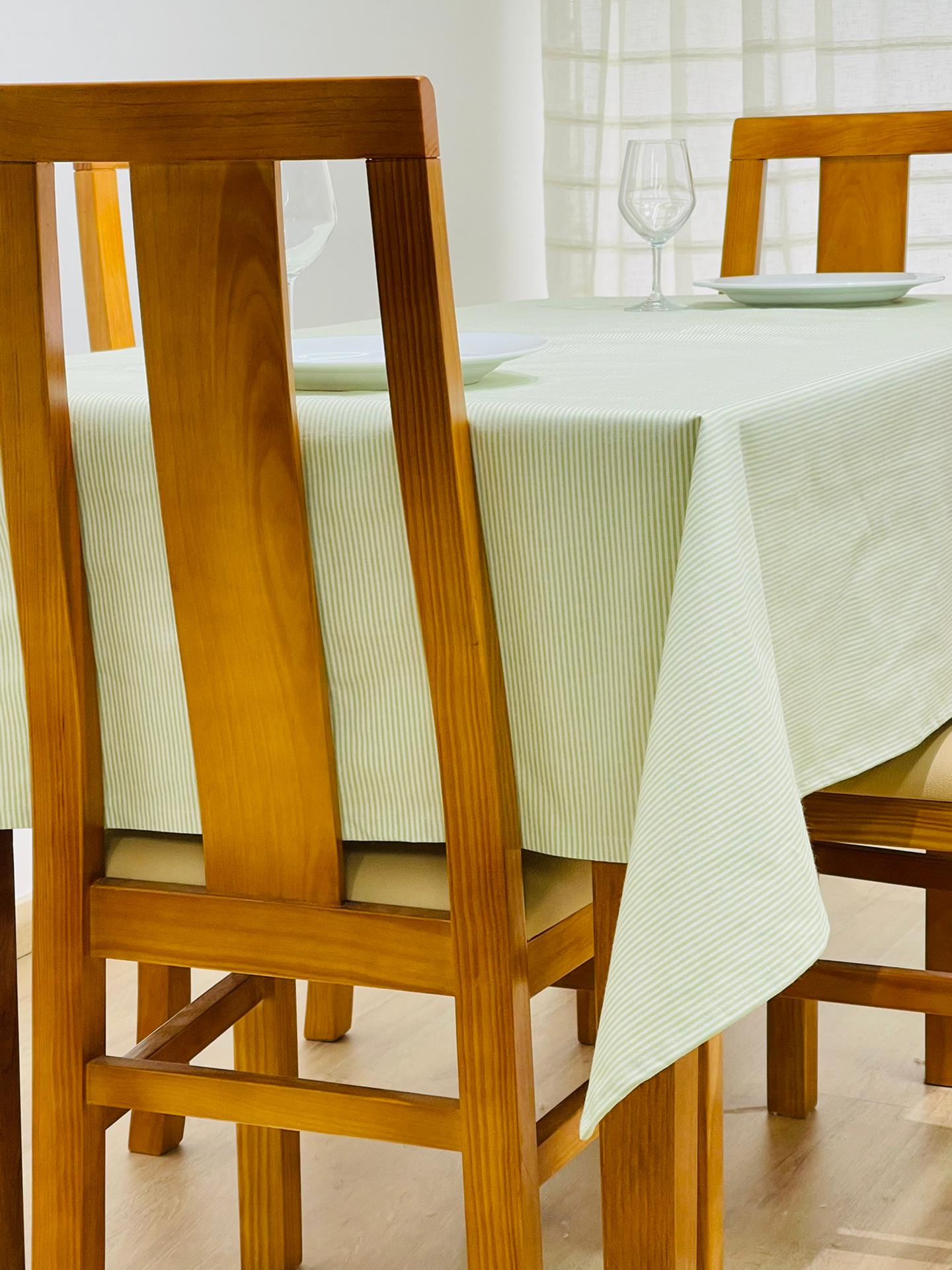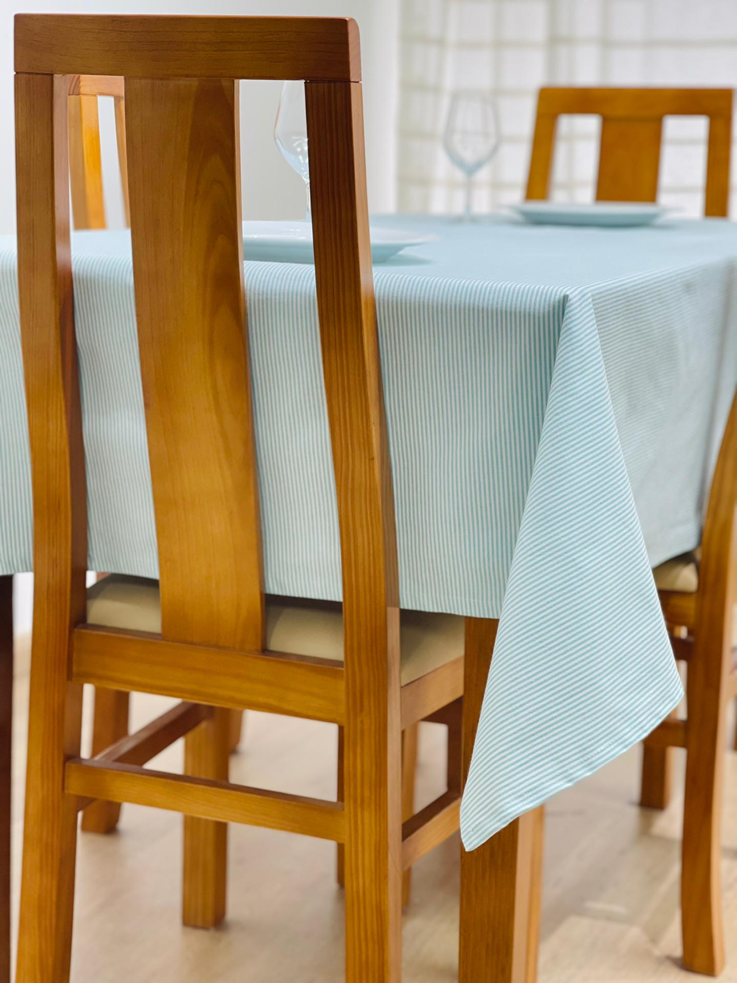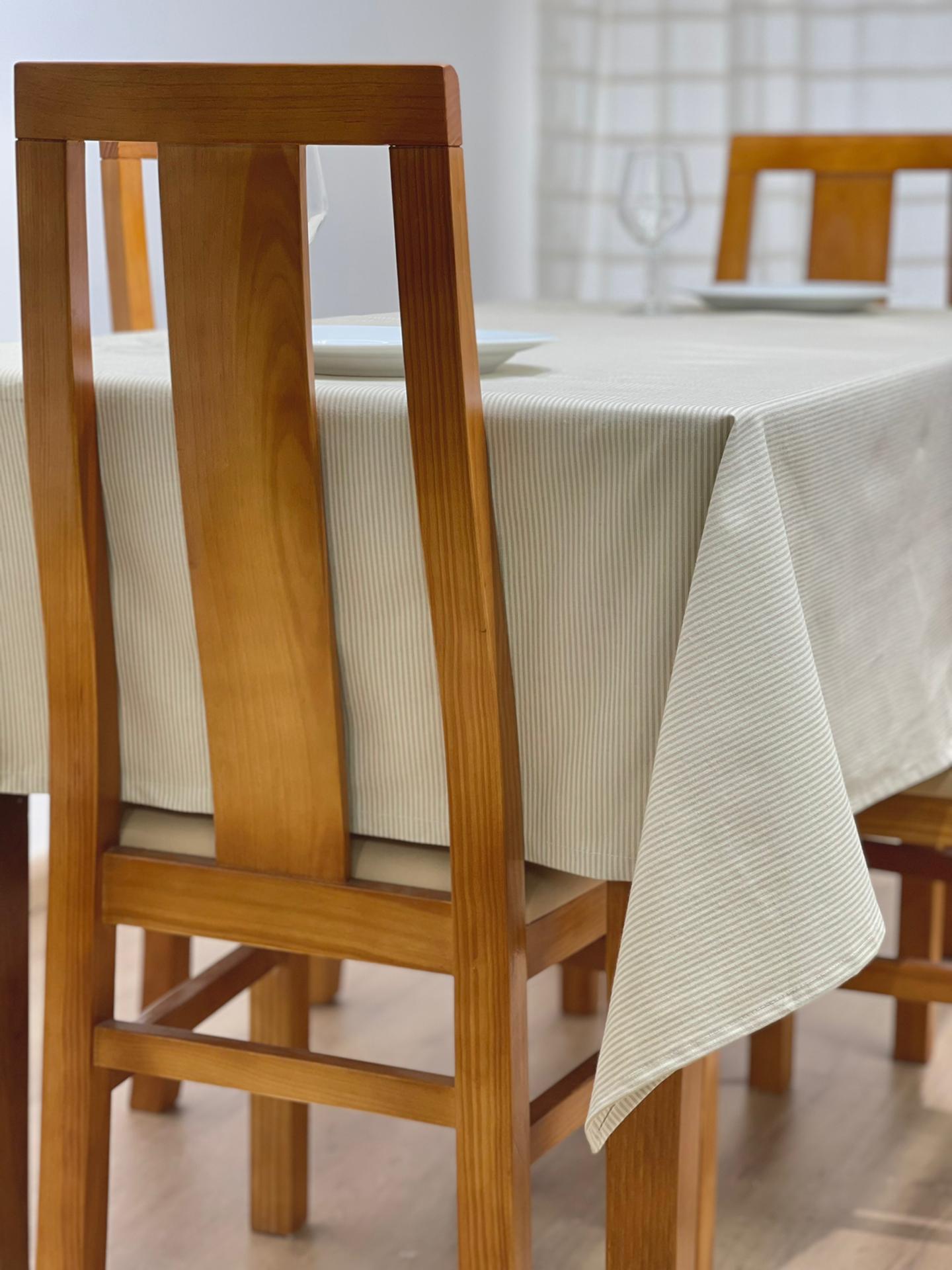 Toalha de mesa em algodão básico com riscas.