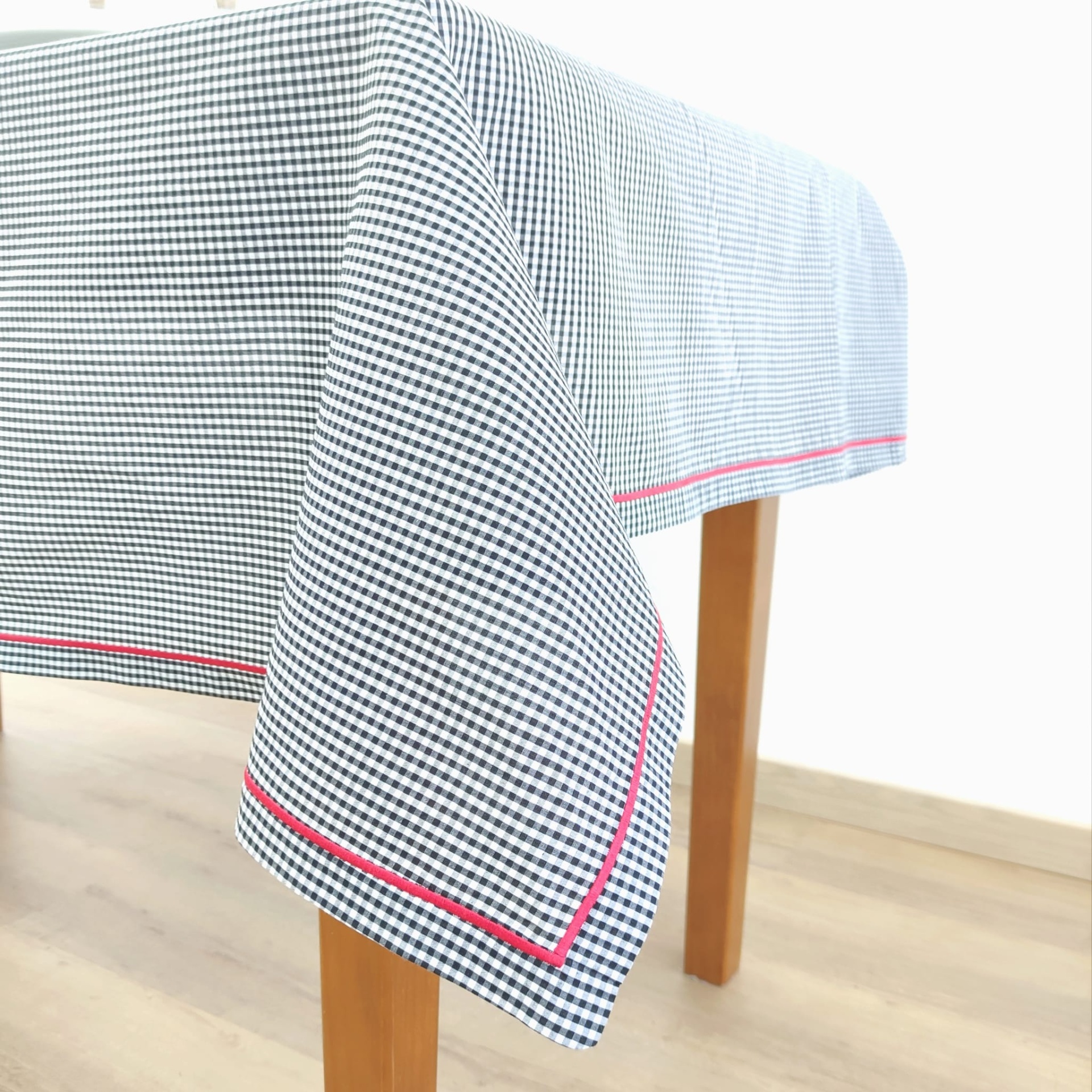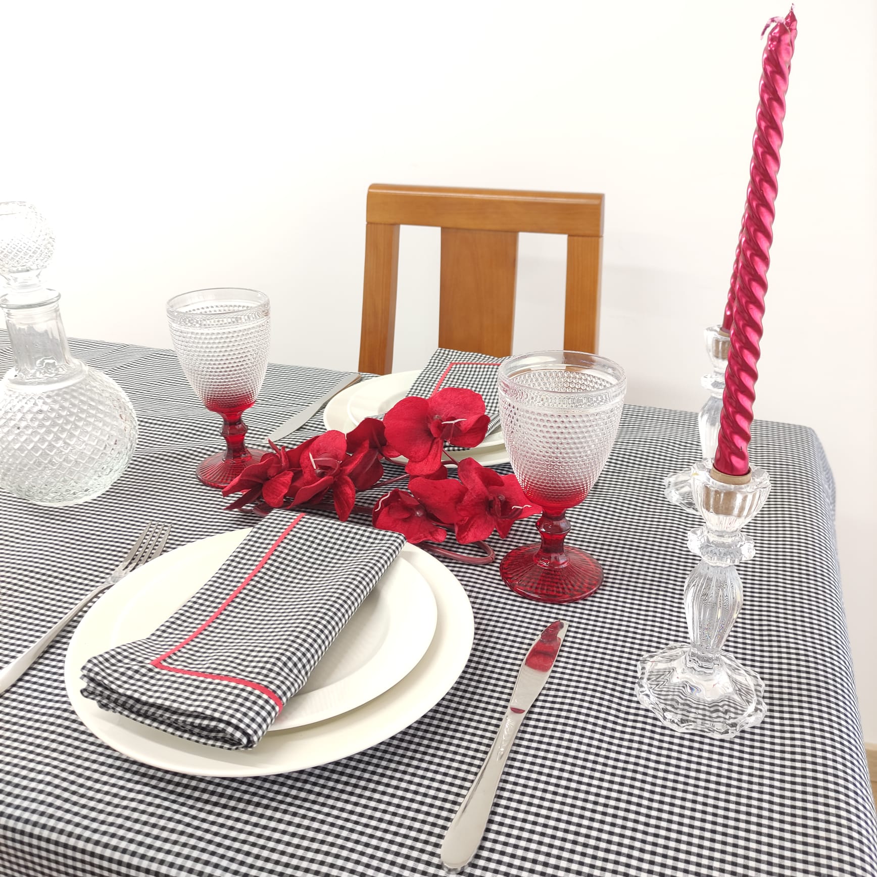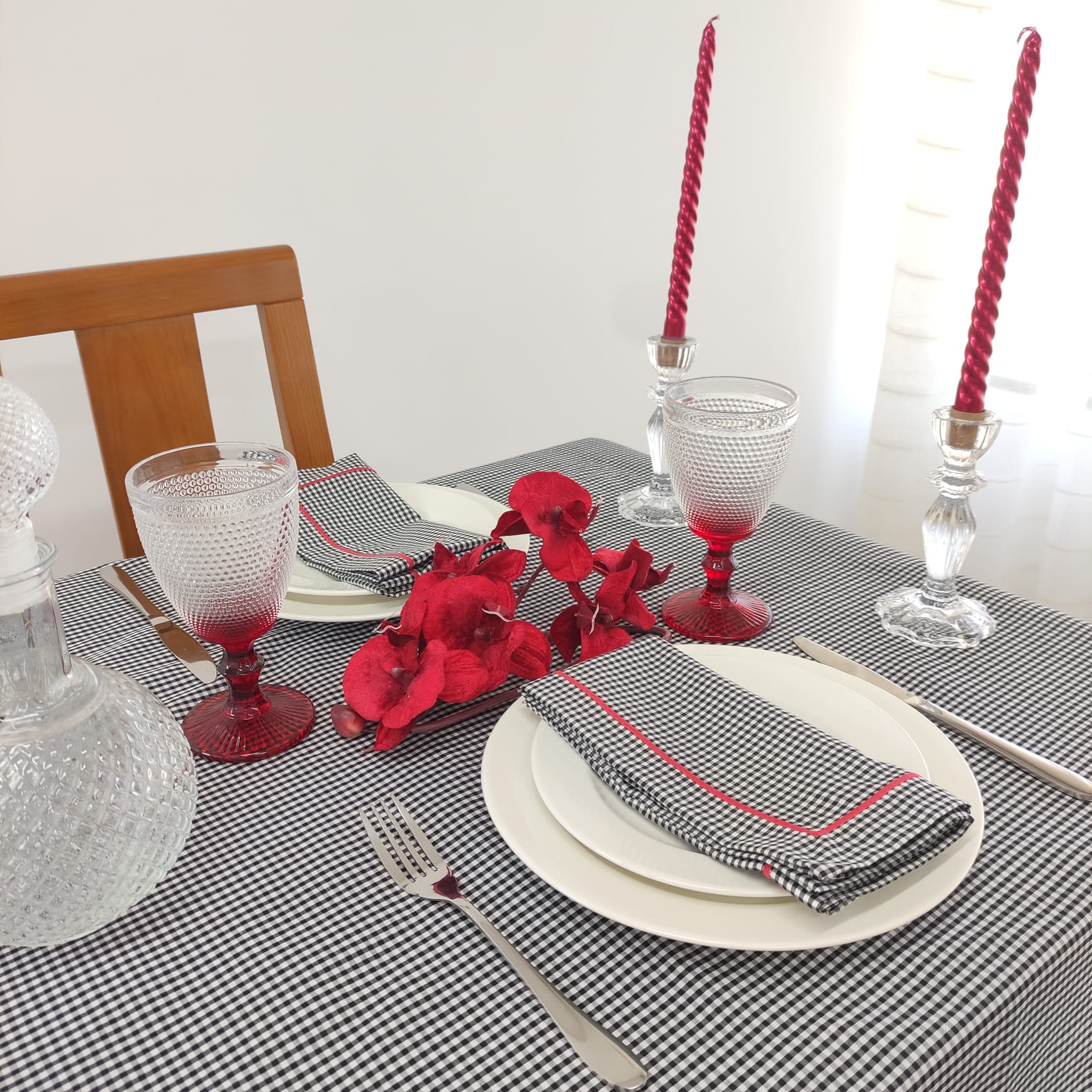 Toalha de mesa em algoão com acabamento em rolinho na cor vermelha.