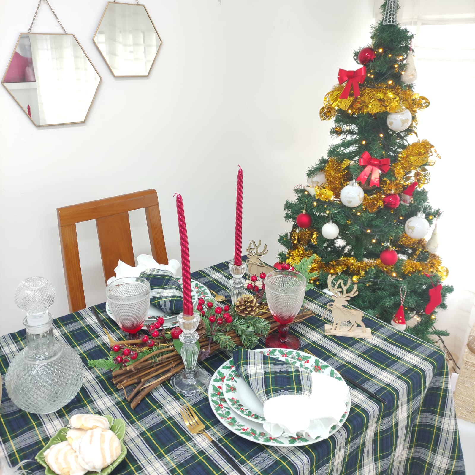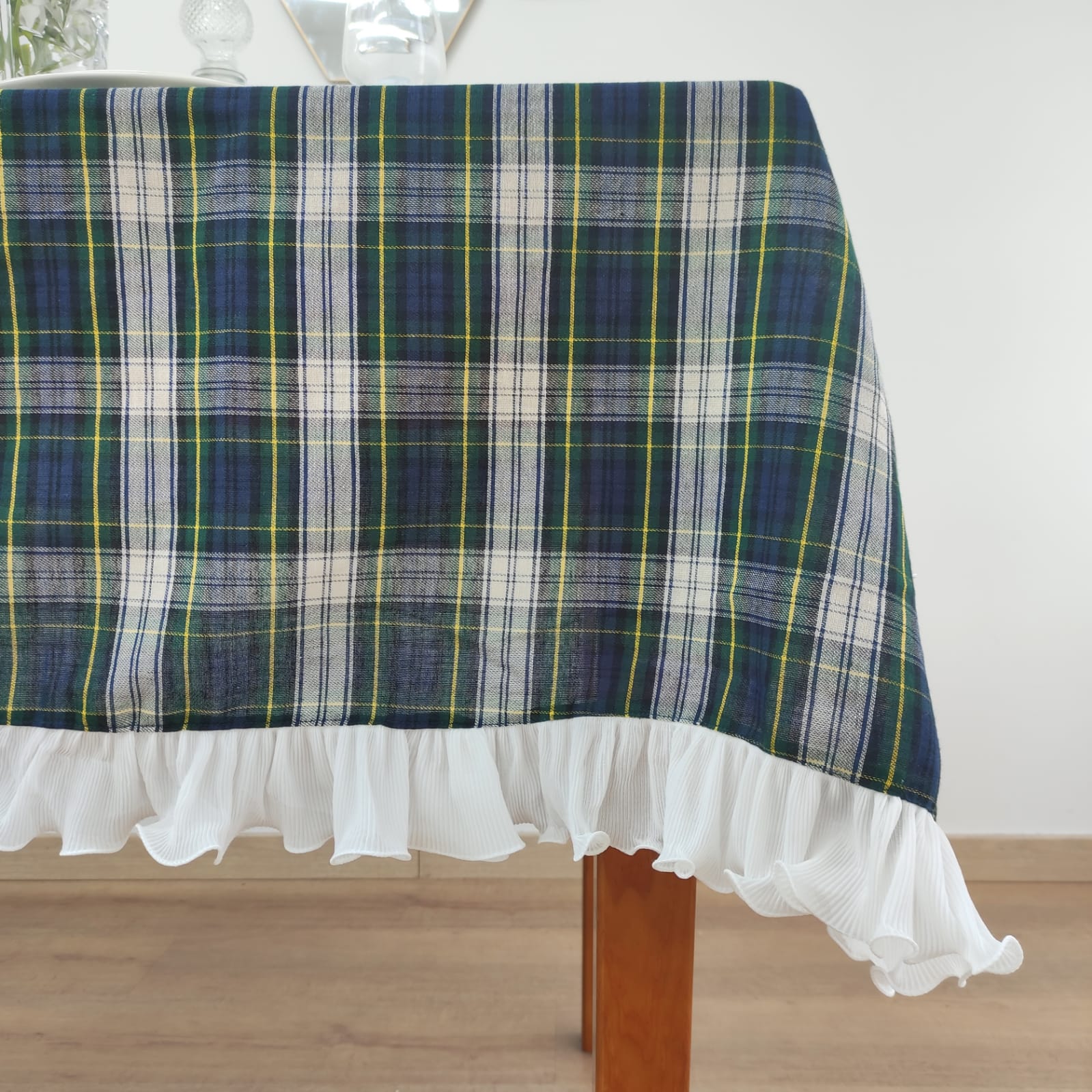 Toalha de mesa com padrão clássico e elegante e pormenor de folho,  perfeita para qualquer ocasião desde um almoço informal até a ceia de Natal.