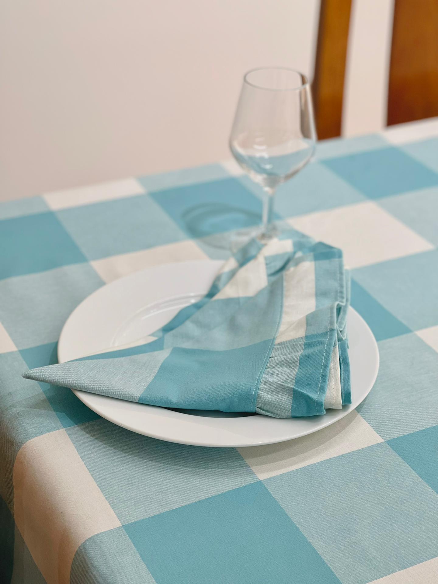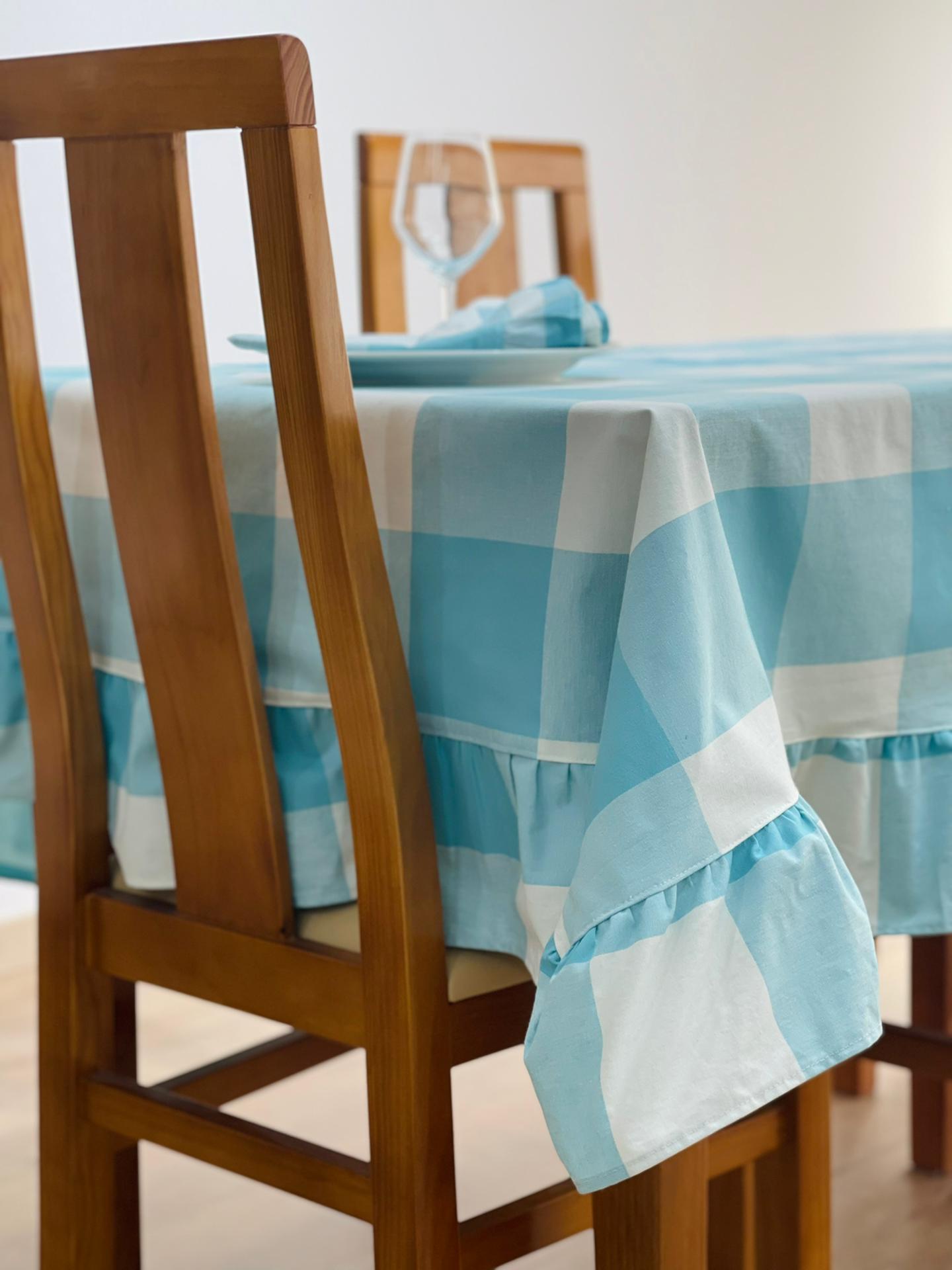 Toalha de mesa com estampado de xadrez em Azul Claro.