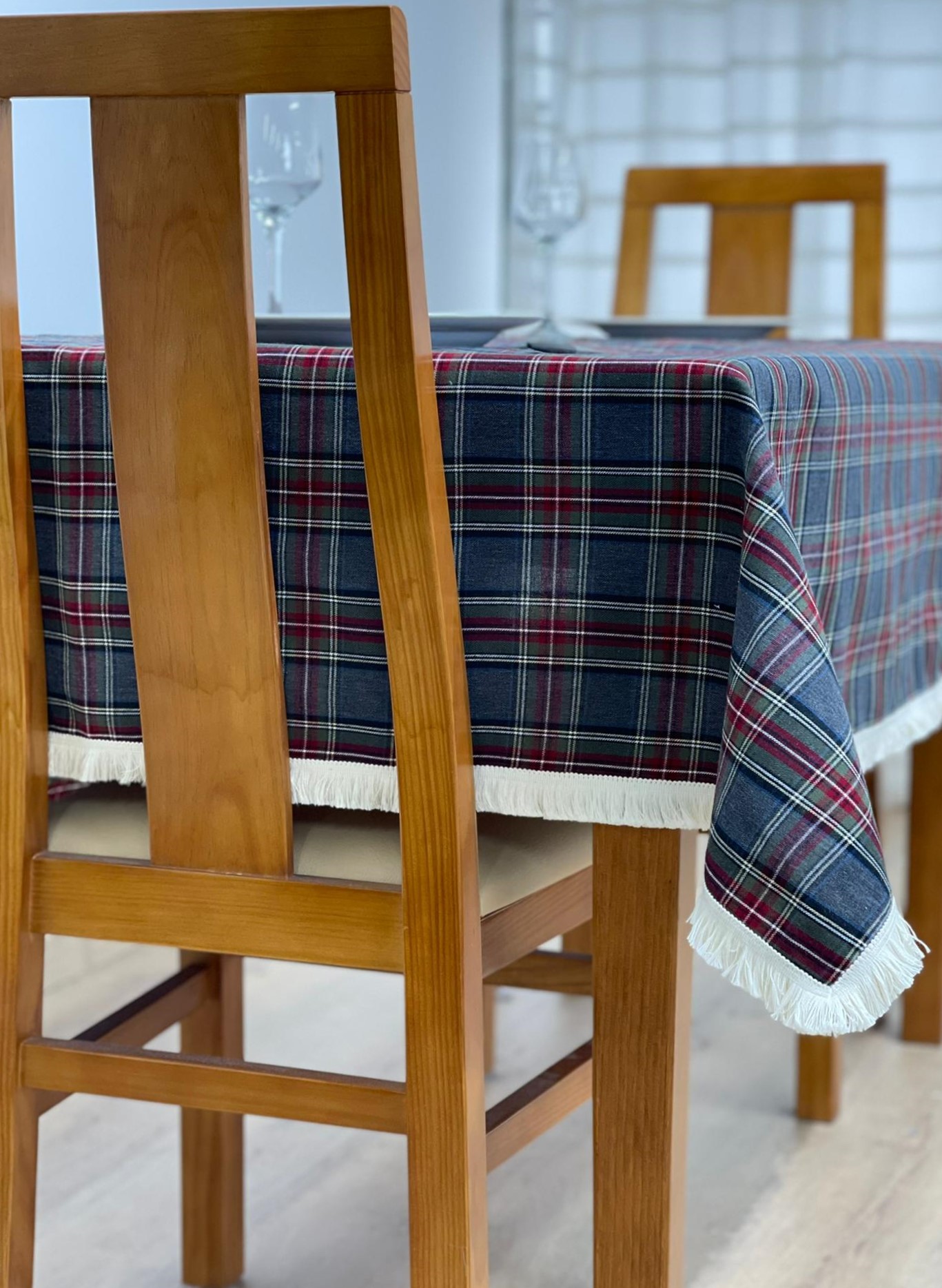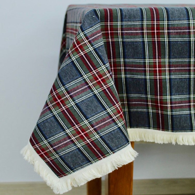 Toalha de Mesa Cinza Xadrez e Franja